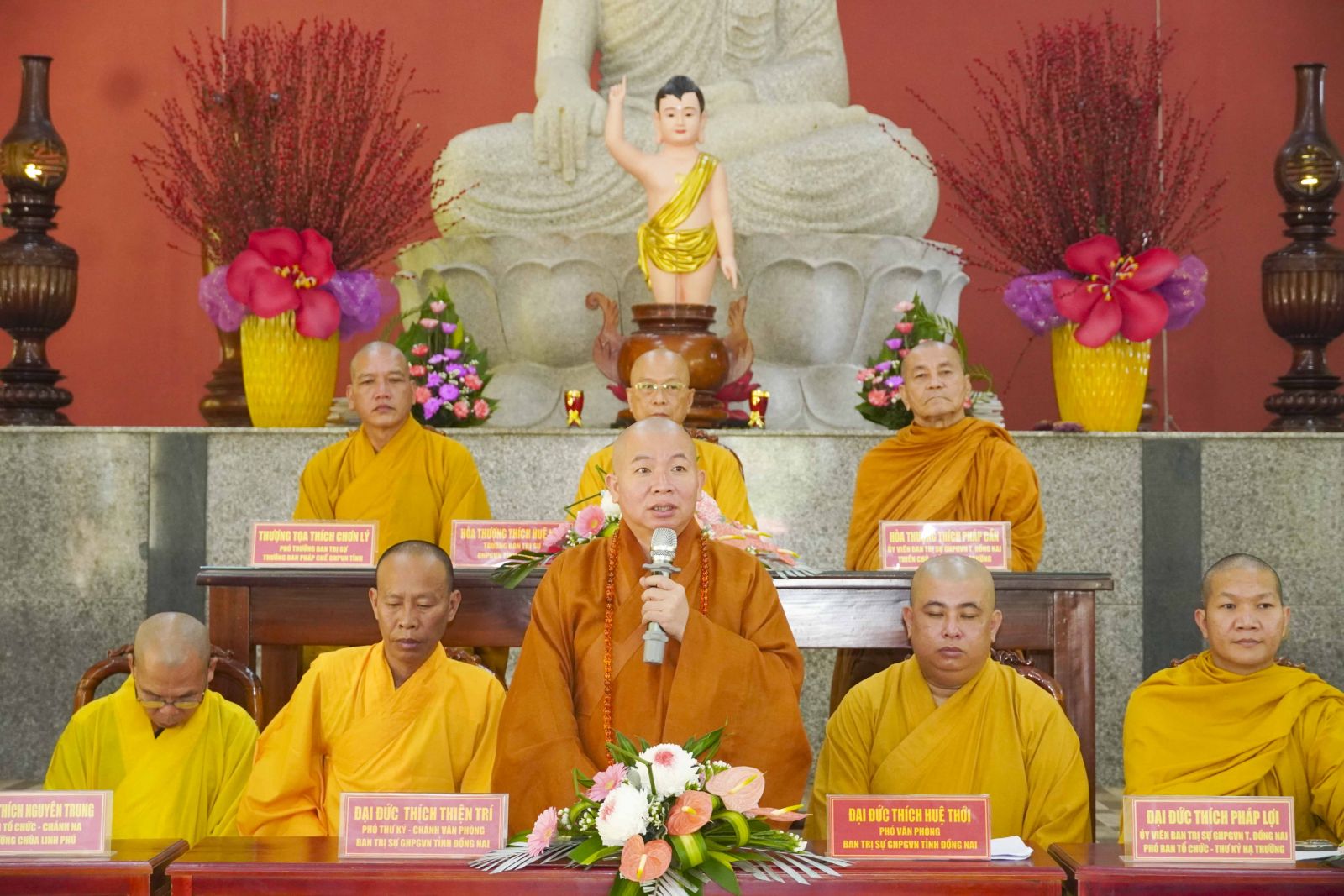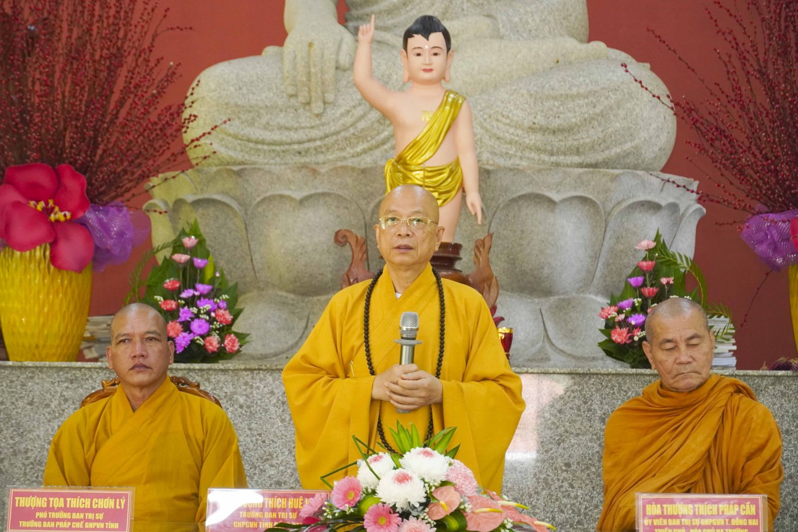 Đoàn đến thăm có TT. Thích Huệ Khai - Ủy viên Thường trực HĐTS, Trưởng Ban Trị sự, Trưởng ban Tăng sự GHPGVN tỉnh Đồng Nai; TT. Thích Chơn Lý - Ủy viên Dự khuyết HĐTS, Phó Ban Trị sự, Trưởng ban Pháp chế GHPGVN tỉnh; ĐĐ. Thích Thiện Trí – Phó Thư ký kiêm Chánh Văn phòng Ban Trị sự GHPGVN tỉnh; ĐĐ. Thích Huệ Thới – Phó Văn phòng Ban Trị sự GHPGVN tỉnh; cùng chư Tôn đức Văn phòng Ban Trị sự GHPGVN tỉnh.