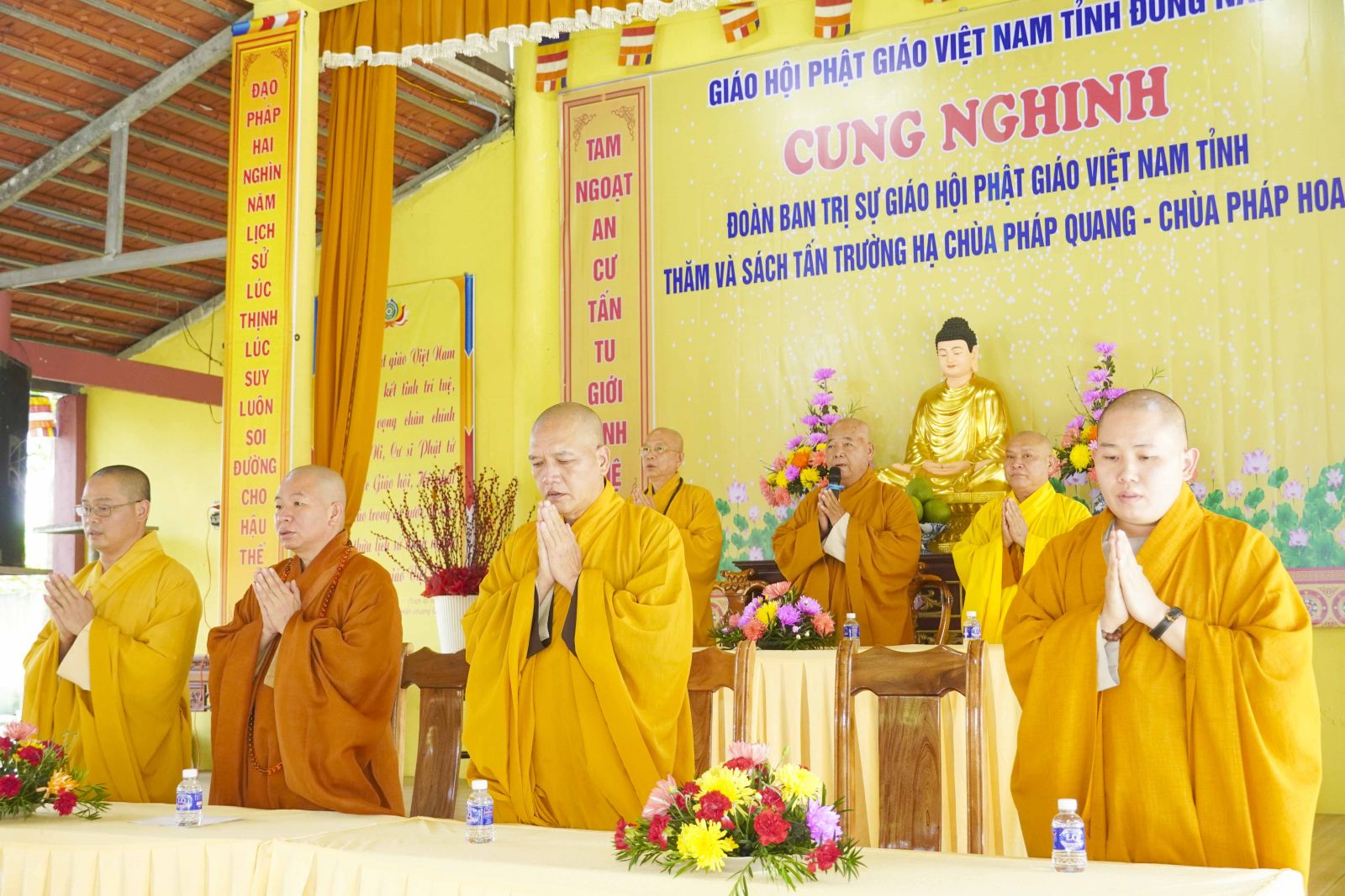 Sau cùng, HT. Thích Pháp Cần đại diện cho Hạ trường Chùa Linh Phú, TT. Thích Đồng Ngạn đã thay mặt Ban Tổ chức Hạ trường Chùa Pháp Quang đã gửi lời tri ân đến chư Tôn đức Ban Trị sự GHPGVN tỉnh Đồng Nai đã đến thăm và sách tấn Hành giả An cư tại Hạ trường, đây cũng là dịp thể hiện sự quan tâm của Ban Trị sự tỉnh đối với Tăng Ni hành giả An cư.
