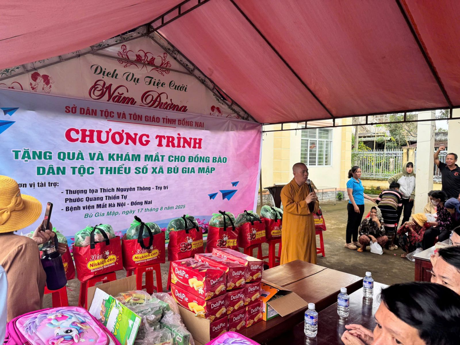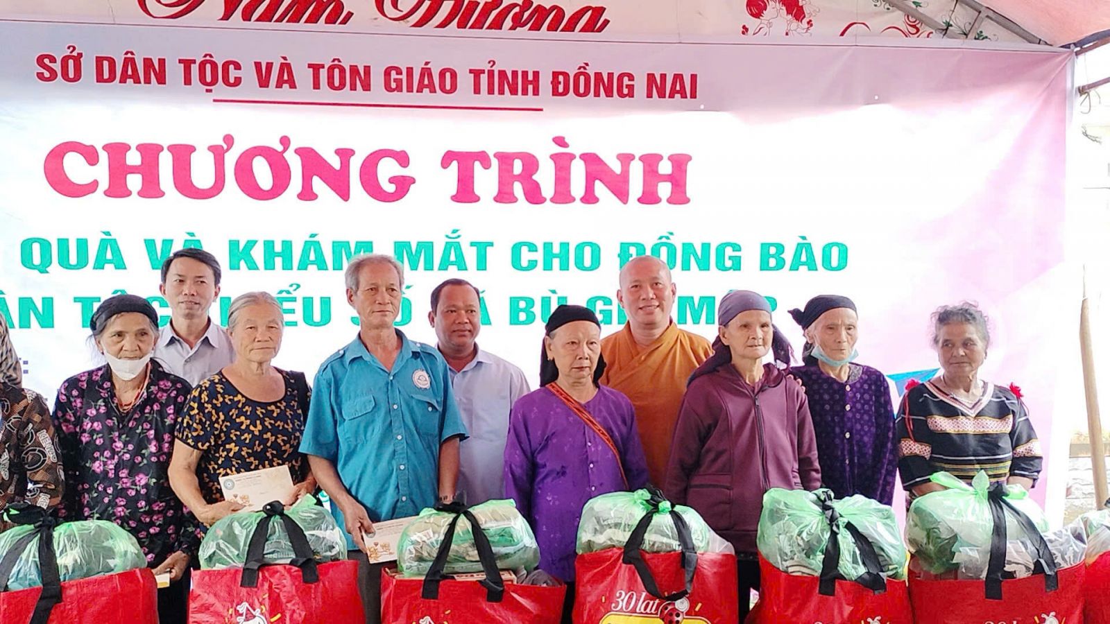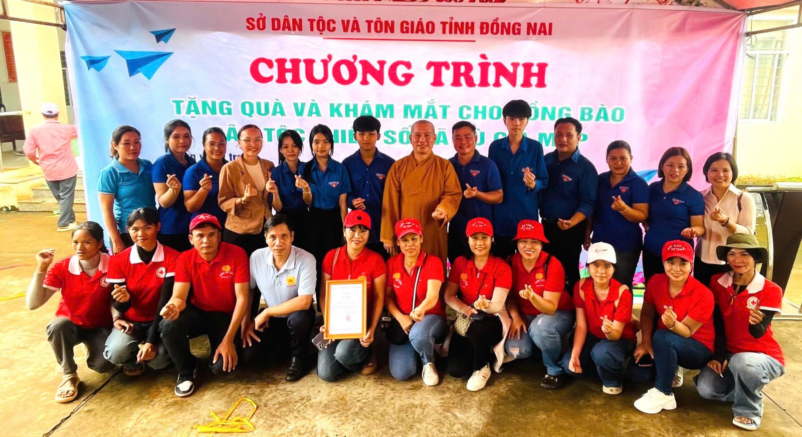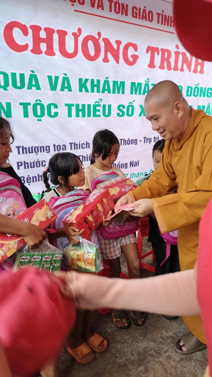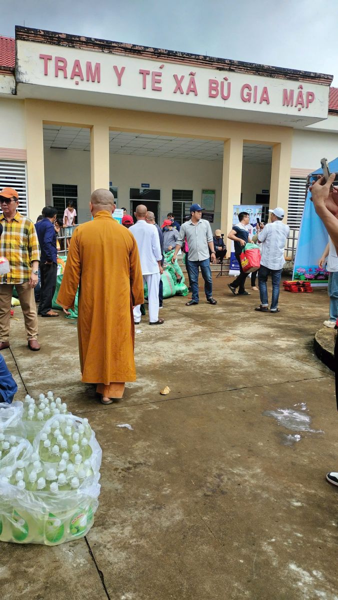Đoàn do ĐĐ. Thích Nguyên Thông - Ủy viên Ban Trị sự, Phó trưởng ban Từ thiện xã hội GHPGVN tỉnh Đồng Nai, Trụ trì Thiền tự Phước Quang làm Trưởng đoàn; đi cùng đoàn có ông Thổ Úc – Đại biểu Quốc hội, Phó Giám đốc sở Dân tộc và Tôn giáo tỉnh Đồng Nai, ông Hoàn Cư – Phó Giám đốc sở Dân Tộc và Tôn giáo tỉnh Đồng Nai; ông Trần Đức Hòa – Chủ tịch xã Bình Minh; về phía mạnh thường quân có Resort Hoa Đệ Nhất – xã An Phước; ông Phạm Minh Triết – xã Long Thành; Cty Cổ phần Hùng Cường Pharma TP. Hồ Chí Minh; cùng thành viên trong đoàn.