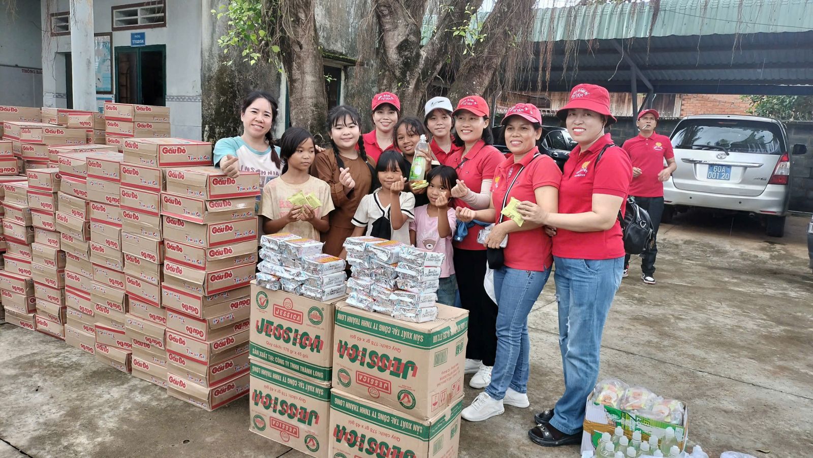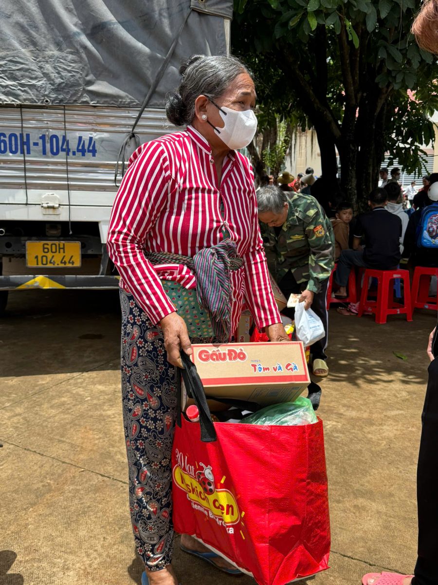 Đoàn đã trao tặng 250 phần quà, trong đó 200 phần quà cho các gia đình khó khăn và 50 phần quà dành cho học sinh, giúp các em tiếp bước đến trường. Tổng trị giá 250 phần quà là 140 triệu đồng.