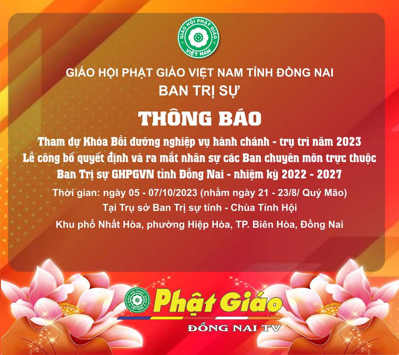 PGĐN - Sáng ngày 24/11/2025 (nhằm ngày 05/10 năm Ất Tỵ) Ban Trị sự GHPGVN tỉnh Đồng Nai đã tổ chức phiên họp mở rộng triển khai các Thông tư, Nghị quyết của Hội đồng Trị sự, góp ý tu chỉnh hiến chương Giáo hội và triển khai các công tác Phật sự trọng điểm trong thời gian tới.