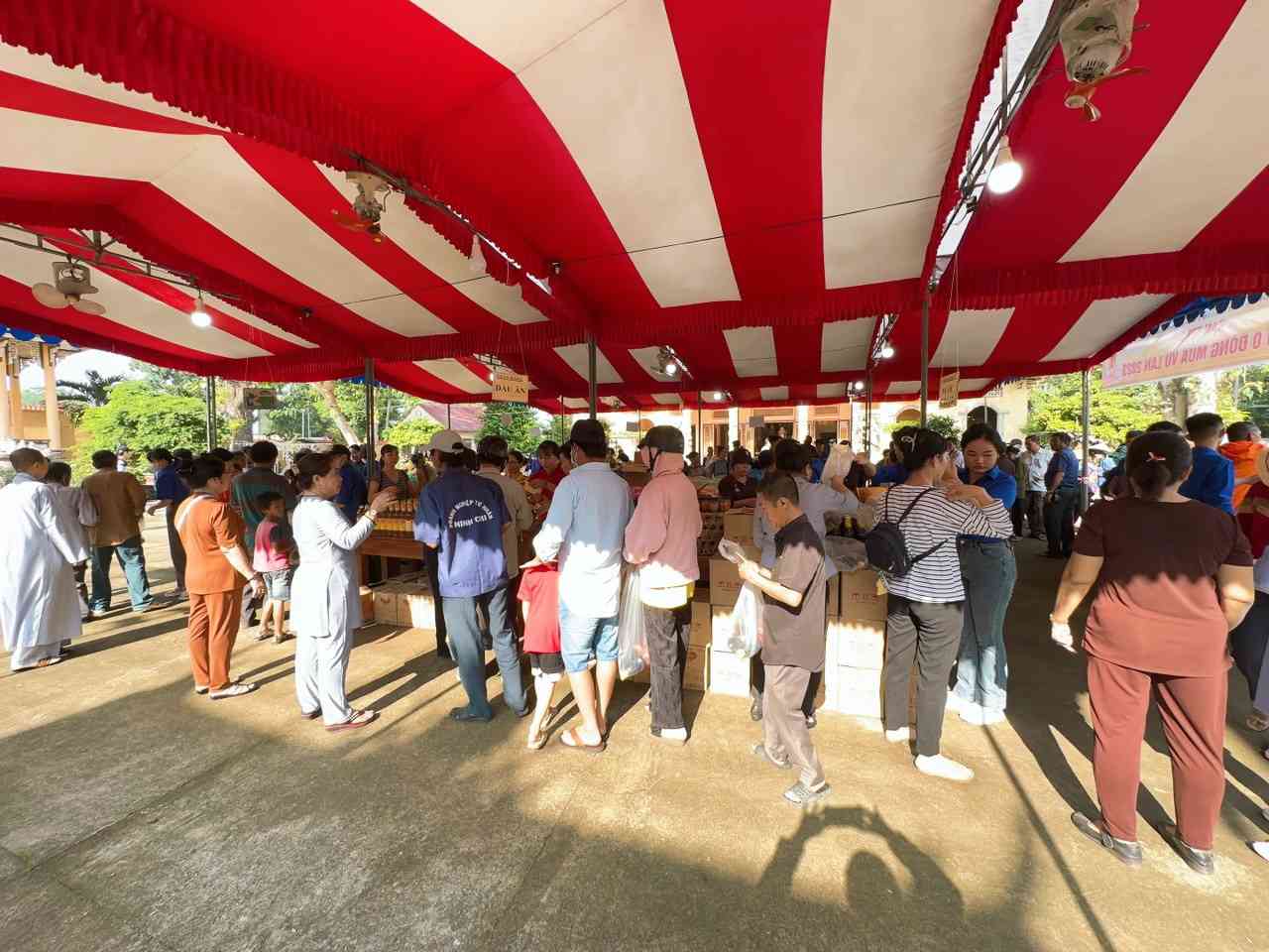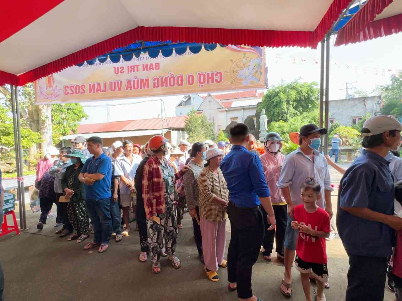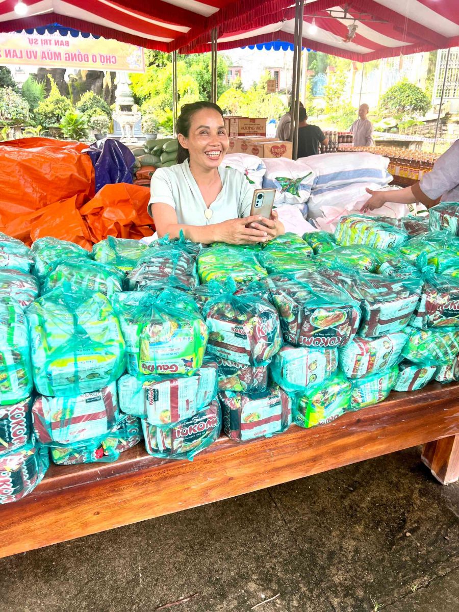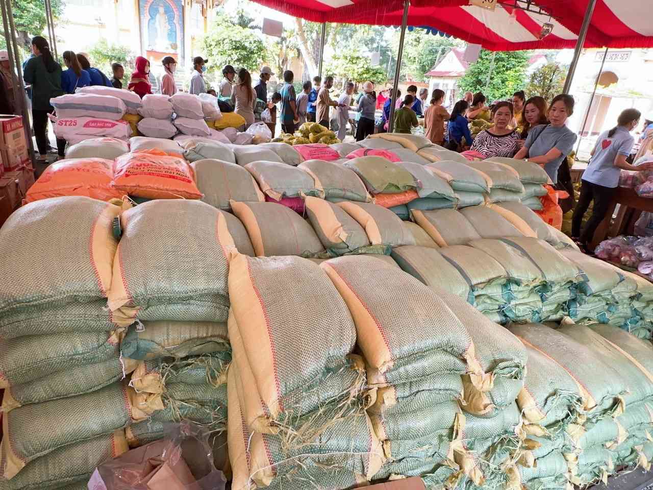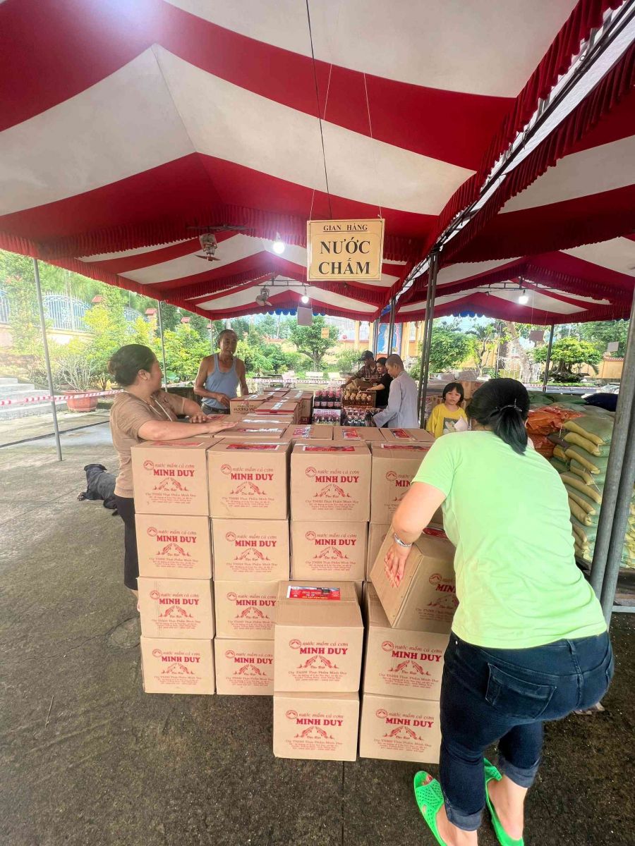Sau lời khai mạc của TT Thích Chí vân- Phó ban TT Ban trị sự, đông đảo bà con nhân dân vào tham quan và tham gia phiên chợ. Có 8 gian hàng được bán tại phiên chợ là lương thực, thực phẩm. 6000kg gạo, 600 túi bột nêm, bột ngọt, 1200 chai nước tương, 600 chai nước mắm, 600kg đường, 1200 gói mỳ tôm, 1 tấn rau, tổng kinh phí hơn 200tr đồng.