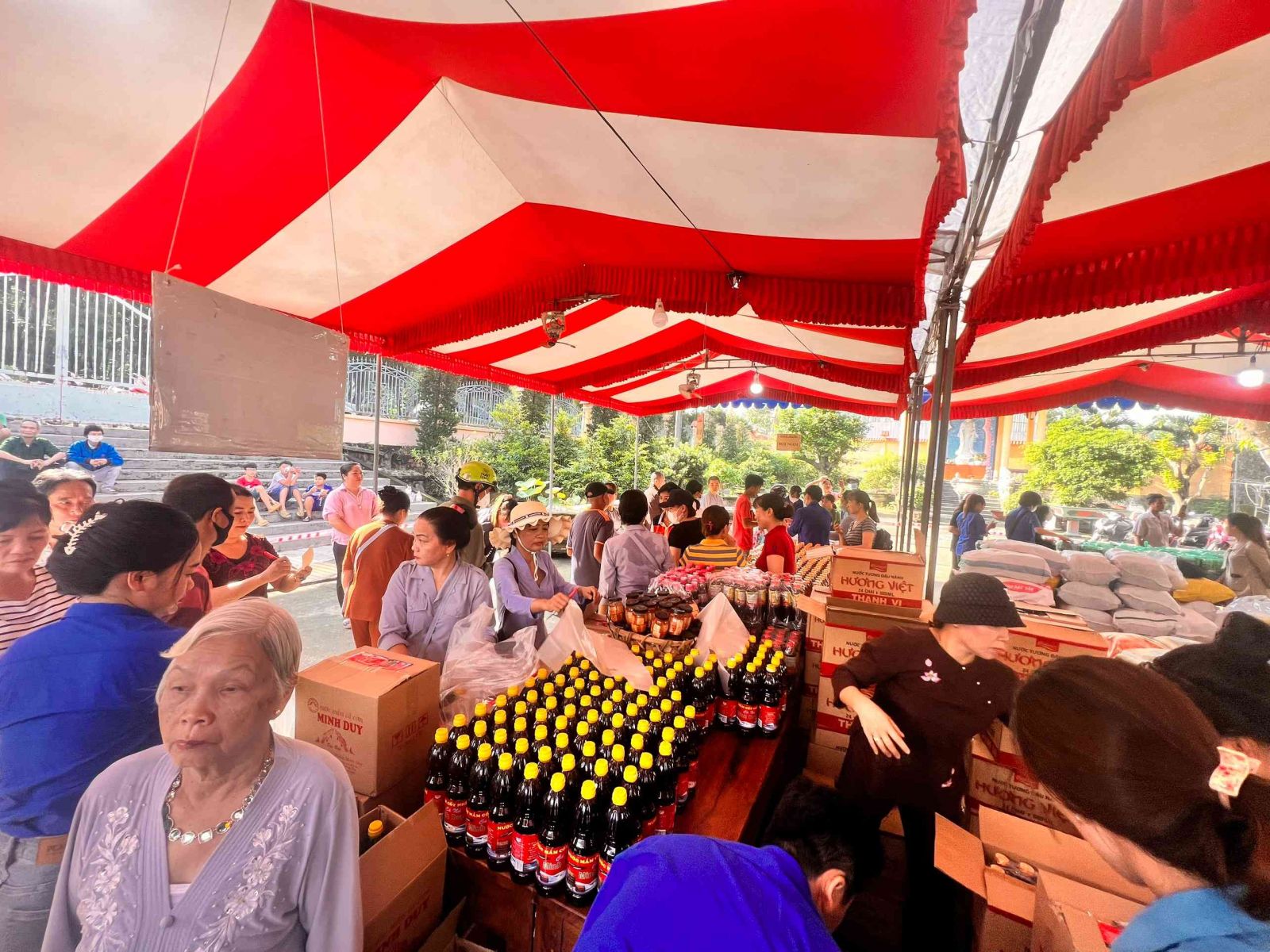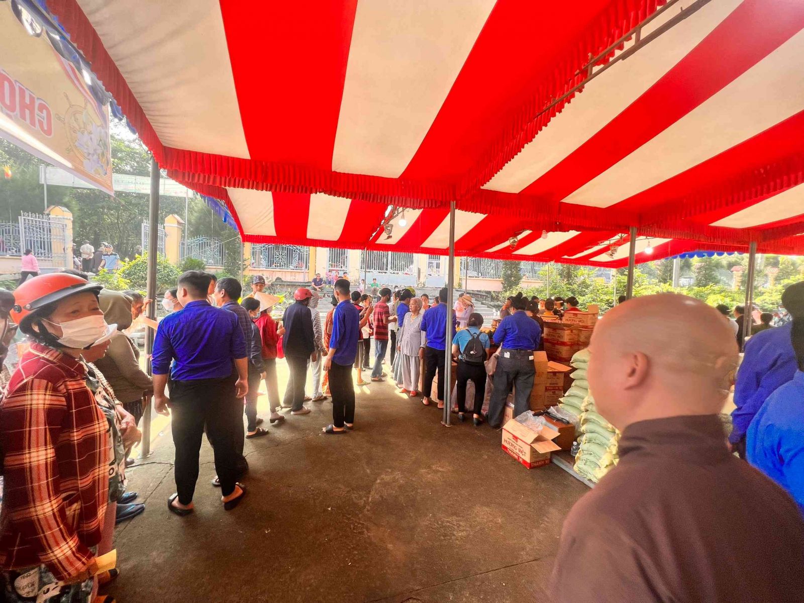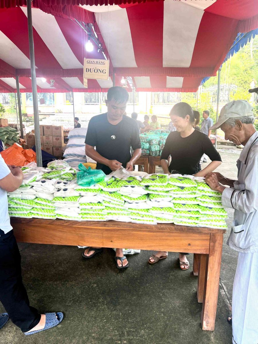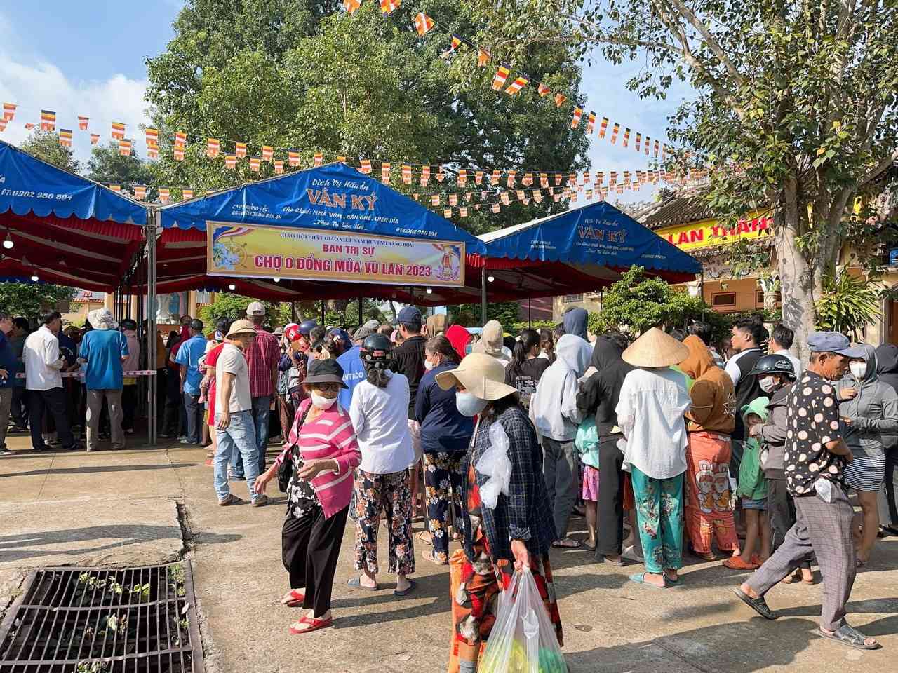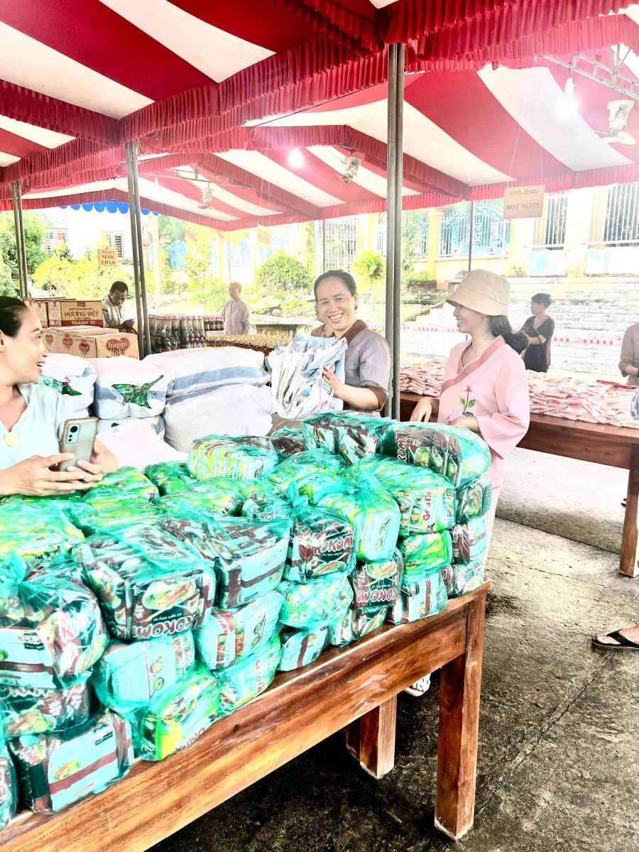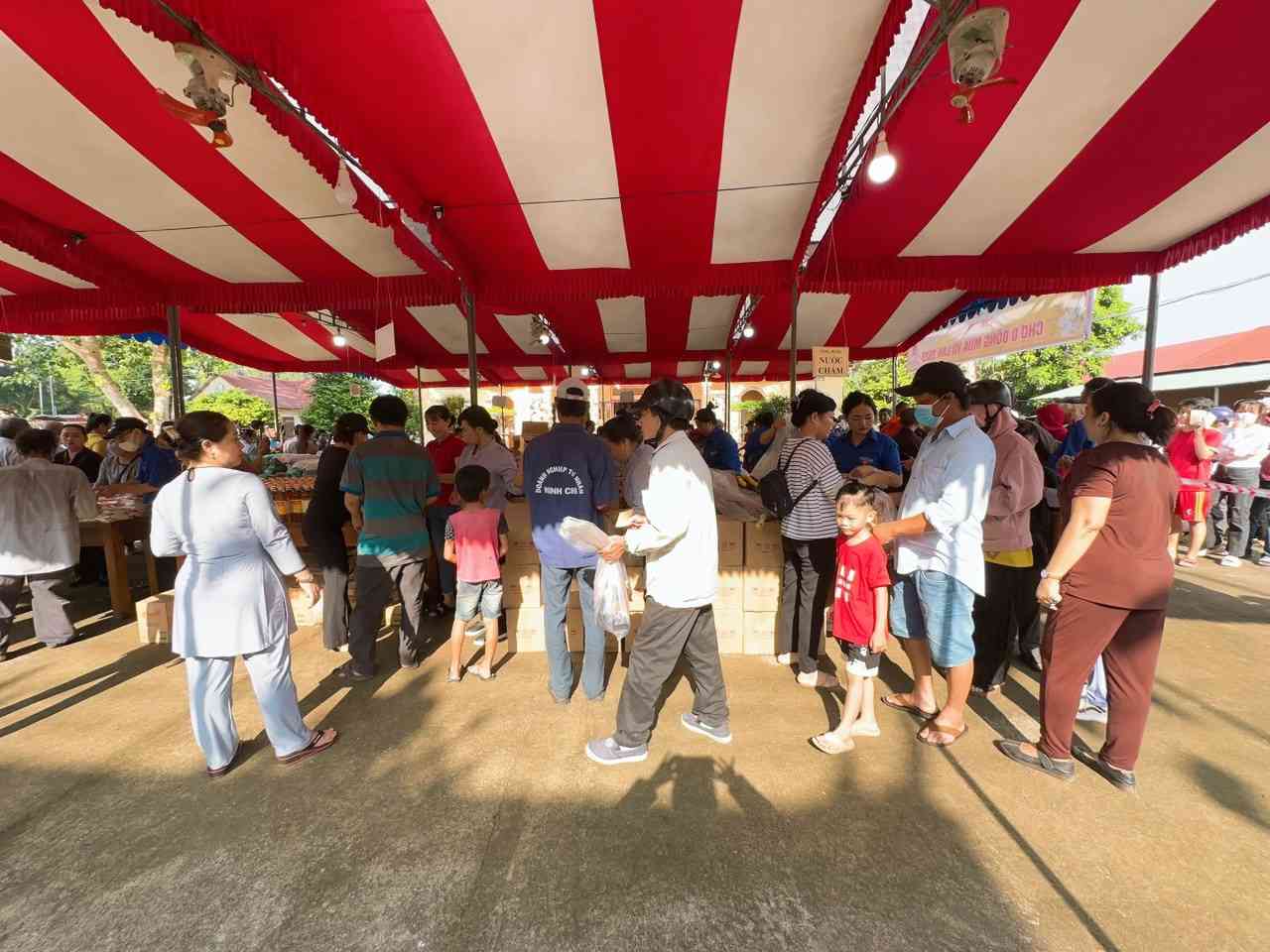 Sau lời khai mạc của TT Thích Chí vân- Phó ban TT Ban trị sự, đông đảo bà con nhân dân vào tham quan và tham gia phiên chợ. Có 8 gian hàng được bán tại phiên chợ là lương thực, thực phẩm. 6000kg gạo, 600 túi bột nêm, bột ngọt, 1200 chai nước tương, 600 chai nước mắm, 600kg đường, 1200 gói mỳ tôm, 1 tấn rau, tổng kinh phí hơn 200tr đồng.