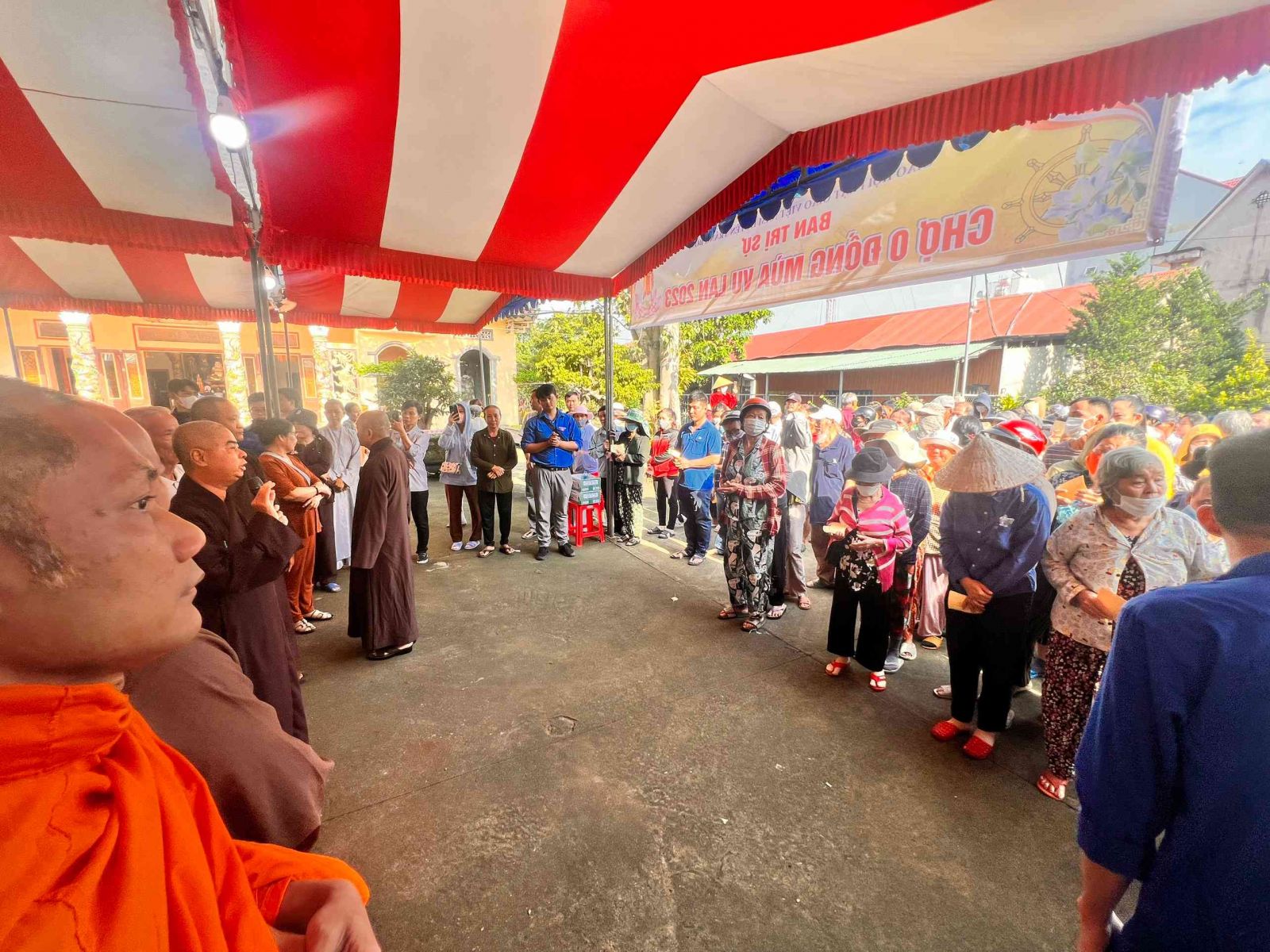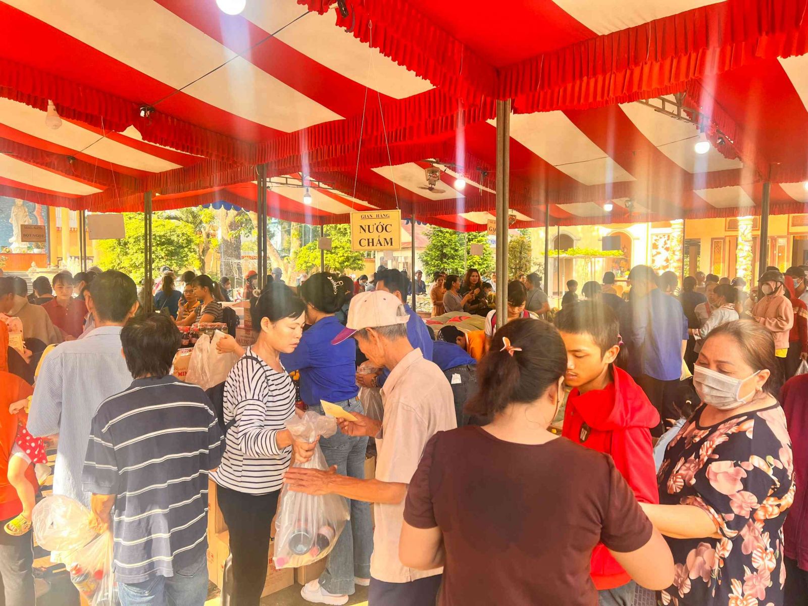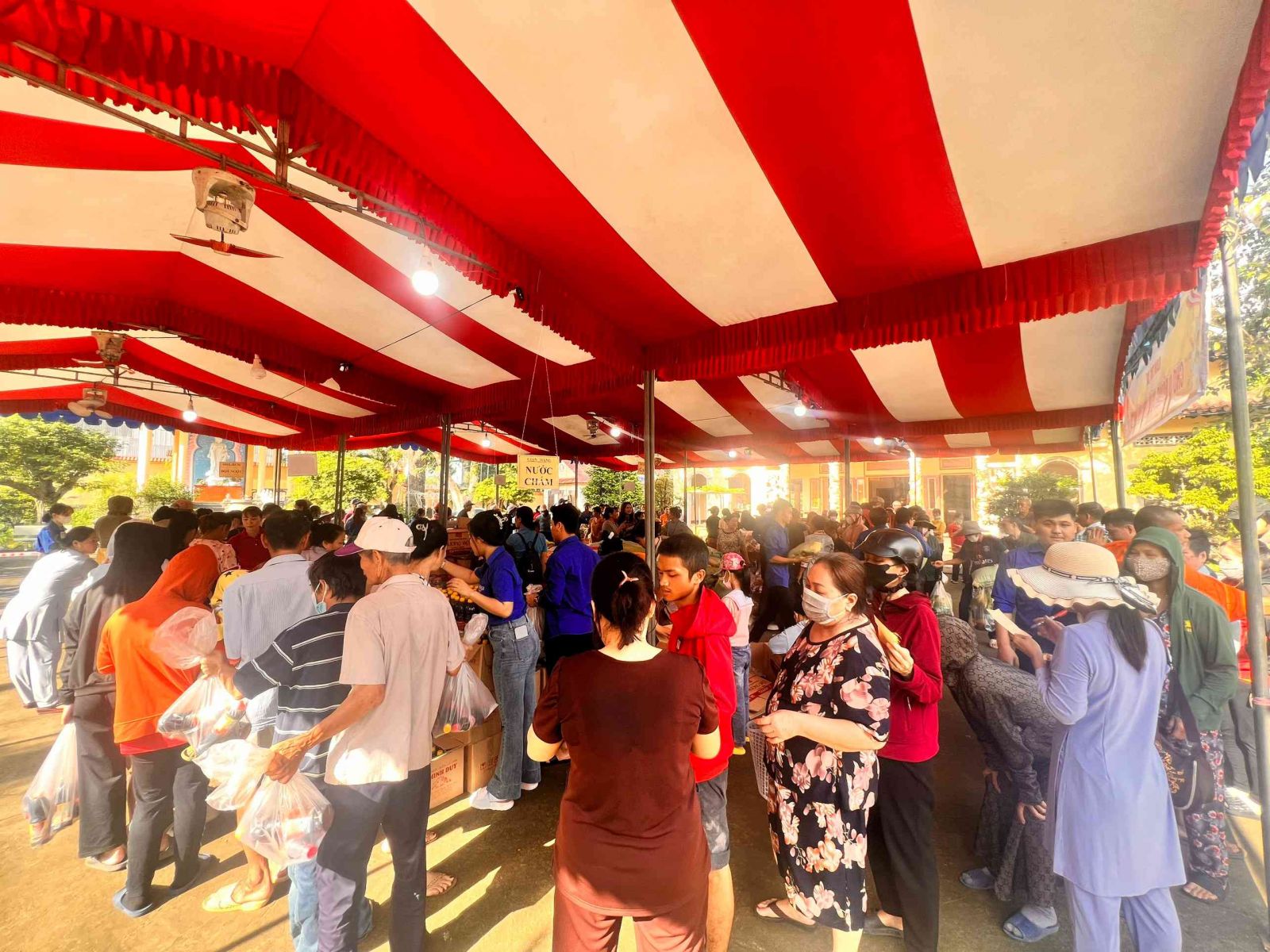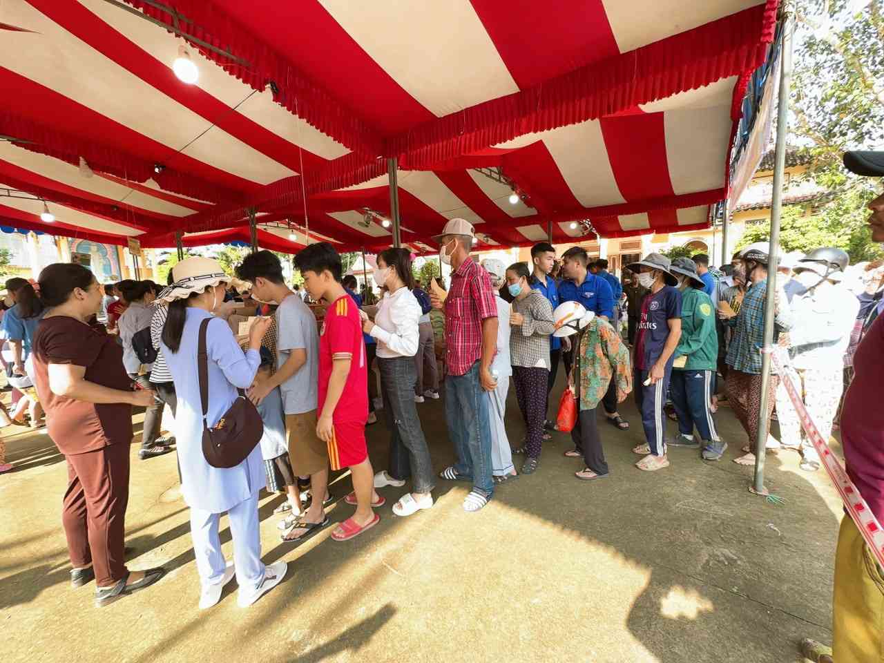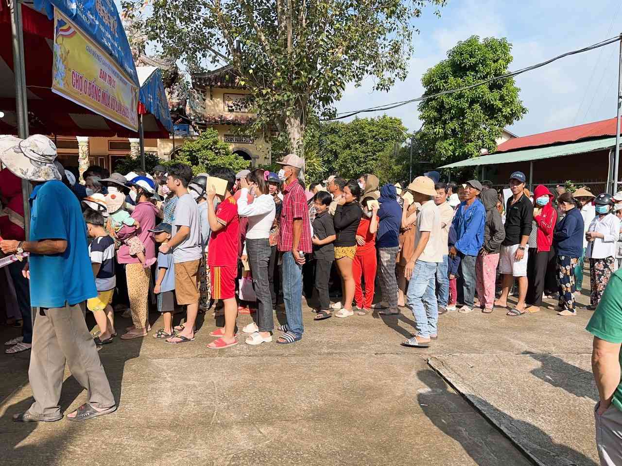 Sau lời khai mạc của TT Thích Chí vân- Phó ban TT Ban trị sự, đông đảo bà con nhân dân vào tham quan và tham gia phiên chợ. Có 8 gian hàng được bán tại phiên chợ là lương thực, thực phẩm. 6000kg gạo, 600 túi bột nêm, bột ngọt, 1200 chai nước tương, 600 chai nước mắm, 600kg đường, 1200 gói mỳ tôm, 1 tấn rau, tổng kinh phí hơn 200tr đồng.