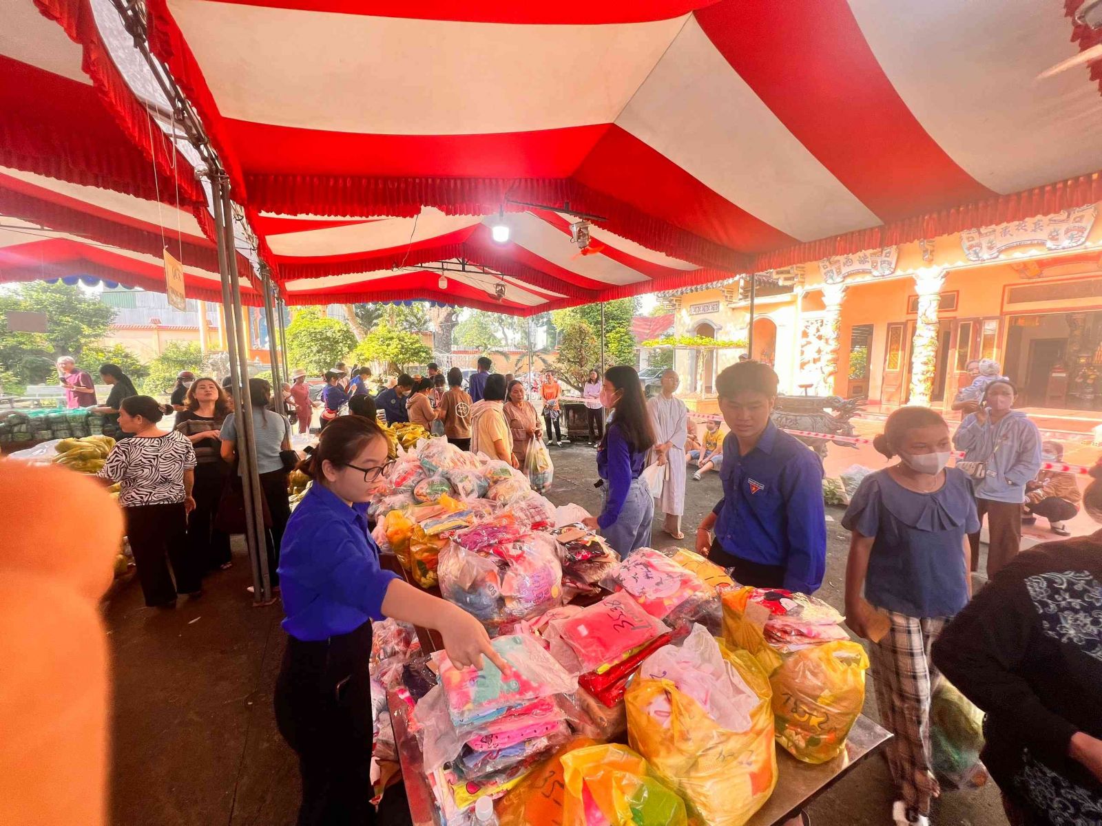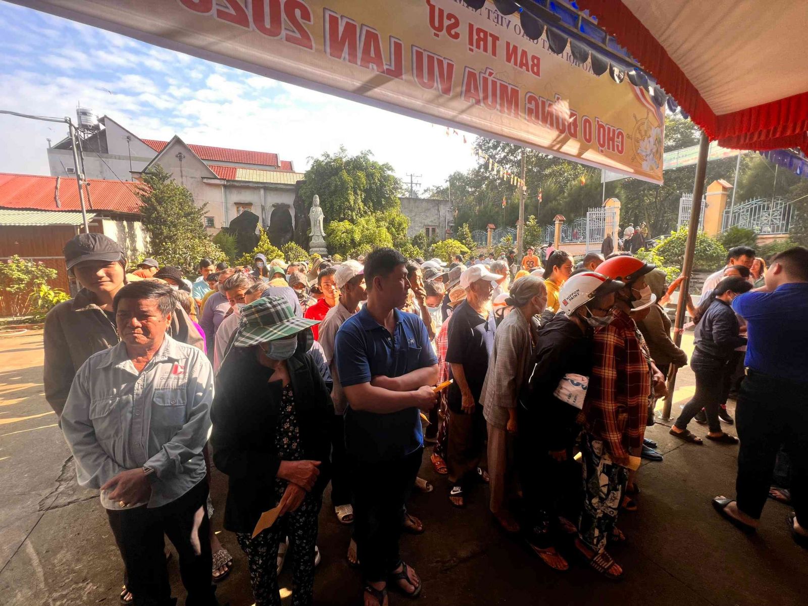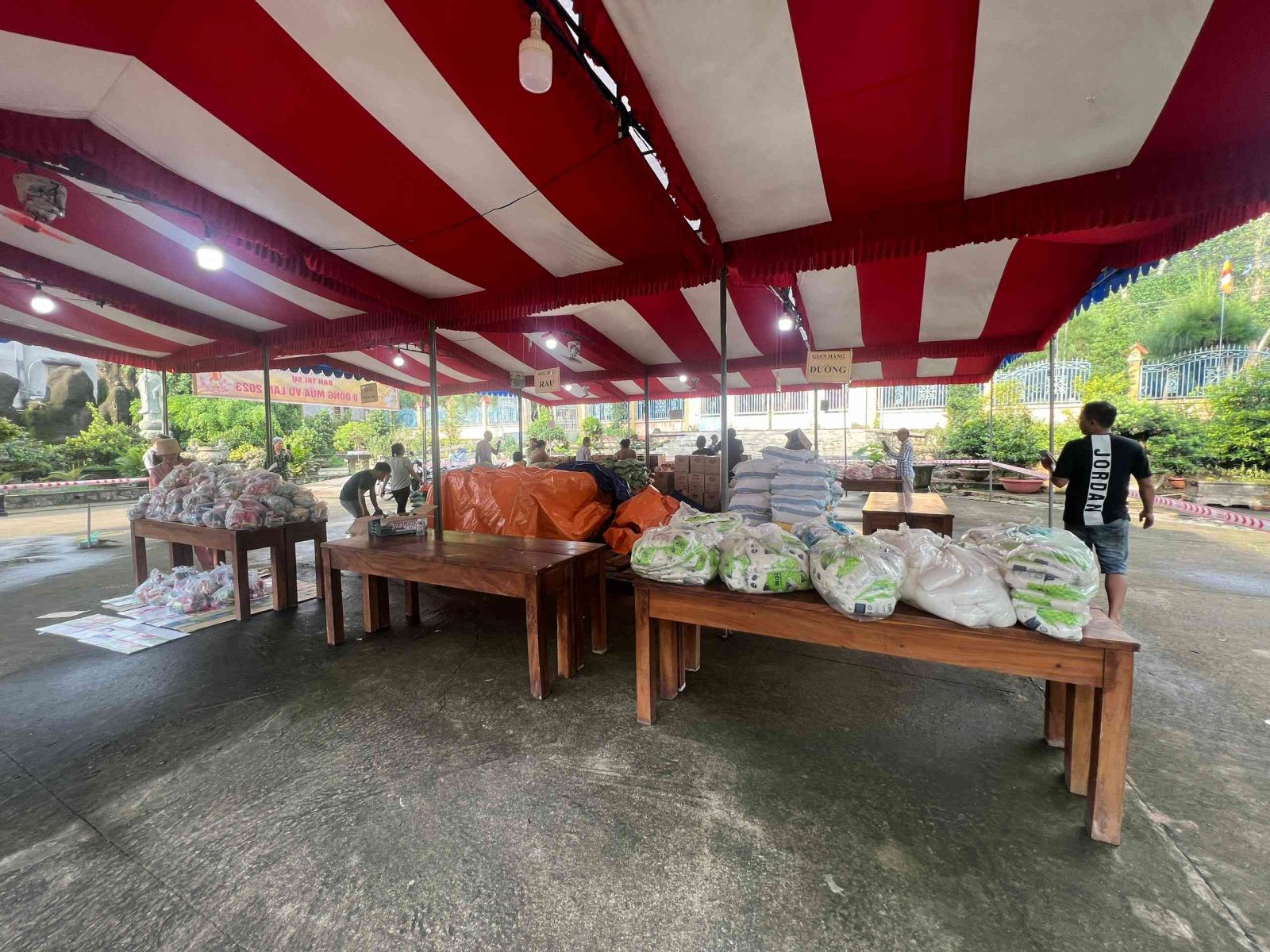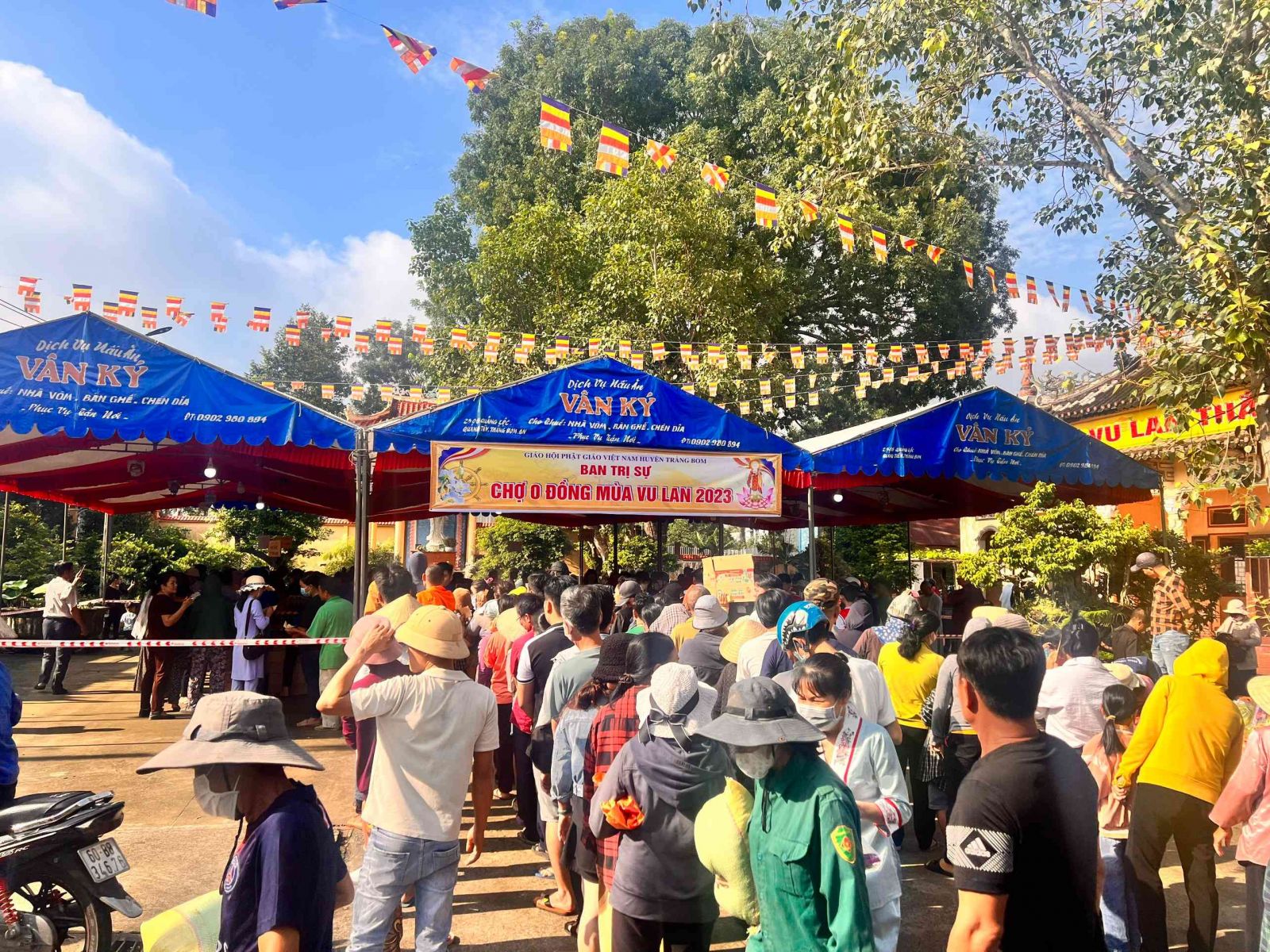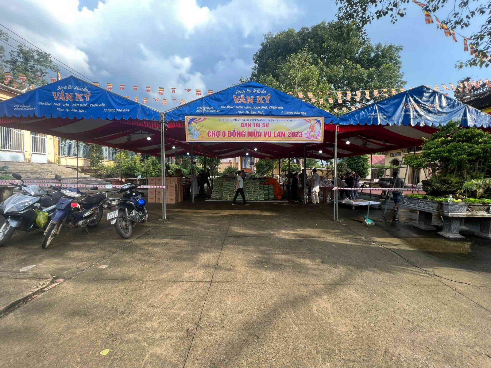 Sau lời khai mạc của TT Thích Chí vân- Phó ban TT Ban trị sự, đông đảo bà con nhân dân vào tham quan và tham gia phiên chợ. Có 8 gian hàng được bán tại phiên chợ là lương thực, thực phẩm. 6000kg gạo, 600 túi bột nêm, bột ngọt, 1200 chai nước tương, 600 chai nước mắm, 600kg đường, 1200 gói mỳ tôm, 1 tấn rau, tổng kinh phí hơn 200tr đồng.
