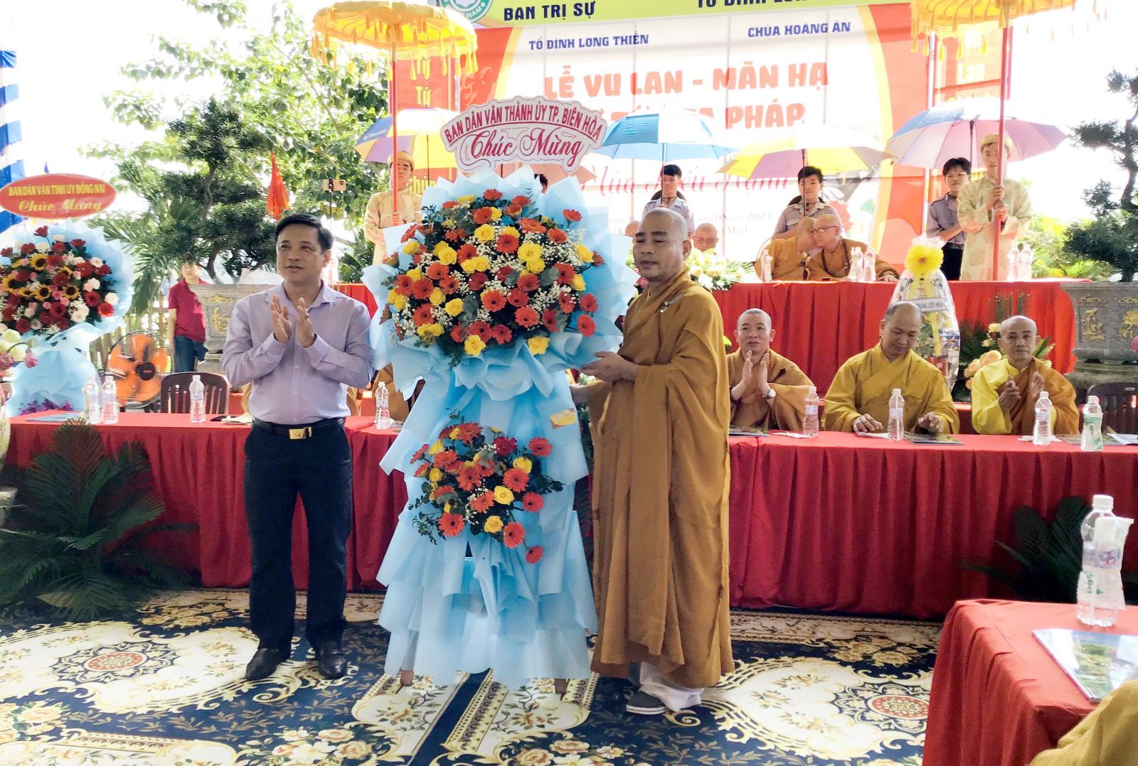 Dự lễ Vu Lan báo hiếu do BTS GHPGVN Thành Phố Biên Hòa tổ chức. Đoàn sinh GĐPT Giác Viên và GĐPT Phúc Lâm dâng cúng vũ điệu “Chắp tay sen nở” của tác giả “Lăng Già tâm” bút hiệu của Hòa thượng Đạo hiệu Thích Thiện Đạo – Thành viên chứng minh BTS GHPGVN tỉnh Đồng Nai trong ý nghĩa dâng cúng chư Phật những đóa sen đời ngát hương, những thâm ân cao dày của những đấng sinh thành trong tu tập các pháp nhiệm mầu của chư Phật.