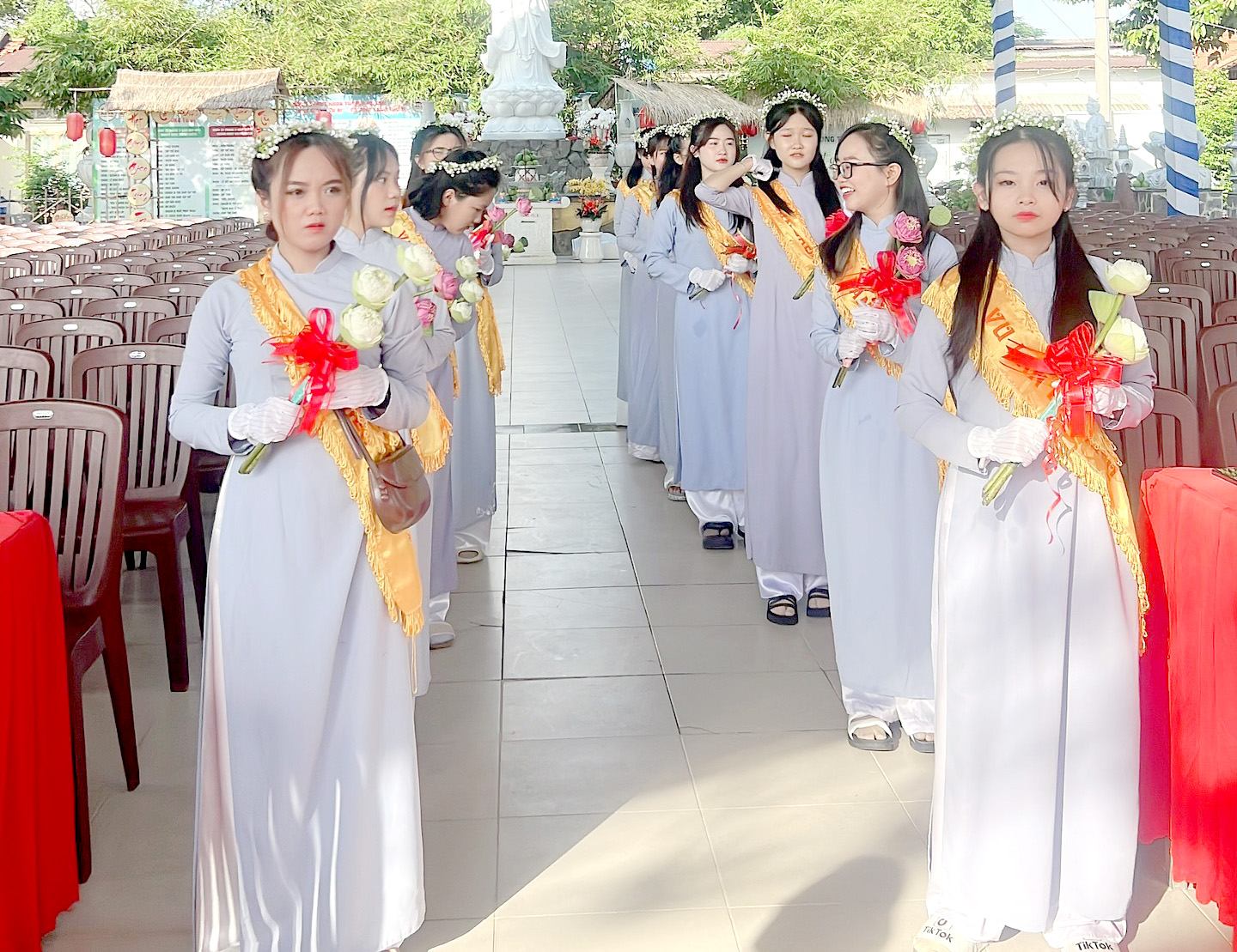 Trong khung cảnh trang nghiêm nhiệm mầu của mùa Vu Lan Báo hiếu, ngày chư tăng tự tứ mãn hạ, huynh trưởng Phật tử và các em đoàn sinh đơn vị Gia đình Phật tử Giác Viên và Gia đình Phật tử Phúc Lâm đã dâng những đóa hoa tươi thắm cúng dường đến chư tăng như một niềm tin trong tứ trọng ân, ngưỡng mong oai đức quý ngài cầu cho cha mẹ trong nhiều kiếp được vãng sanh lạc quốc, đồng thời cũng tự thân tinh tấn làm phát sinh nhiều phước báu trong đời sống hiện tại ngõ hầu báo đáp công ơn sinh thành dưỡng dục của cha mẹ hiện tiền được an vui, hạnh phúc.