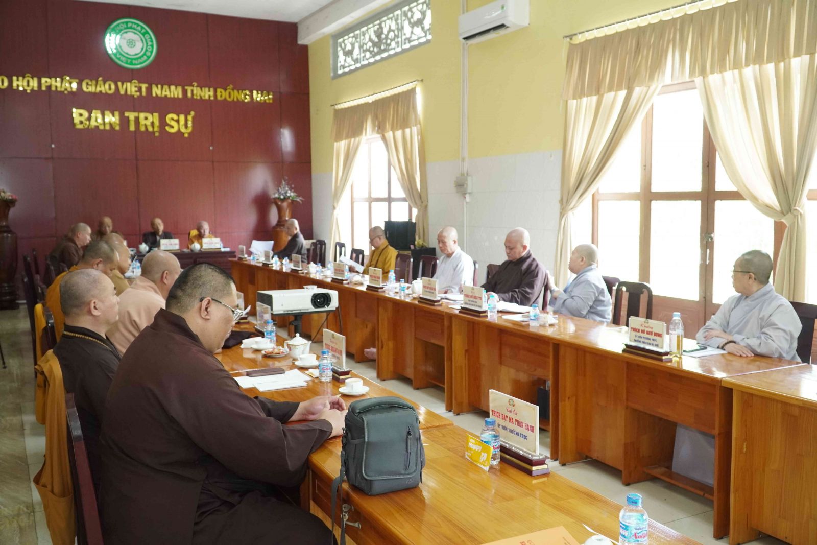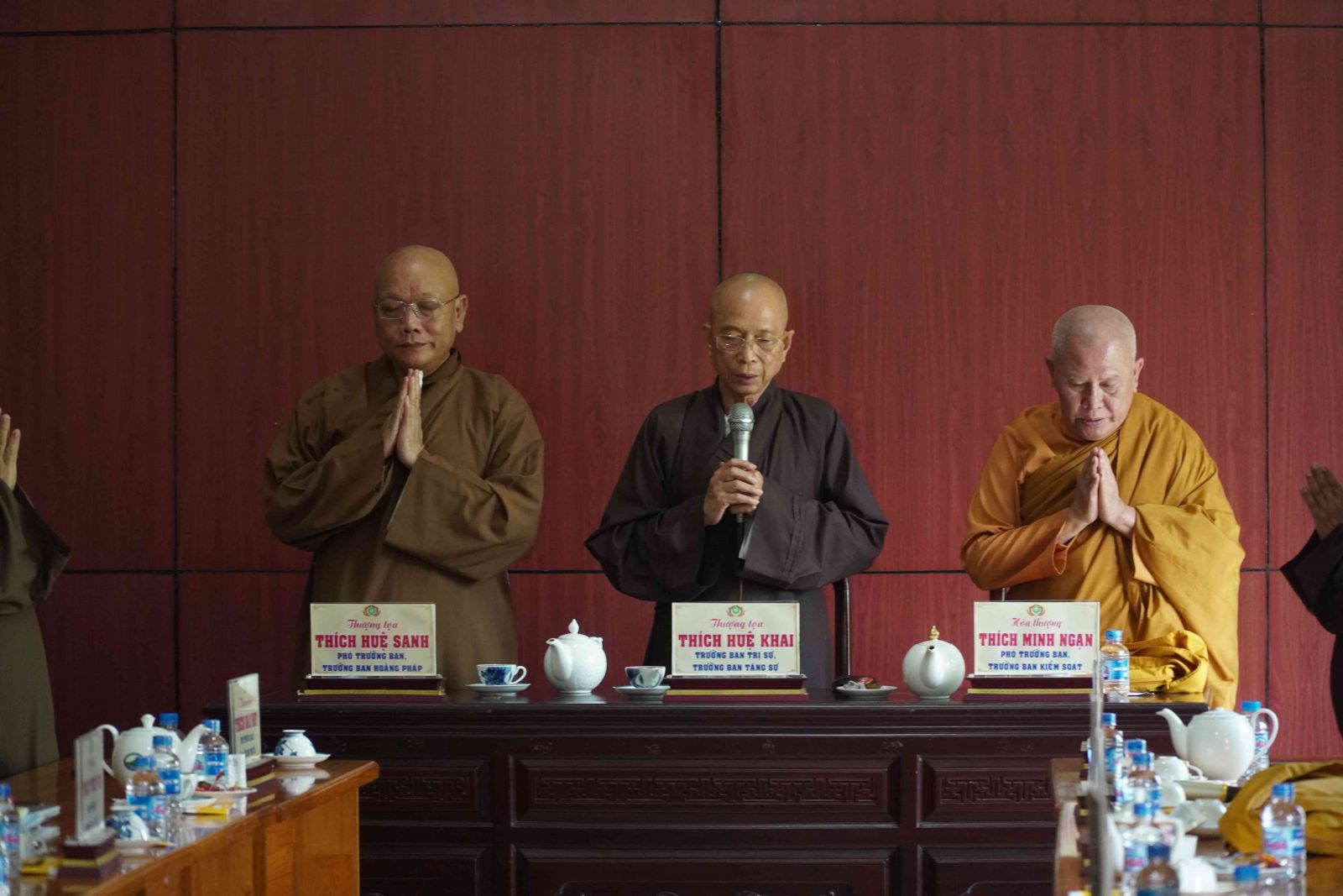 Chủ toạ phiên họp có TT. Thích Huệ Khai - Uỷ viên Thường trực HĐTS, Trưởng ban Ban Trị sự, Trưởng ban Tăng sự GHPGVN tỉnh; HT. Thích Minh Ngạn - Phó Ban Trị sự, Trưởng ban Kiểm soát GHPGVN tỉnh; TT. Thích Huệ Sanh - Uỷ viên HĐTS, Phó Ban Trị sự, Trưởng ban Hoằng pháp GHPGVN tỉnh; cùng chư Tôn đức Tăng Ni Phó Ban Trị sự và các Uỷ viên Thường trực Ban Trị sự GHPGVN tỉnh đồng tham dự phiên họp.