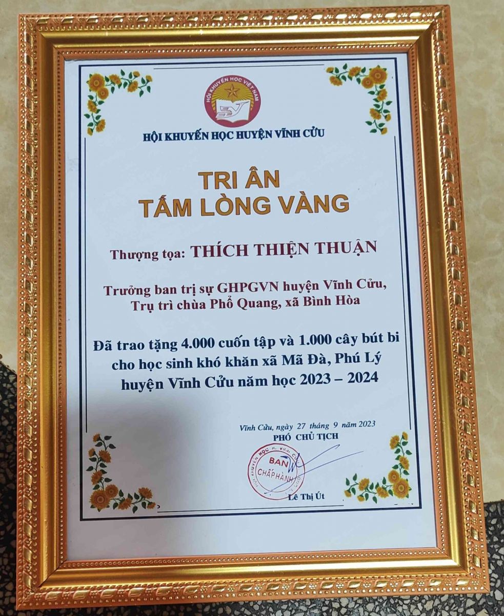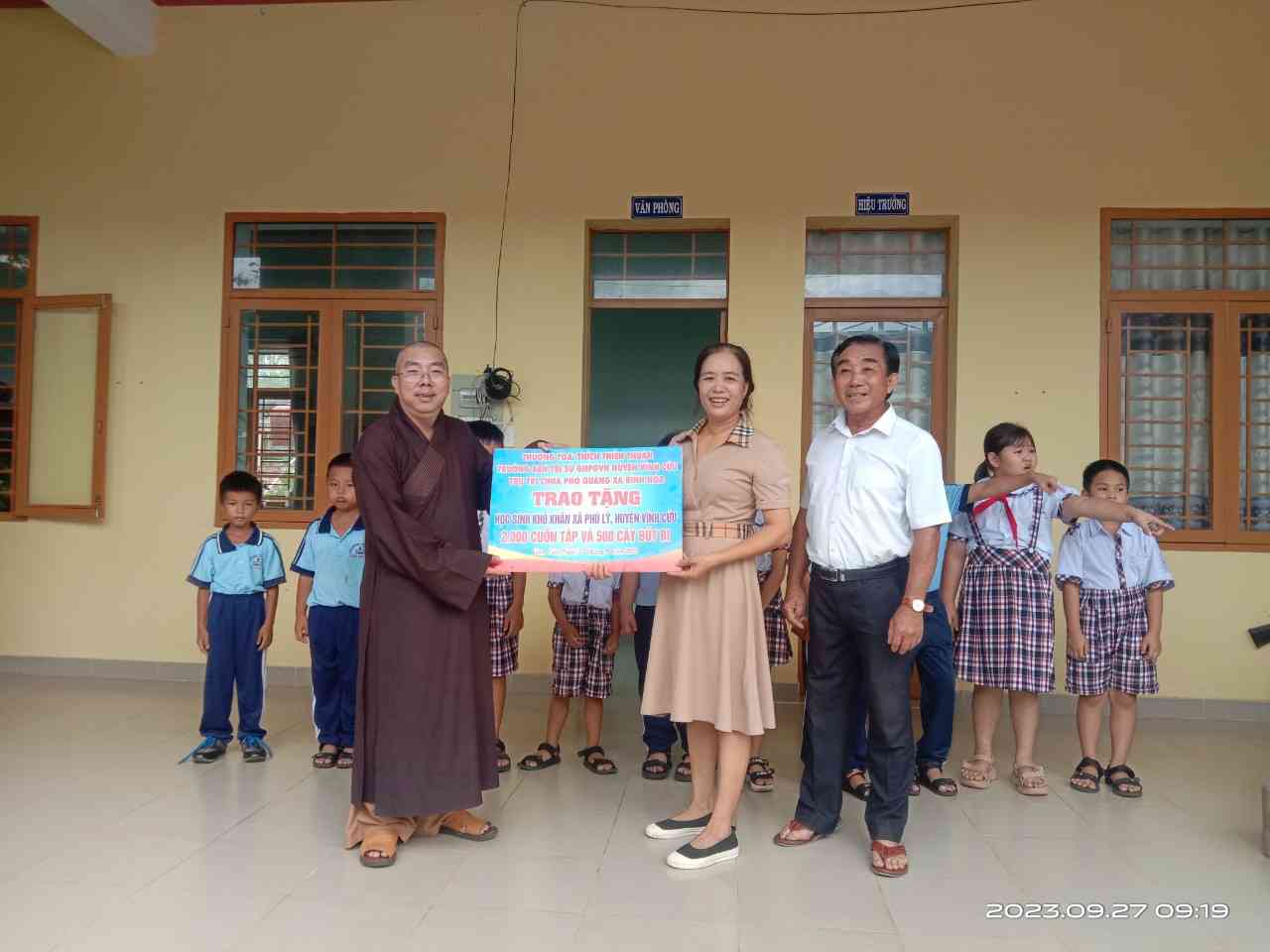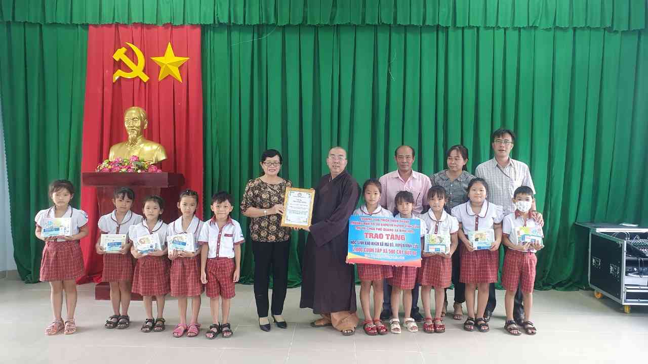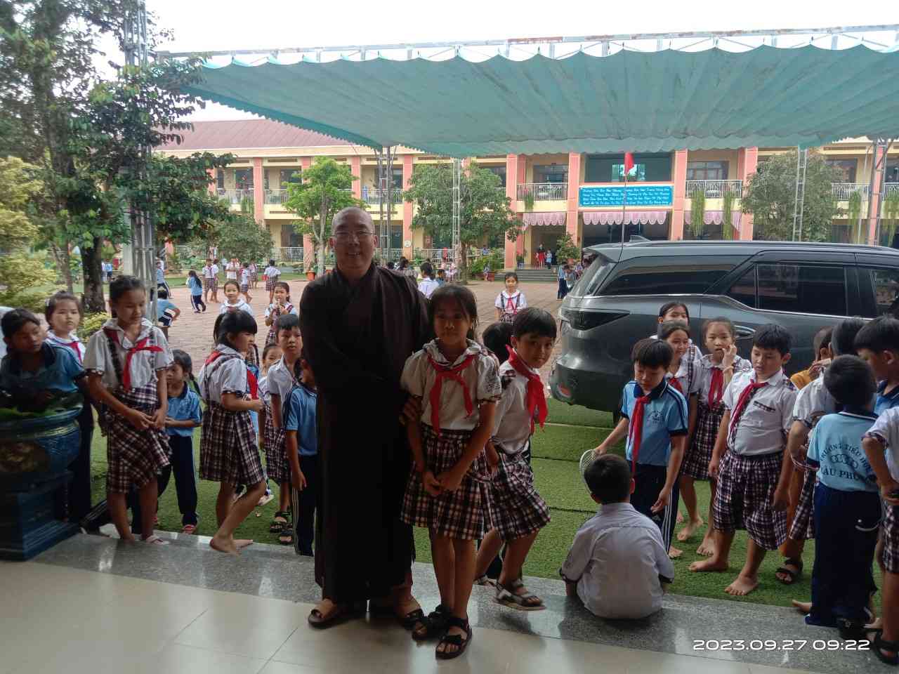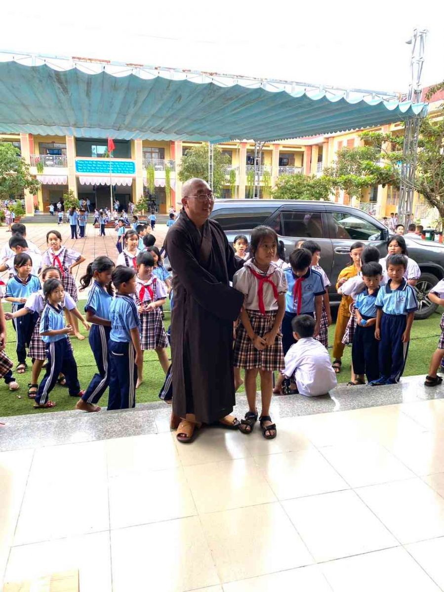 Thượng tọa cũng chia sẽ: Trẻ em hôm nay là thế hệ mai sau của đất nước, là nền tảng của sự phát triển tương lai, chúng ta hãy tạo mọi điều kiện cho trẻ đến trường, để mai sau là những người có ích cho xã hội.