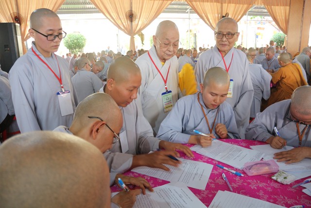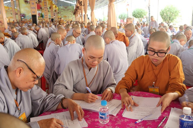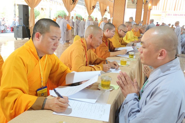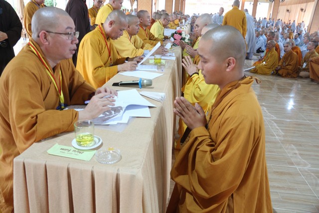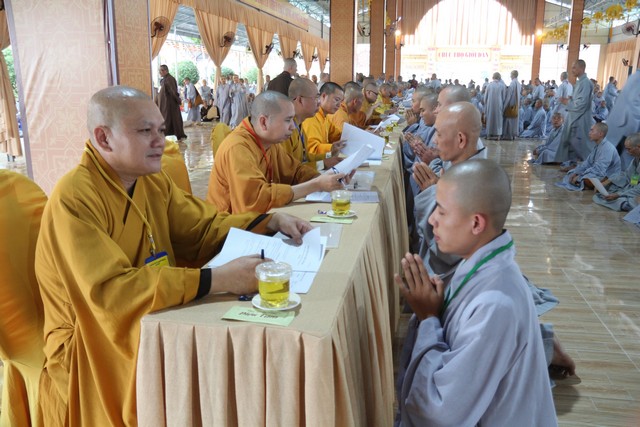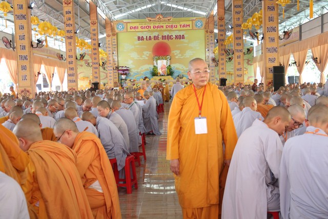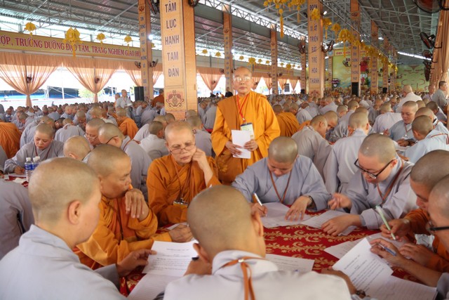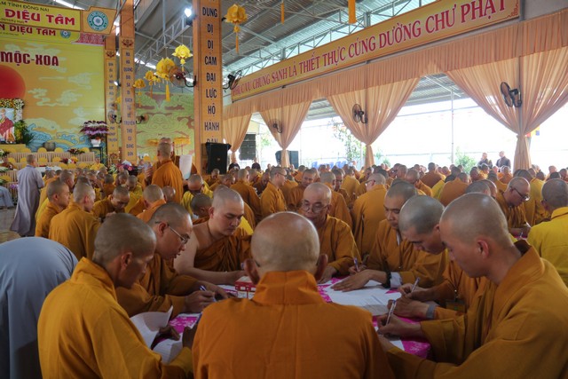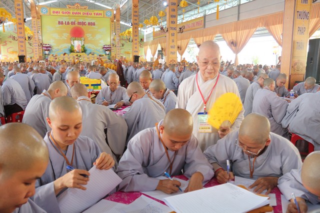 Trước khi vào bài thi HT Thích Nhật Quang chánh chủ khảo có lời sách tấn đến các giới tử. Hòa thượng nhấn mạnh tầm quang trọng của giới luật, giới luật là mạng mạch của Phật pháp và người tu sĩ trì giới mạng lại lợi ích gì cho tự thân và mọi người xung quanh. Hòa thượng dạy: “Quý vị hãy giữ cho ba nghiệp thanh tịnh, trang nghiêm thanh tịnh để xứng đáng duy trì mạng mạch Phật pháp. Đây cũng là lần thi tuyển để từ đó quý vị đem những vinh dự về cho tông môn cho tổ sư của mình và đồng thời quý vị cũng gầy dựng vị thế, vị trí của quý vị trong hàng Thích tử của Đức Như Lai, rất là mong quý vị làm tròn nhiệm vụ này. Nguyện mười phương chư Phật các bậc hiền thánh, lịch đại Tổ sư và hiện tiền chư Tôn thiền đức tăng, ni luôn thương tưởng hộ trì cho quý vị làm tốt.” Nam Mô Bổn Sư Thích Ca Mâu Ni Phật.