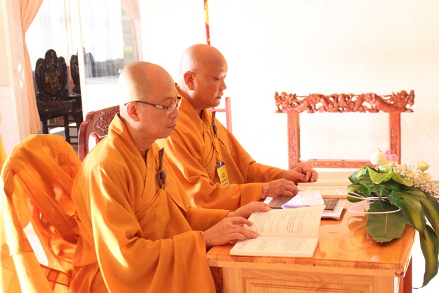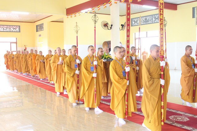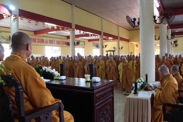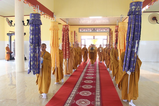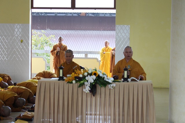 Các tân Tỳ-kheo quỳ thẳng, chắp tay cung kính hướng về Thập sư lắng nghe lời huấn từ của Hòa thượng Đường đầu với những lời dạy hết sức cần thiết cho sự nghiệp tu hành của một người xuất gia. Giới Định Tuệ là ba yếu tố vô cùng thiết yếu của người bắt đầu học Phật, đó là cả hành trang mang theo suốt cuộc đời của những hành giả muốn tìm đến chân như của cuộc sống, với những lời dạy hết sức giản dị mà chứa đầy tình thương đến với hàng hậu học. Toàn thể tân Tỳ-kheo khể thủ cung kính đồng thanh phụng chỉ: “Y giáo phụng hành” ba lần, thể hiện sự quyết tâm trân quý giới thể châu viên vừa bẩm thọ.