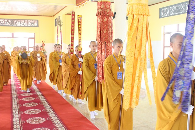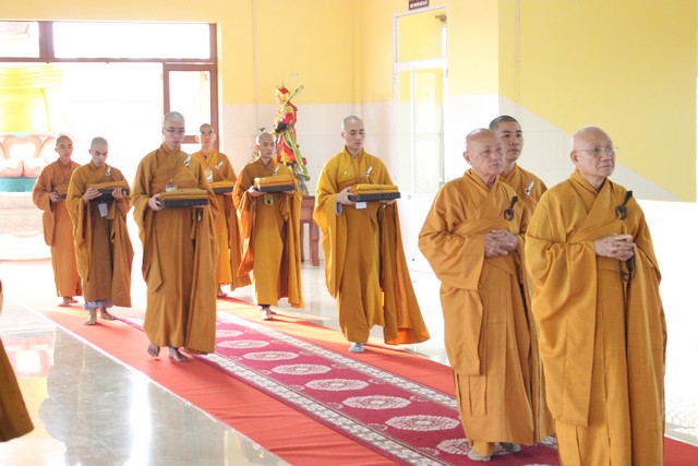 Ban cung nghinh đã trang nghiêm lễ thỉnh chư Tôn Thập Sư Tăng quang lâm Phật điện để chính thức khai lễ. Sau khi chư Tôn giáo phẩm Hội đồng Thập Sư niêm hương bạch Phật, chất vấn già nạn thì các Giới tử Tỳ-kheo được hướng dẫn xếp thành 175 đàn, mỗi đàn 3 vị lần lượt thứ tự vào giới trường để tấn đàn cầu thọ giới Tỳ-kheo, dưới sự điều phối của ban quản giới tử. Trước chư Tôn giáo phẩm Hội đồng Thập sư, nghi thức được diễn ra đúng y như Pháp, như Luật bạch tứ Yết-ma, truyền giới Tỳ-kheo thành tựu giới pháp trọn vẹn. Các Giới tử được xả y Sa-di. Hòa thượng Yết-ma Thích Minh Thông hướng dẫn các Giới tử Tỳ-kheo thọ trì 3 y: An-đà-hội, Uất-đa-la và Tăng-già-lê, truyền bình bát, tọa cụ, đãy lọc nước cho giới tử.