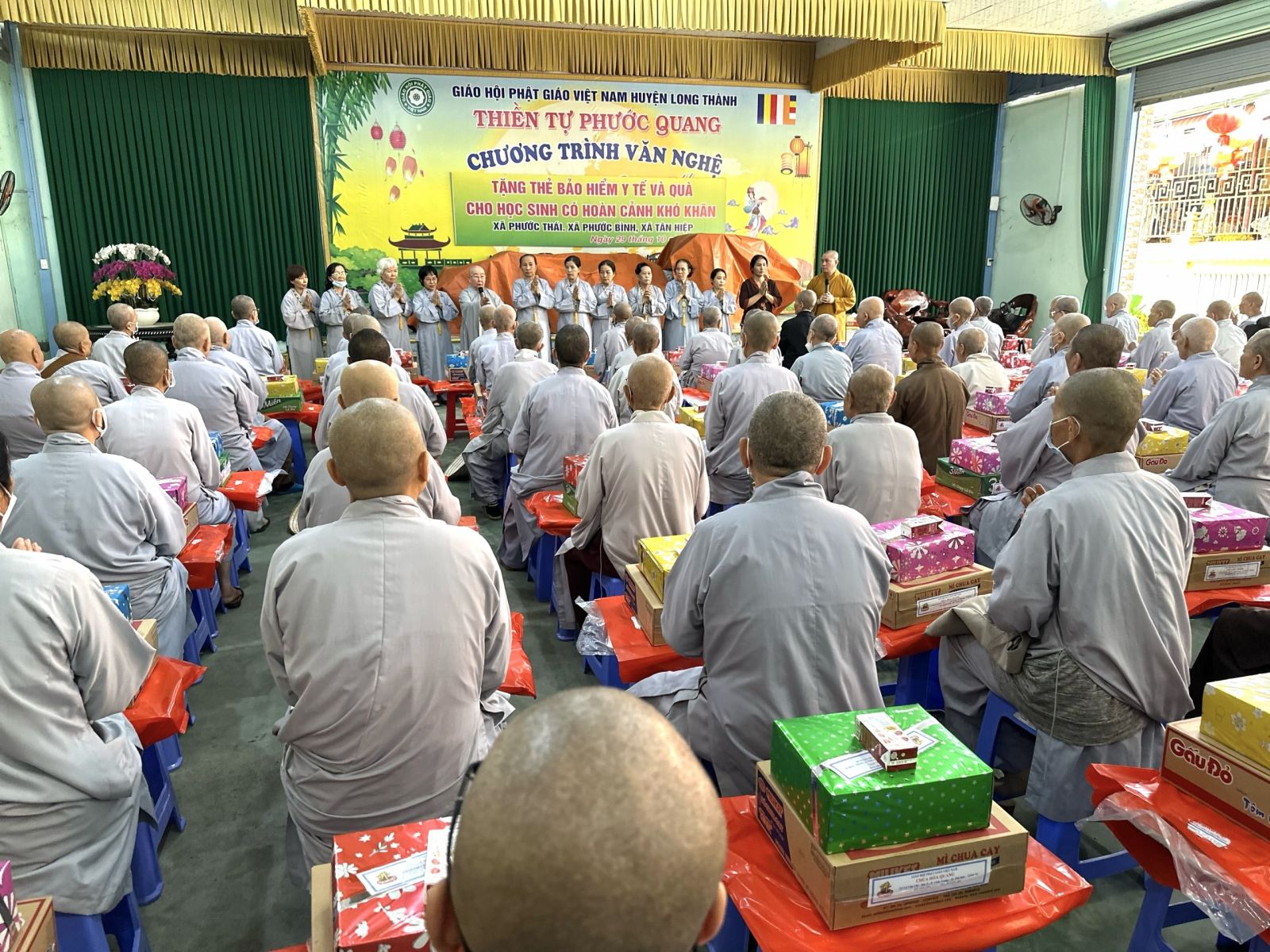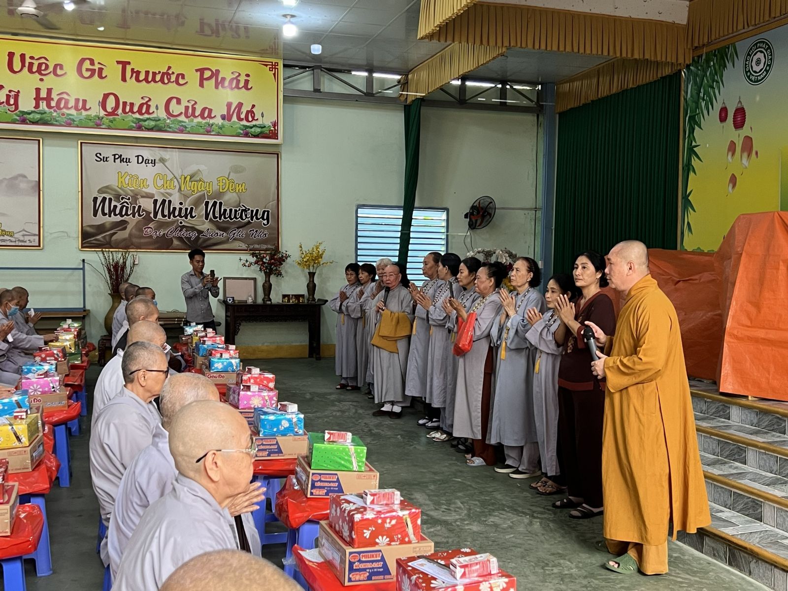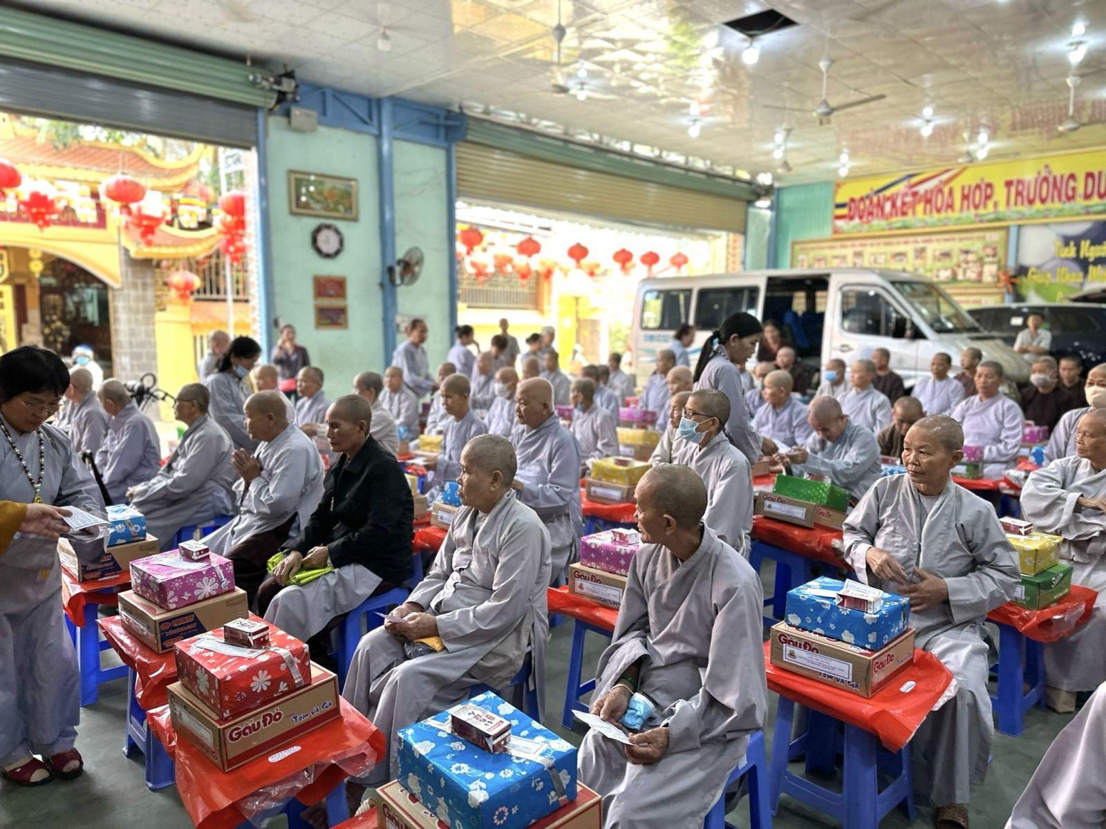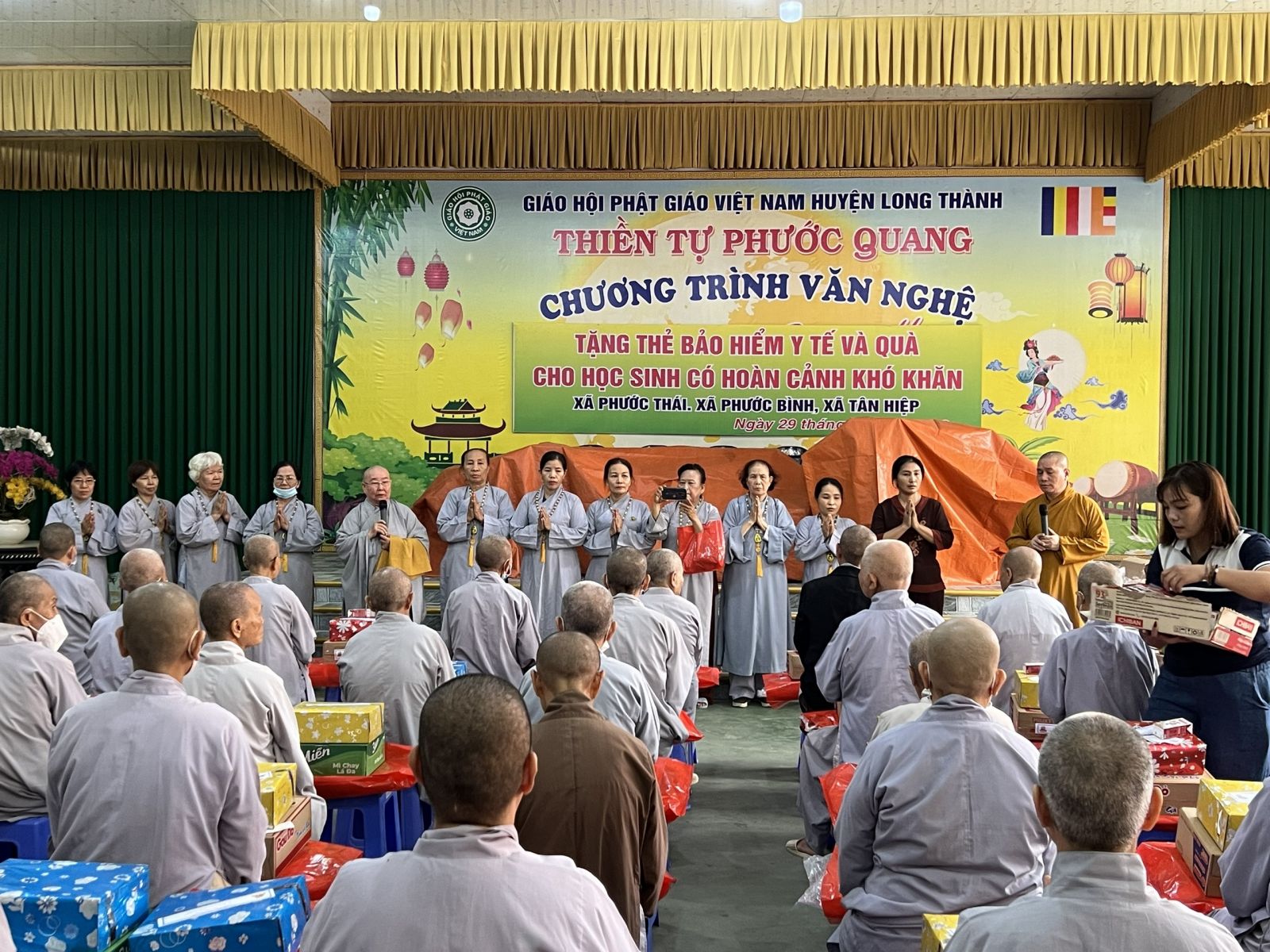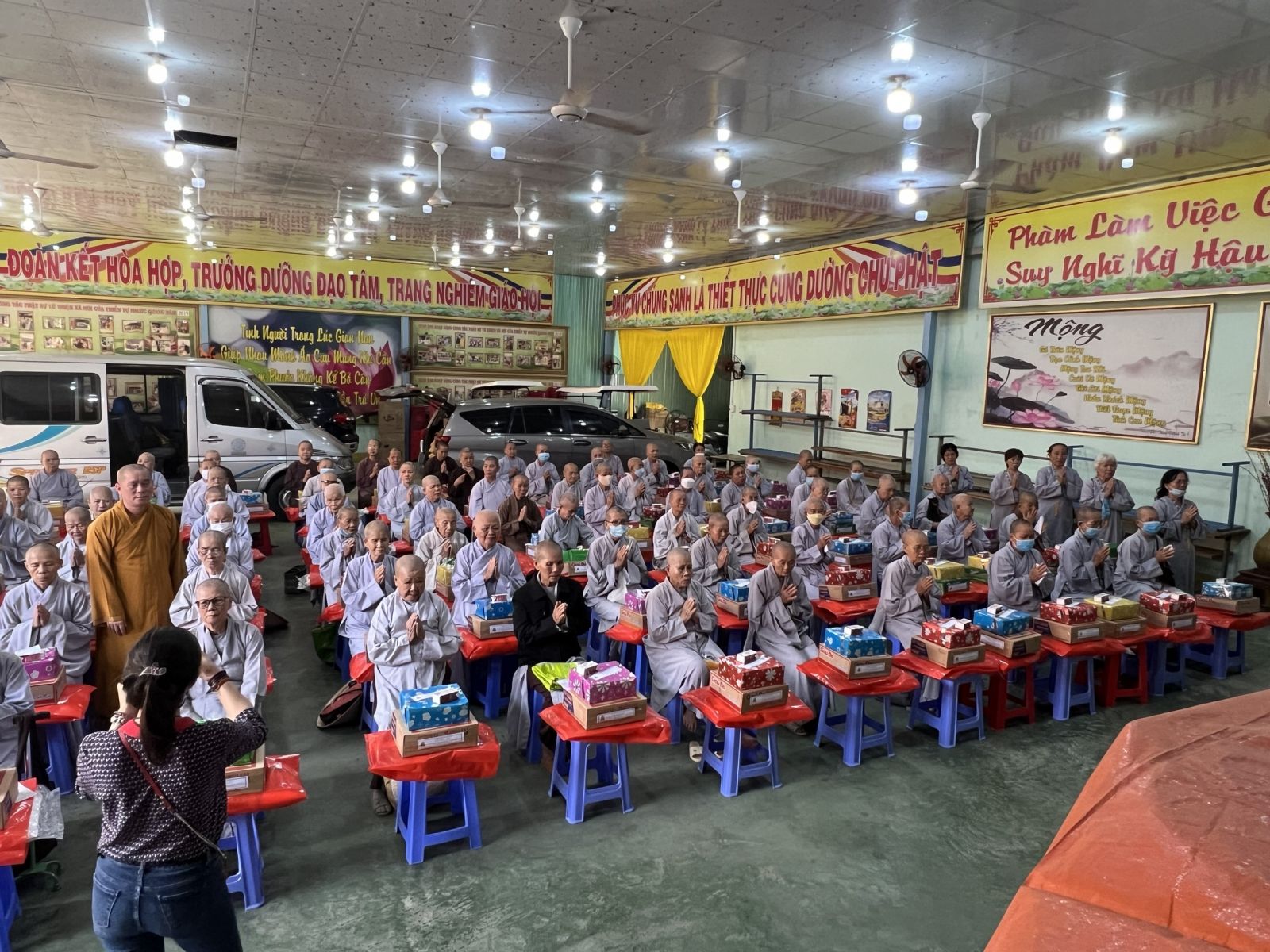 Đến cúng dường có ĐĐ. Thích Nguyên Thông – Phó trưởng ban Thường trực ban Từ thiện xã Hội GHPGVN tỉnh Đồng Nai, Phó ban kiêm Chánh Thư ký Ban Trị sự GHPGVN huyện Long Thành, Trụ trì Thiền tự Phước Quang; cùng chi hội từ thiện báo Giác Ngộ, quý mạnh thường quân, Phật tử xa gần đã về tại Thiền tự Phước Quang để dâng quà cúng dường chư Tăng Ni nhân ngày 20/11. Với tổng trị giá 75 triệu đồng.