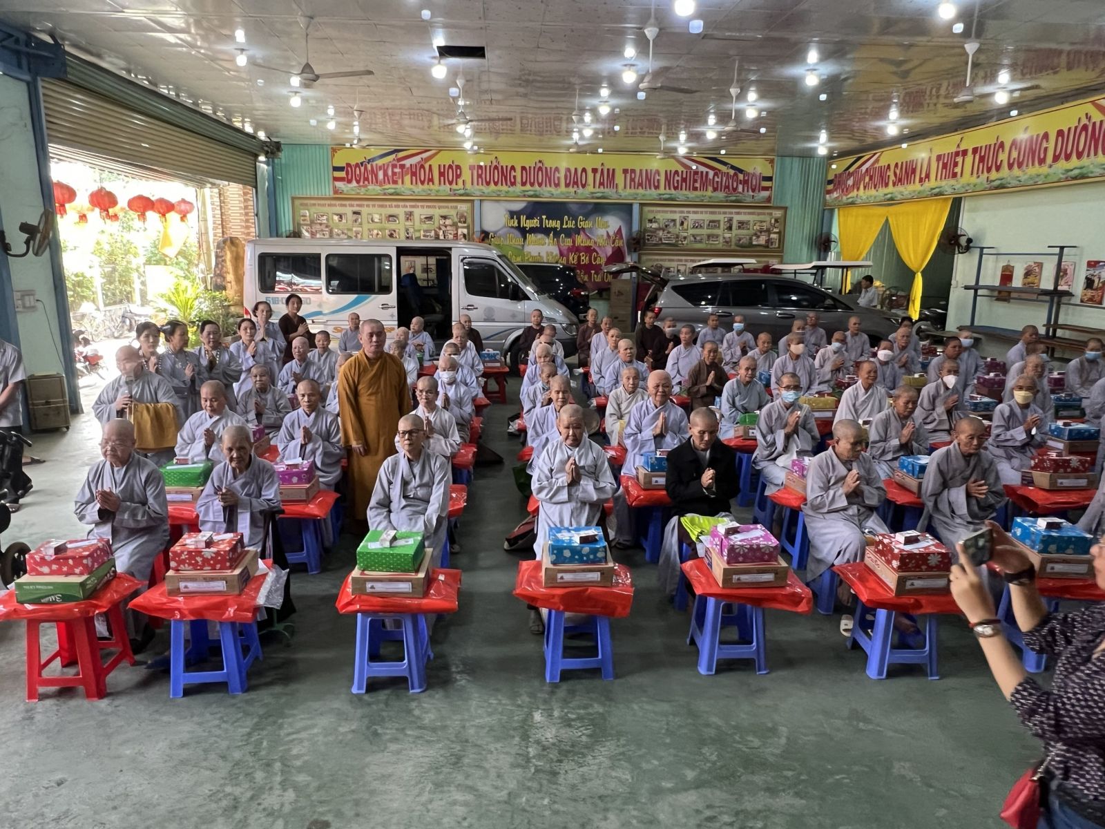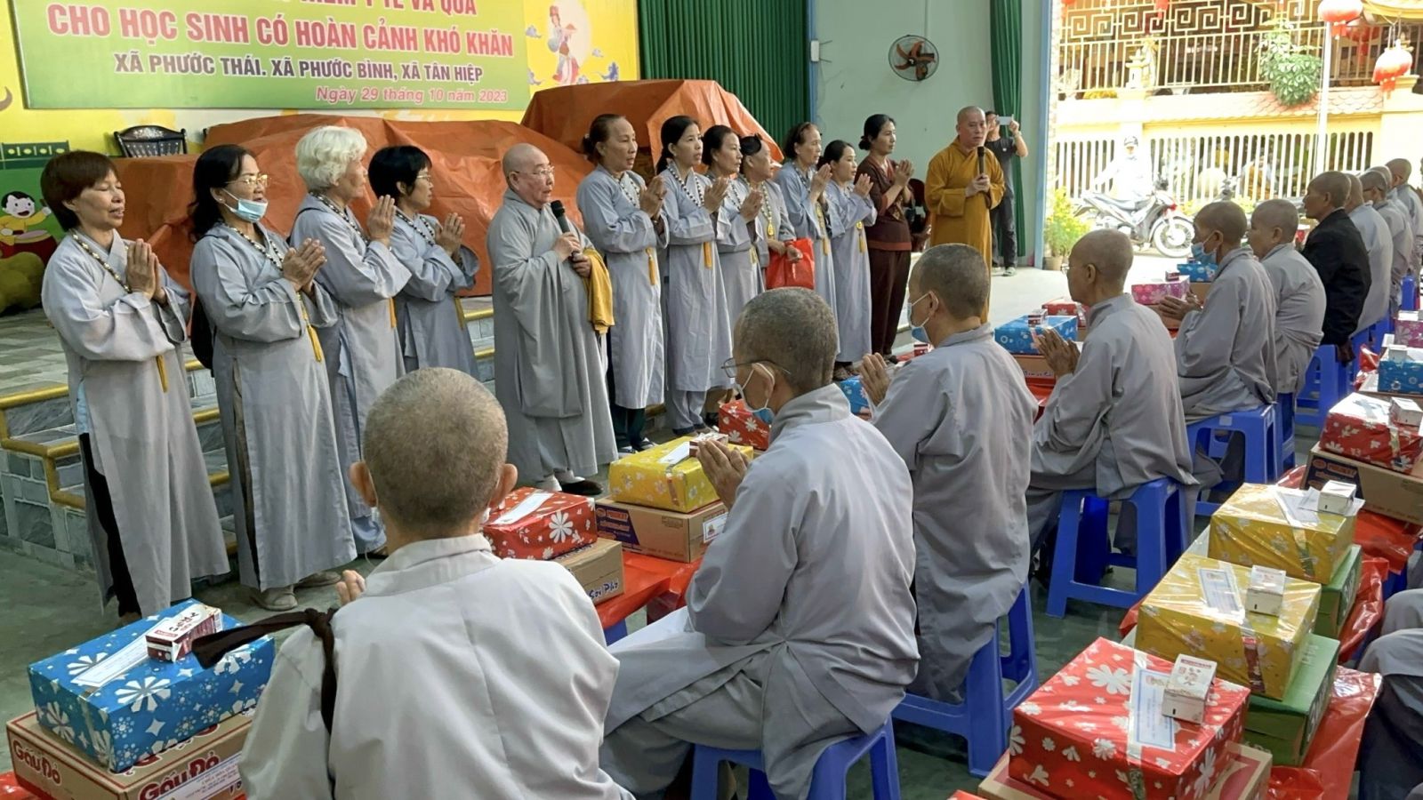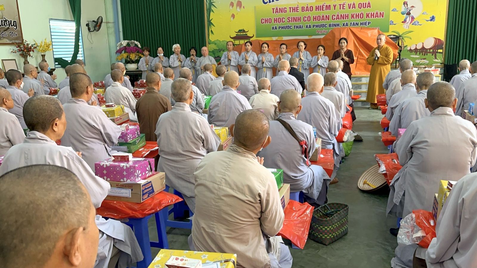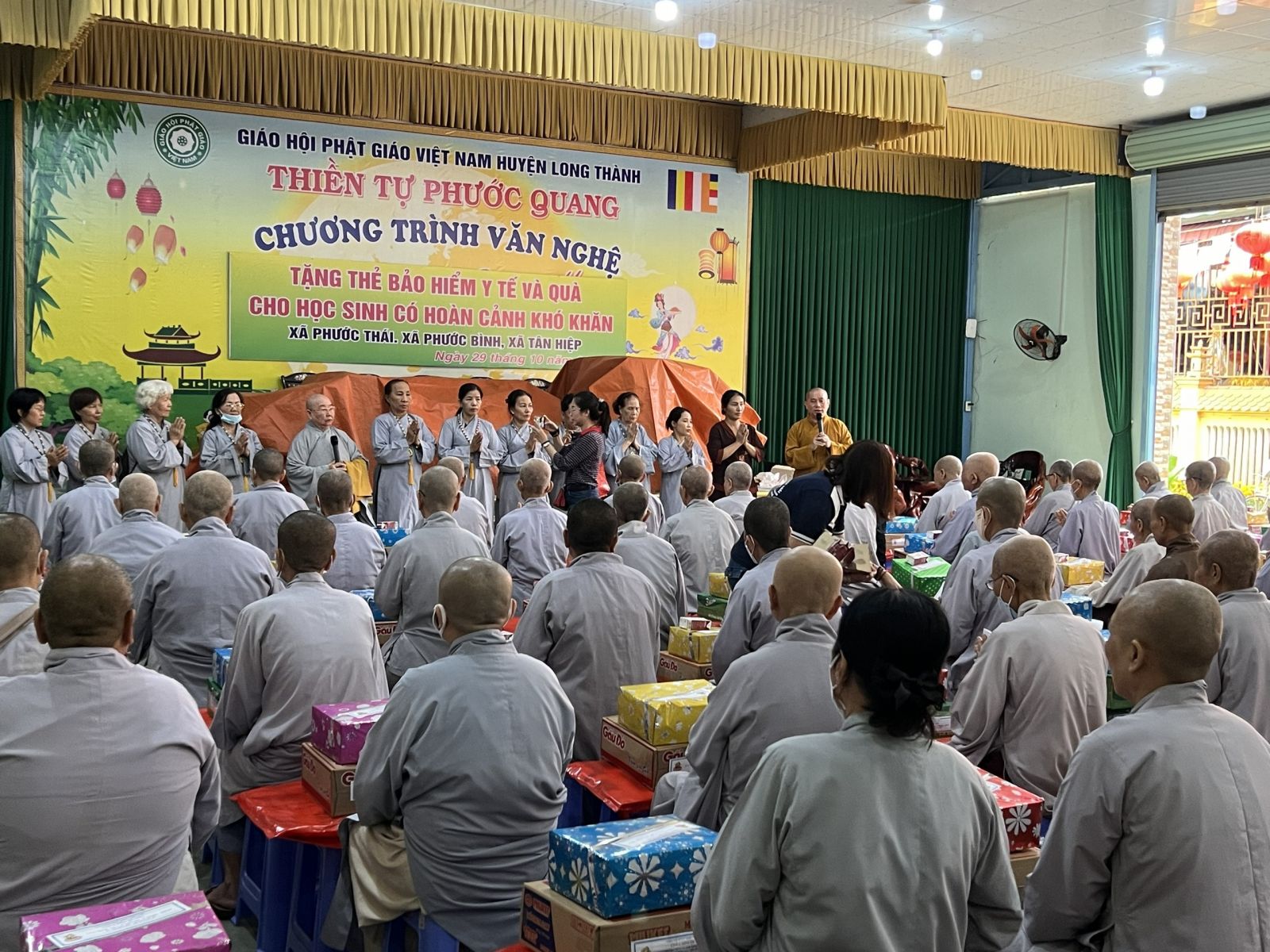 Đến cúng dường có ĐĐ. Thích Nguyên Thông – Phó trưởng ban Thường trực ban Từ thiện xã Hội GHPGVN tỉnh Đồng Nai, Phó ban kiêm Chánh Thư ký Ban Trị sự GHPGVN huyện Long Thành, Trụ trì Thiền tự Phước Quang; cùng chi hội từ thiện báo Giác Ngộ, quý mạnh thường quân, Phật tử xa gần đã về tại Thiền tự Phước Quang để dâng quà cúng dường chư Tăng Ni nhân ngày 20/11. Với tổng trị giá 75 triệu đồng.