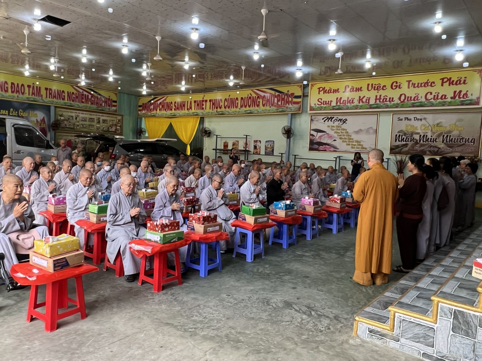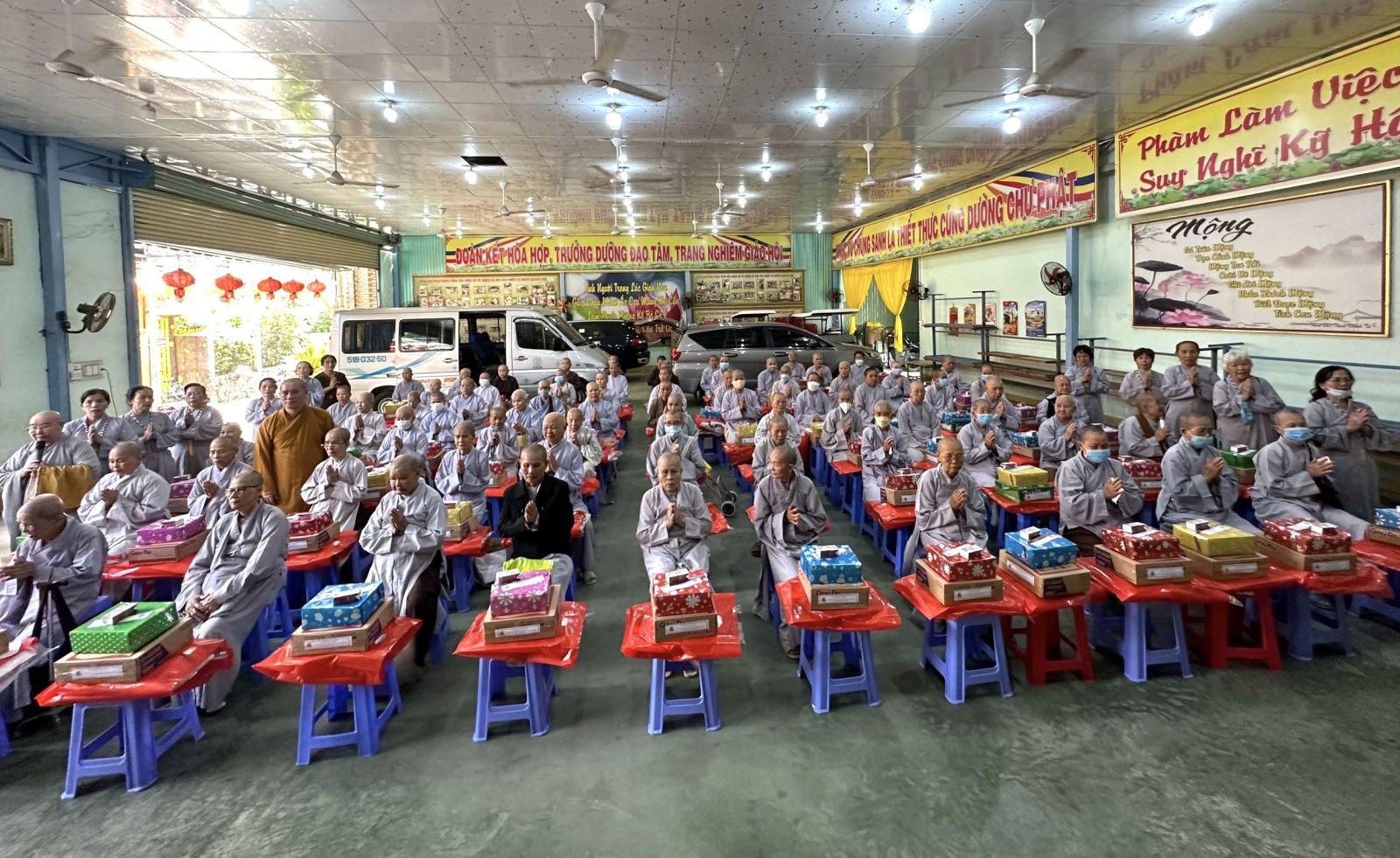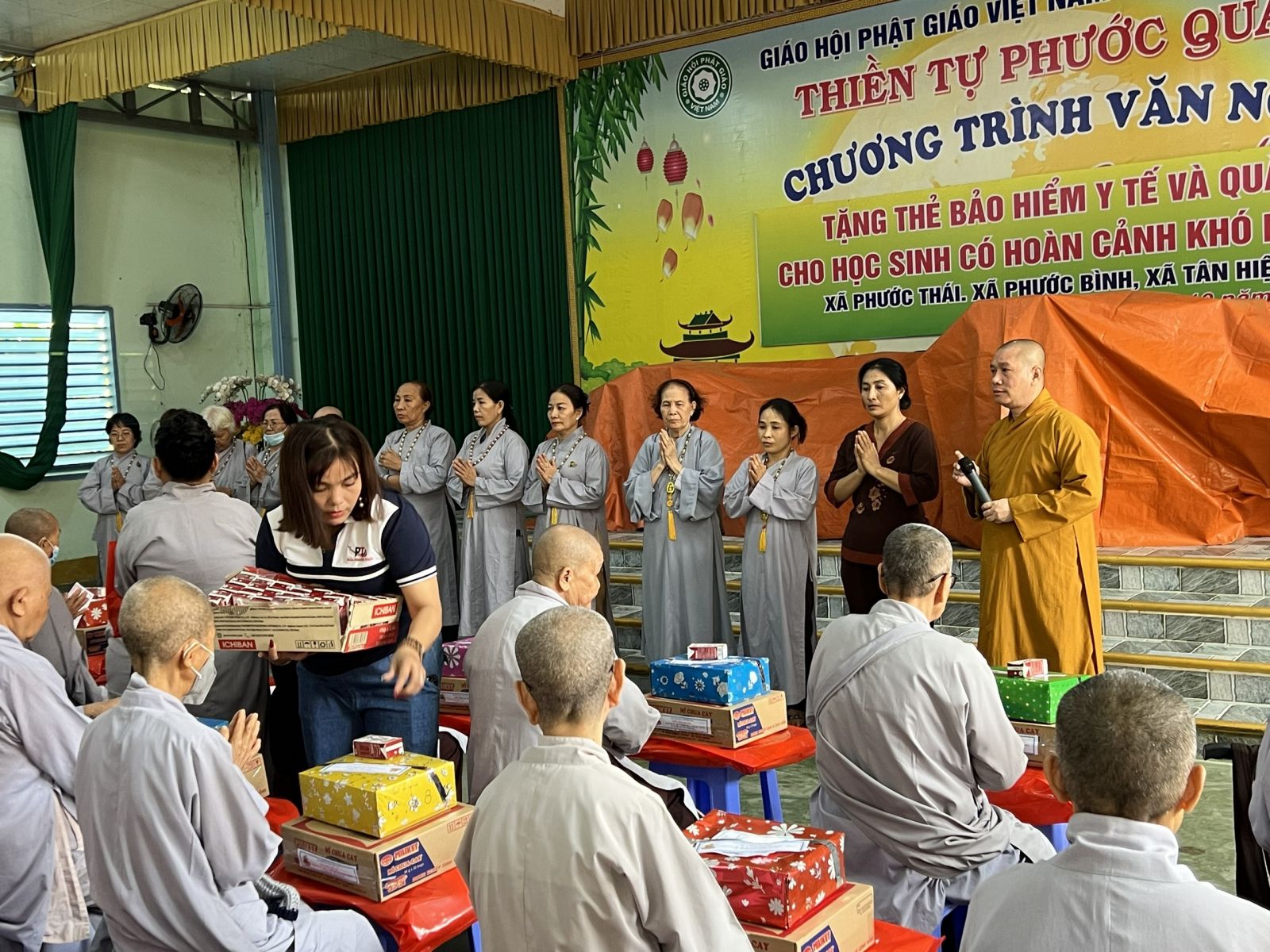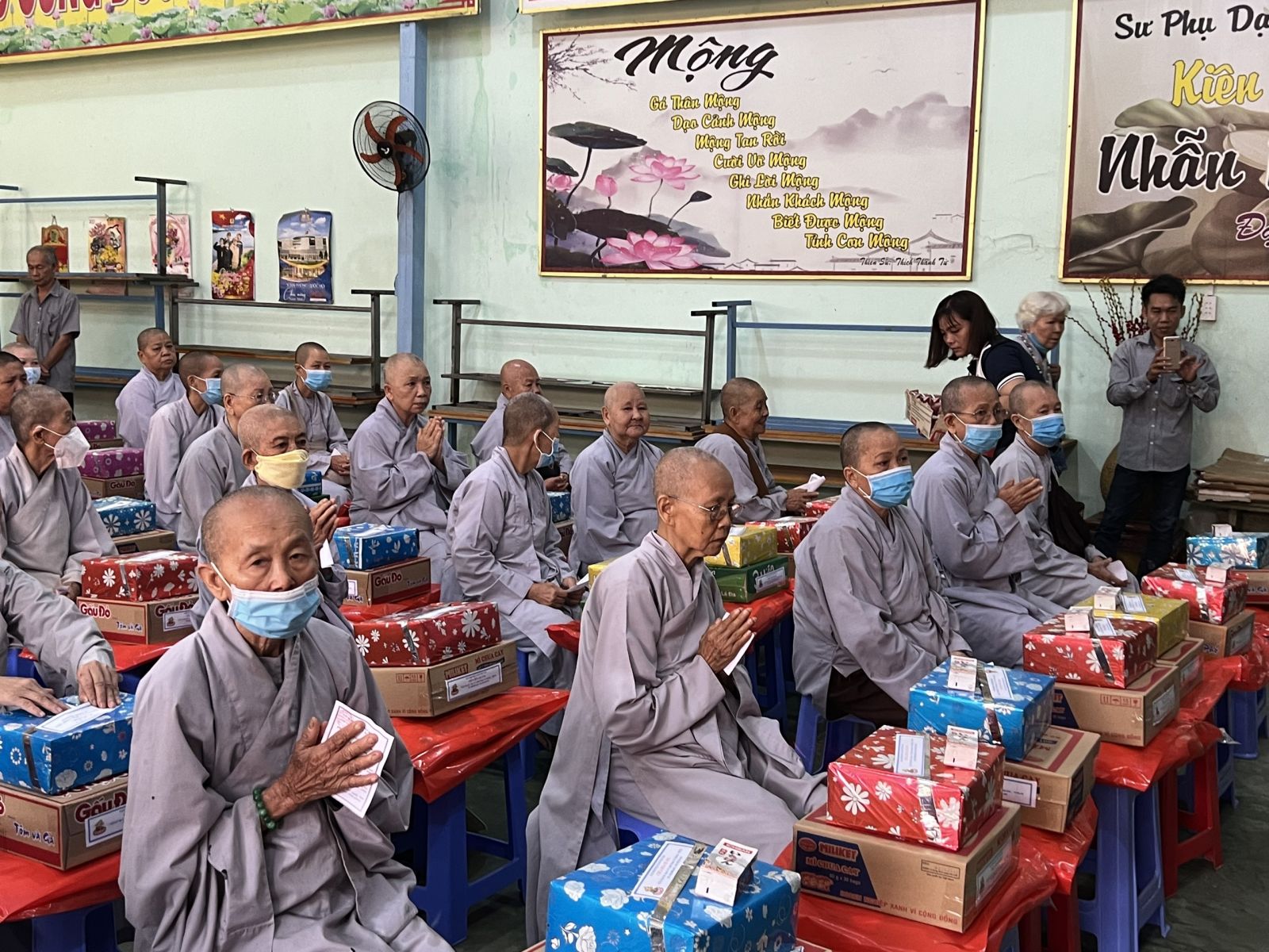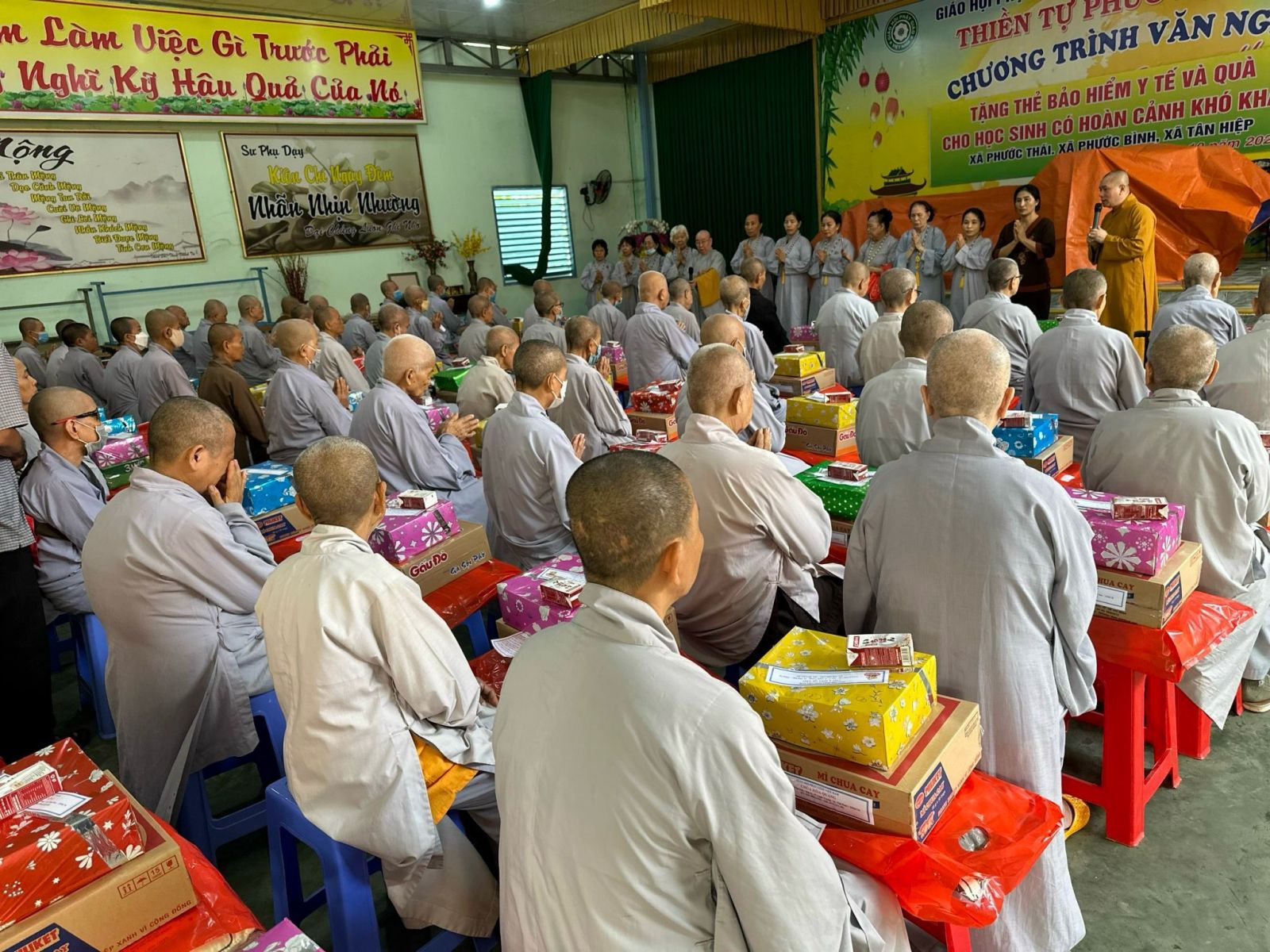 Đến cúng dường có ĐĐ. Thích Nguyên Thông – Phó trưởng ban Thường trực ban Từ thiện xã Hội GHPGVN tỉnh Đồng Nai, Phó ban kiêm Chánh Thư ký Ban Trị sự GHPGVN huyện Long Thành, Trụ trì Thiền tự Phước Quang; cùng chi hội từ thiện báo Giác Ngộ, quý mạnh thường quân, Phật tử xa gần đã về tại Thiền tự Phước Quang để dâng quà cúng dường chư Tăng Ni nhân ngày 20/11. Với tổng trị giá 75 triệu đồng.