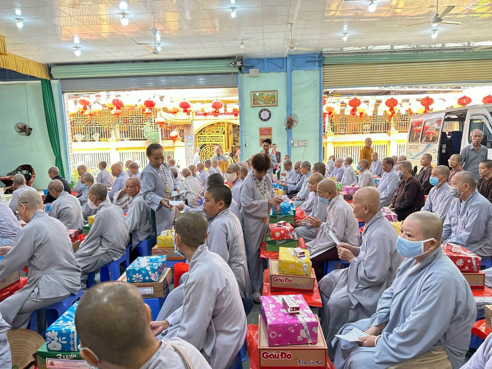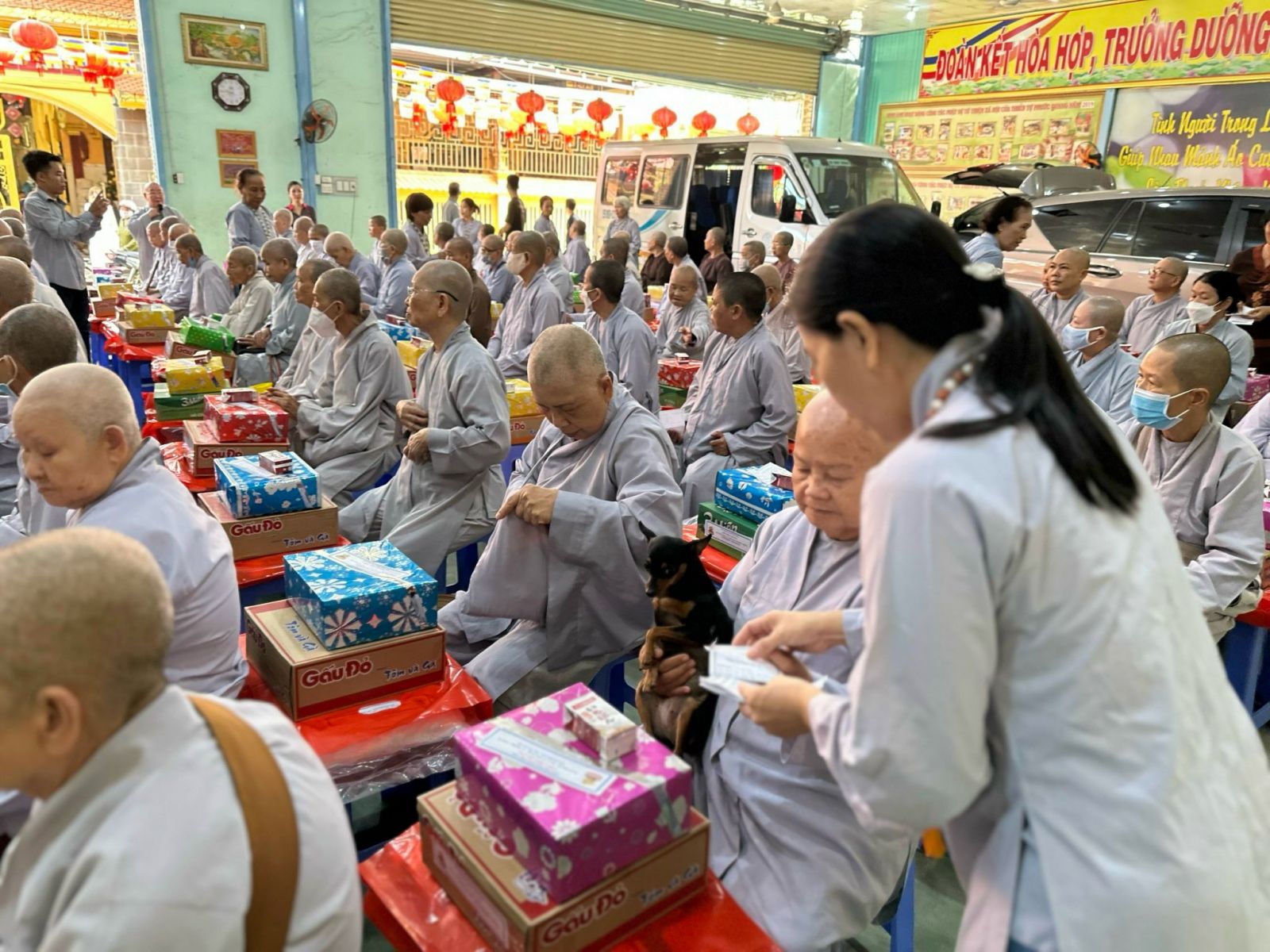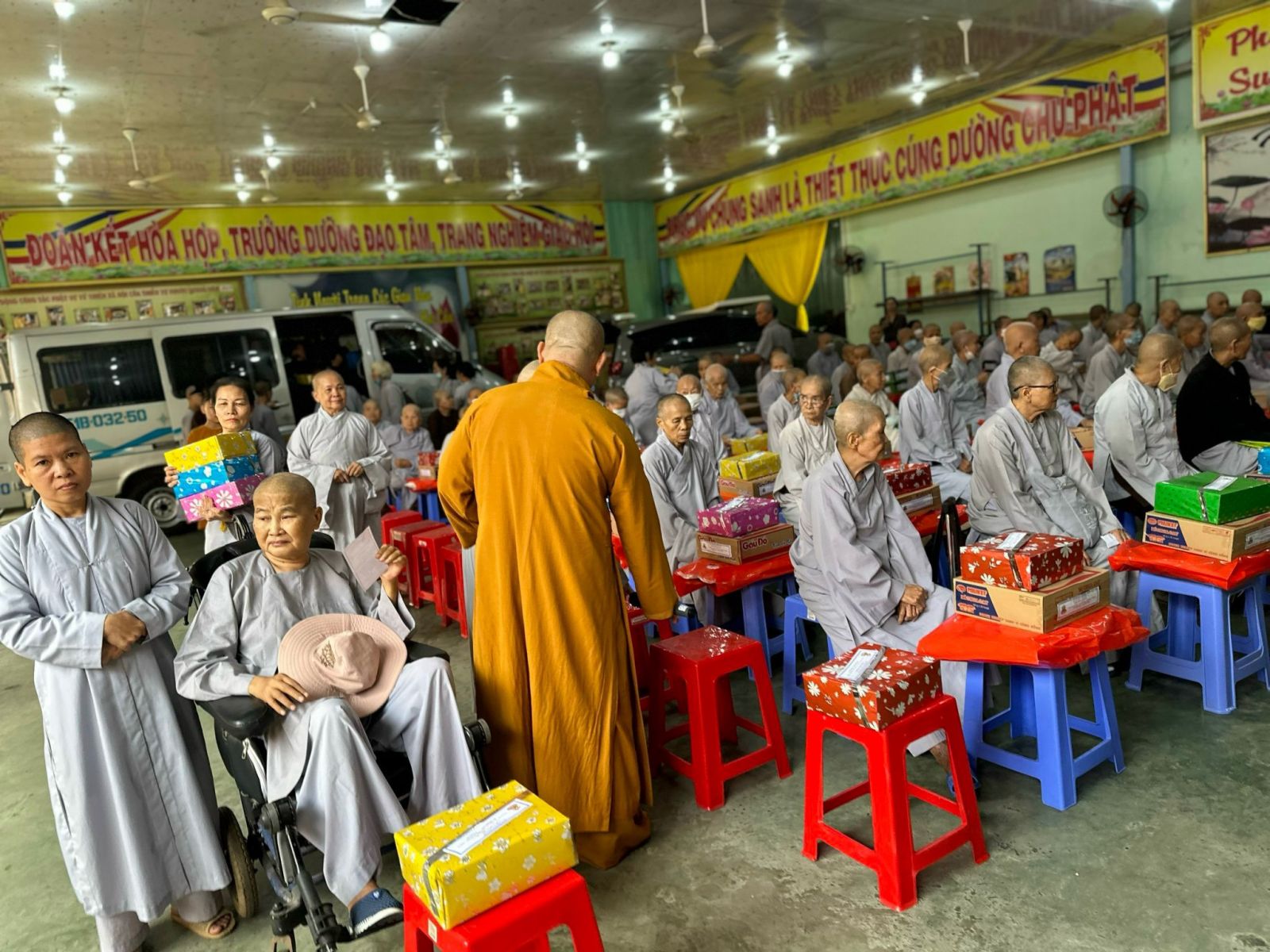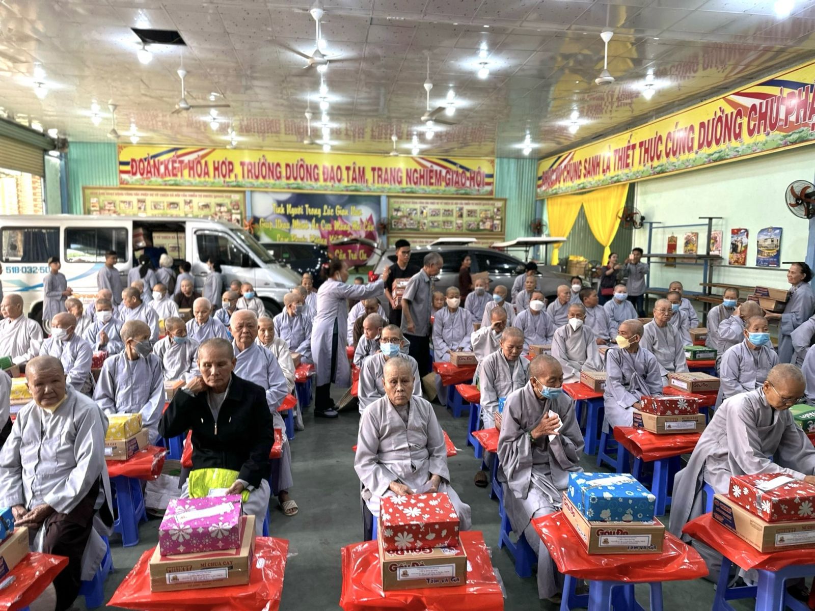 Đến cúng dường có ĐĐ. Thích Nguyên Thông – Phó trưởng ban Thường trực ban Từ thiện xã Hội GHPGVN tỉnh Đồng Nai, Phó ban kiêm Chánh Thư ký Ban Trị sự GHPGVN huyện Long Thành, Trụ trì Thiền tự Phước Quang; cùng chi hội từ thiện báo Giác Ngộ, quý mạnh thường quân, Phật tử xa gần đã về tại Thiền tự Phước Quang để dâng quà cúng dường chư Tăng Ni nhân ngày 20/11. Với tổng trị giá 75 triệu đồng.
