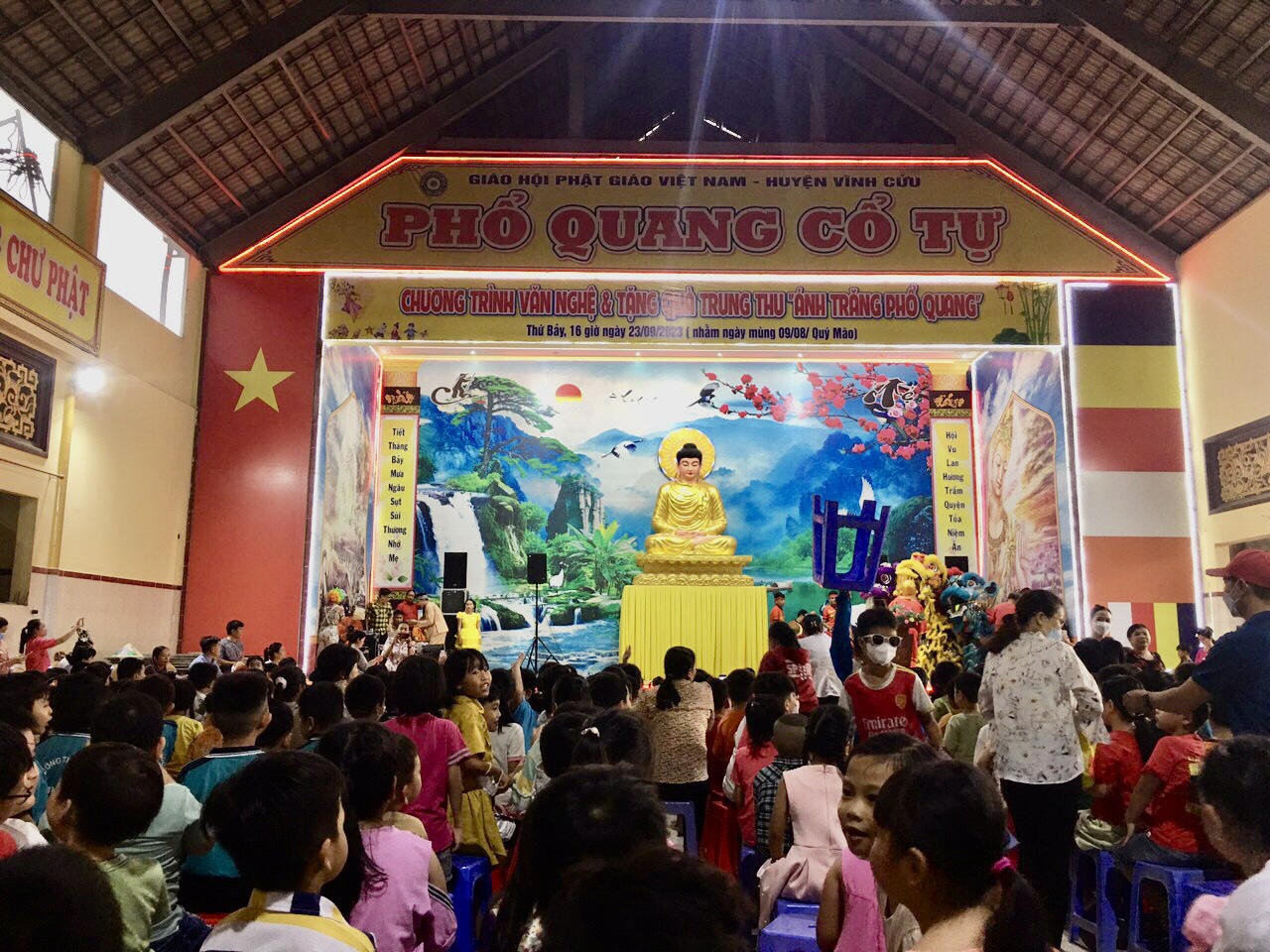 Chương trình Trung thu tại Chùa Phổ Quang diễn ra với hoạt động hấp dẫn và ý nghĩa, các em được nghe kể chuyện về sự tích đêm trung thu, được tham gia các trò chơi có thưởng hấp dẫn, không chỉ đem lại niềm vui, tiếng cười cho các em thiếu nhi mà còn mang tính giáo dục, động viên các em cố gắng học giỏi, chăm ngoan trong năm học mới.