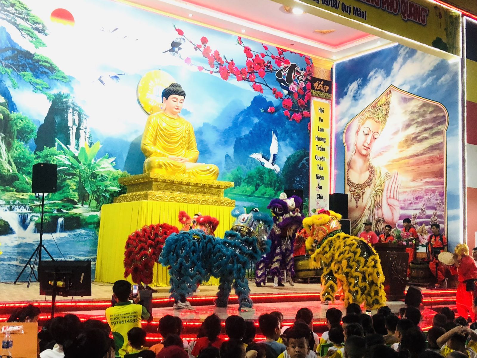 Đêm hội Trung thu lần này tại Chùa Phổ Quang với sự tham dự của hơn 1000 cháu thiếu nhi, phụ huynh và các thầy cô giáo.