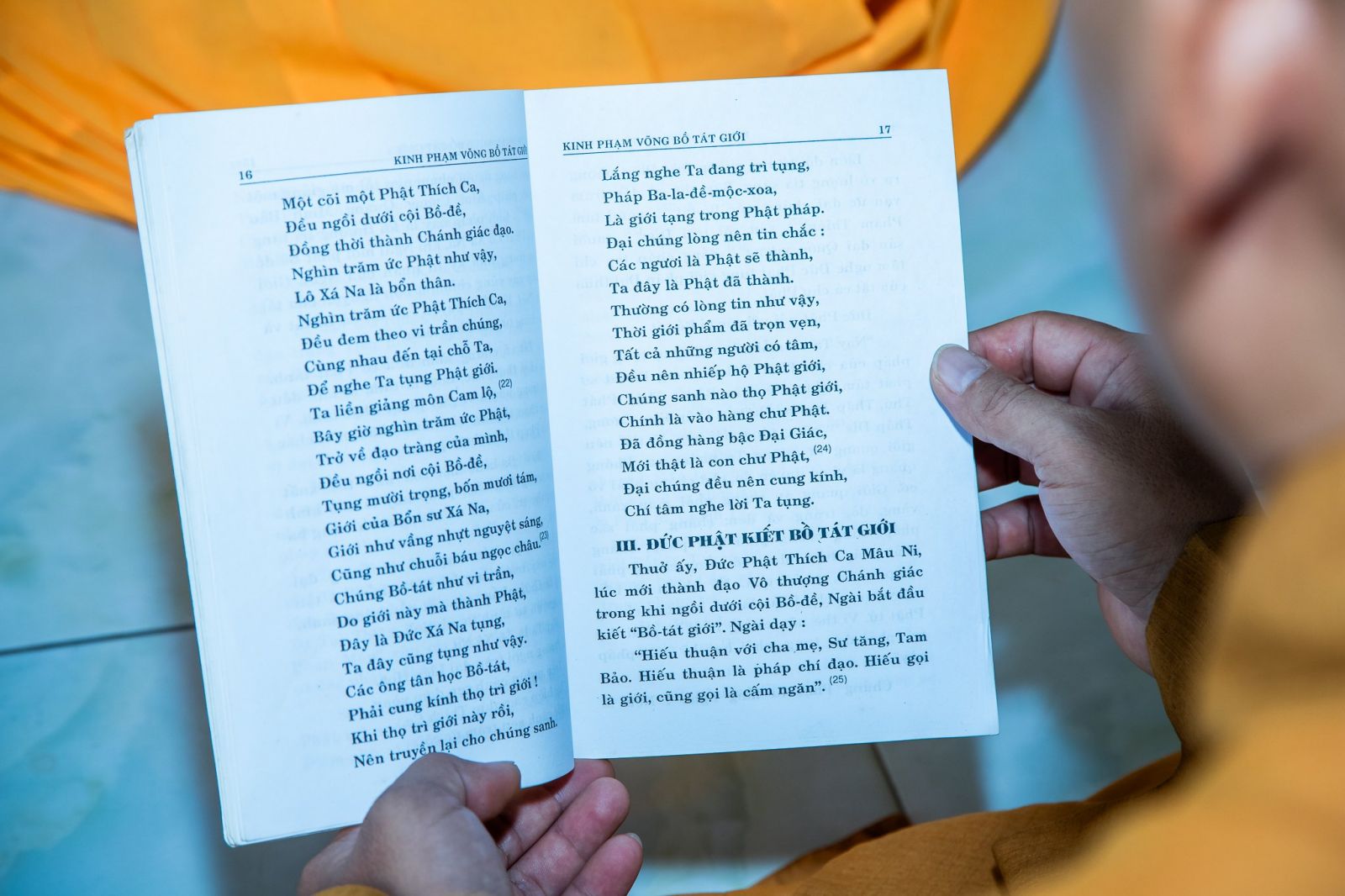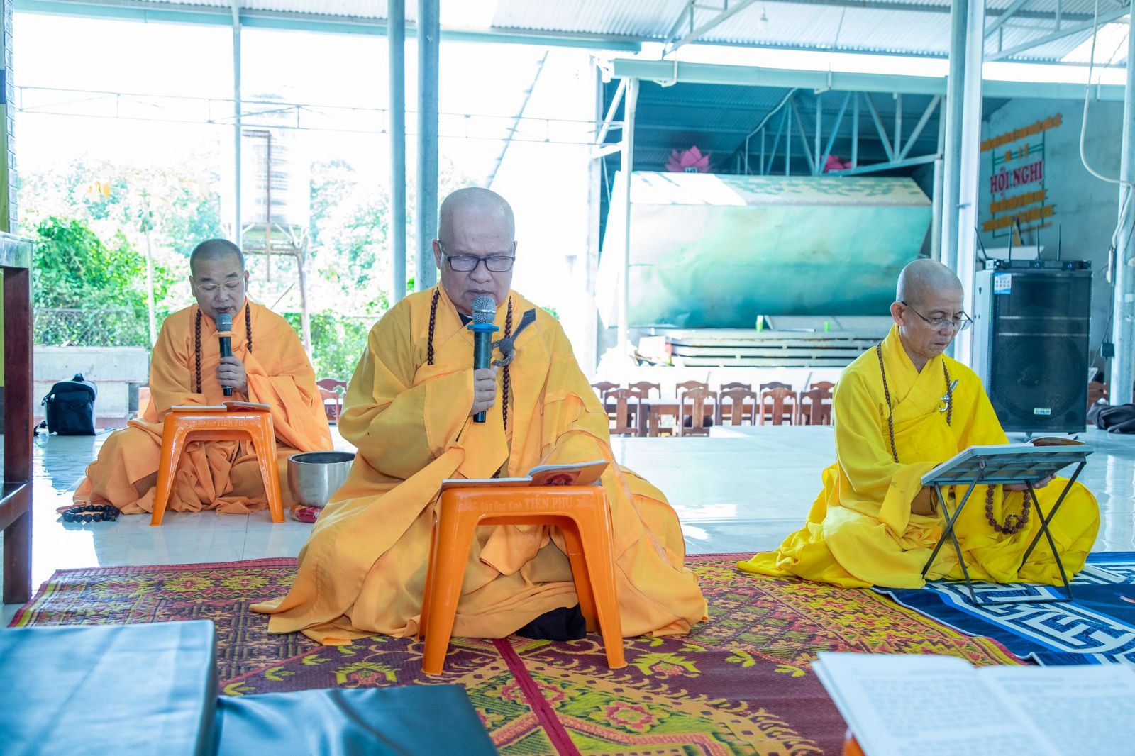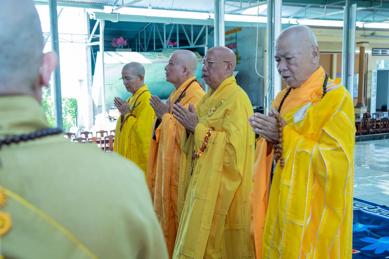 Vào lúc 08h00’ sáng tại Chánh điện Văn phòng Ban Trị sự, chư Tôn Hòa thượng Ban chứng minh niêm hương bạch Phật; toàn thể đại chúng thành kính đảnh lễ Tam bảo, thực hiện nghi thức Yết-ma Bố tát tụng giới.
