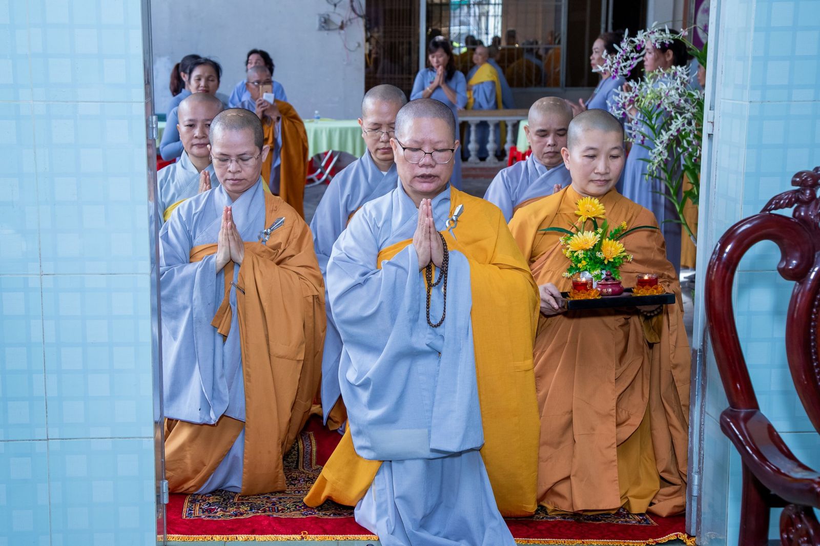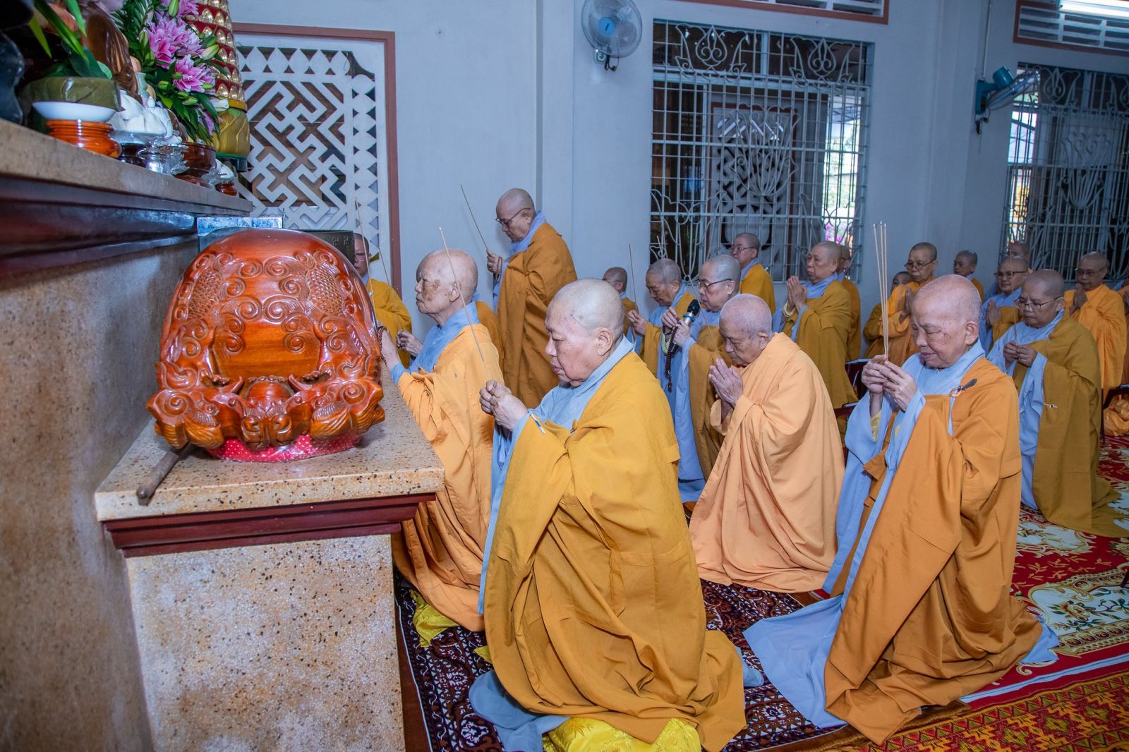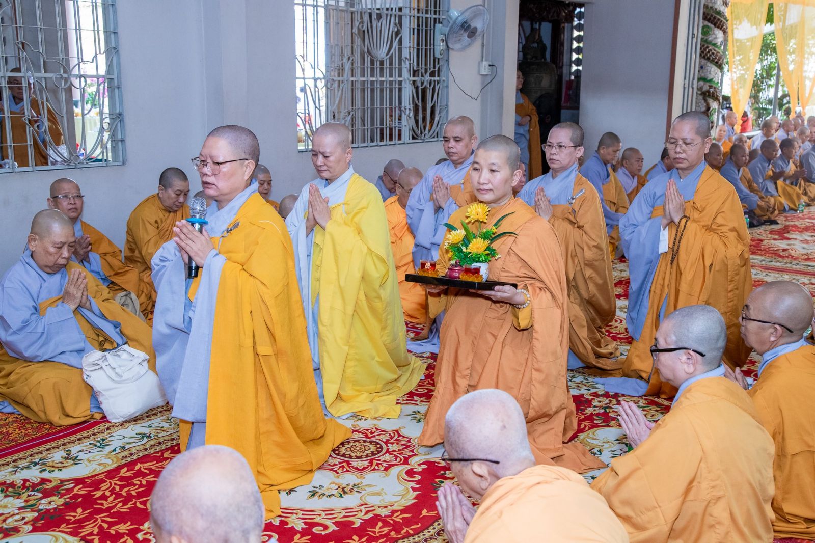 Ni sư Thích nữ Quảng Tiên – Chánh Thư ký Phân ban Ni giới tỉnh đã tác bạch thông kiểm số chúng chư Ni đã trang nghiêm cử hành nghi thức Yết-ma, Bố-tát. Ni trưởng Thích nữ Như Dung đã thay mặt toàn thể chư Tôn đức Ni thuyết giới Tỳ-kheo Ni giới và Phạm võng Bồ-tát giới.