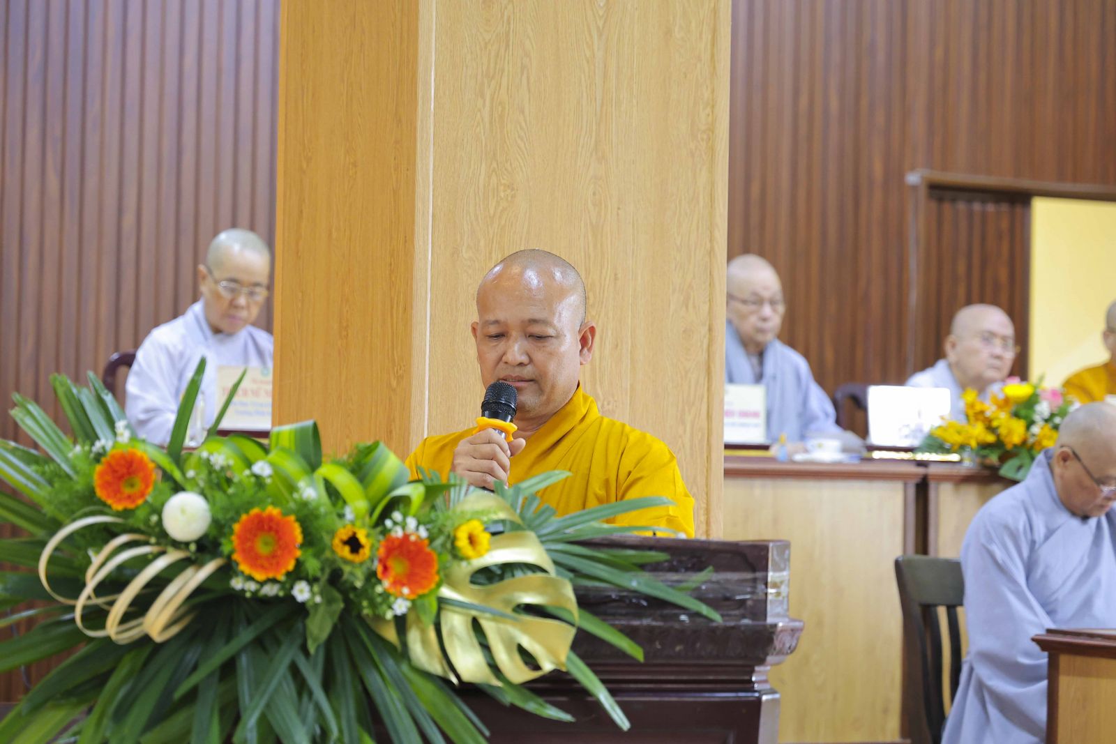 Tại buổi lễ, ĐĐ. Thích Đạt ma Đức Long đã thay mặt Ban Thư ký, Văn phòng Ban Trị sự Phật giáo tỉnh báo cáo tổng kết công tác tổ chức An cư Kiết hạ PL. 2569
