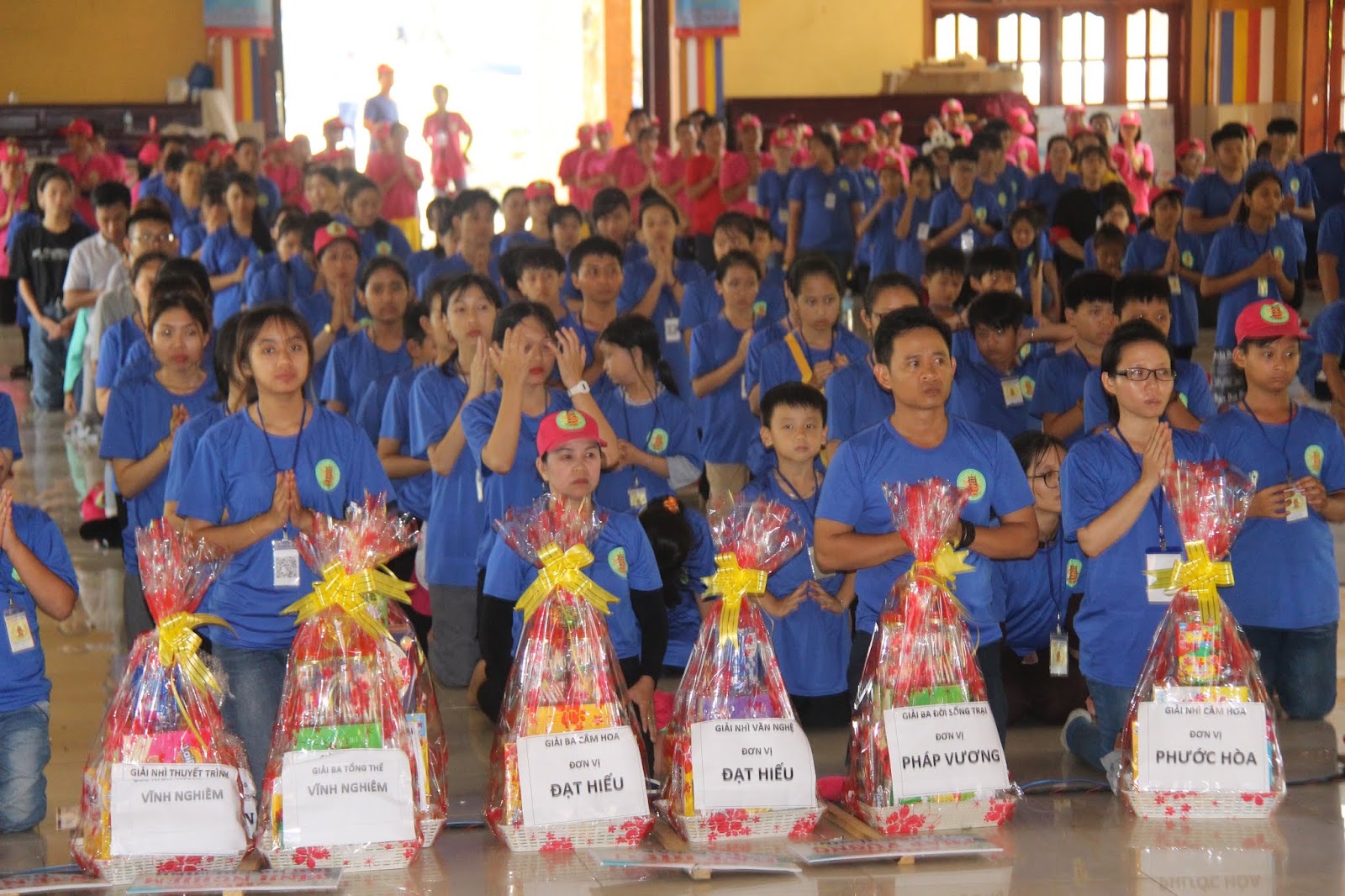Sau đó là phần công bố các đội đoạt giải trong 4 ngày trại: giải nhất văn nghệ thuộc về chùa Viên Giác, Thuyết trình thuộc về chùa Giác Ngạn, cắm hoa thuộc về chùa Viên Minh, Đời sống trại thuộc về chùa Vĩnh Nghiêm, thi rung chuông chùa thuộc về chùa Viên Giác. Kết quả giải nhất toàn hội trại thuộc chùa Viên Giác, giải nhì chùa Phổ Minh và giải ba thuộc về chùa Vĩnh Nghiêm