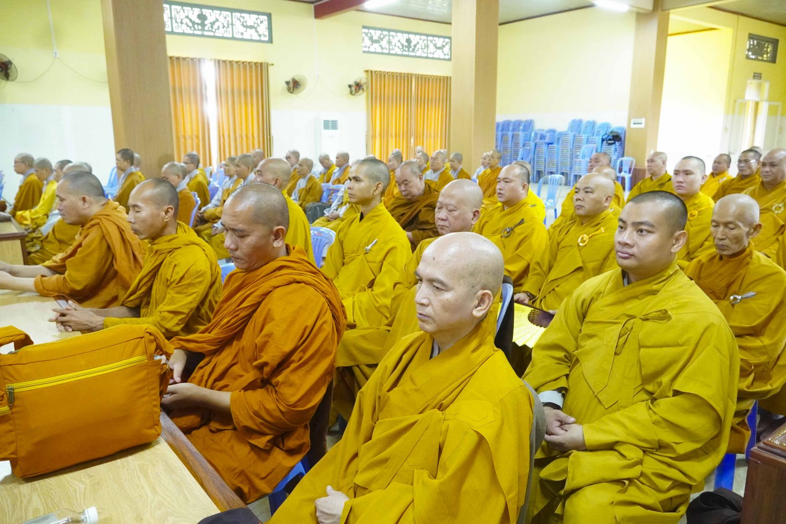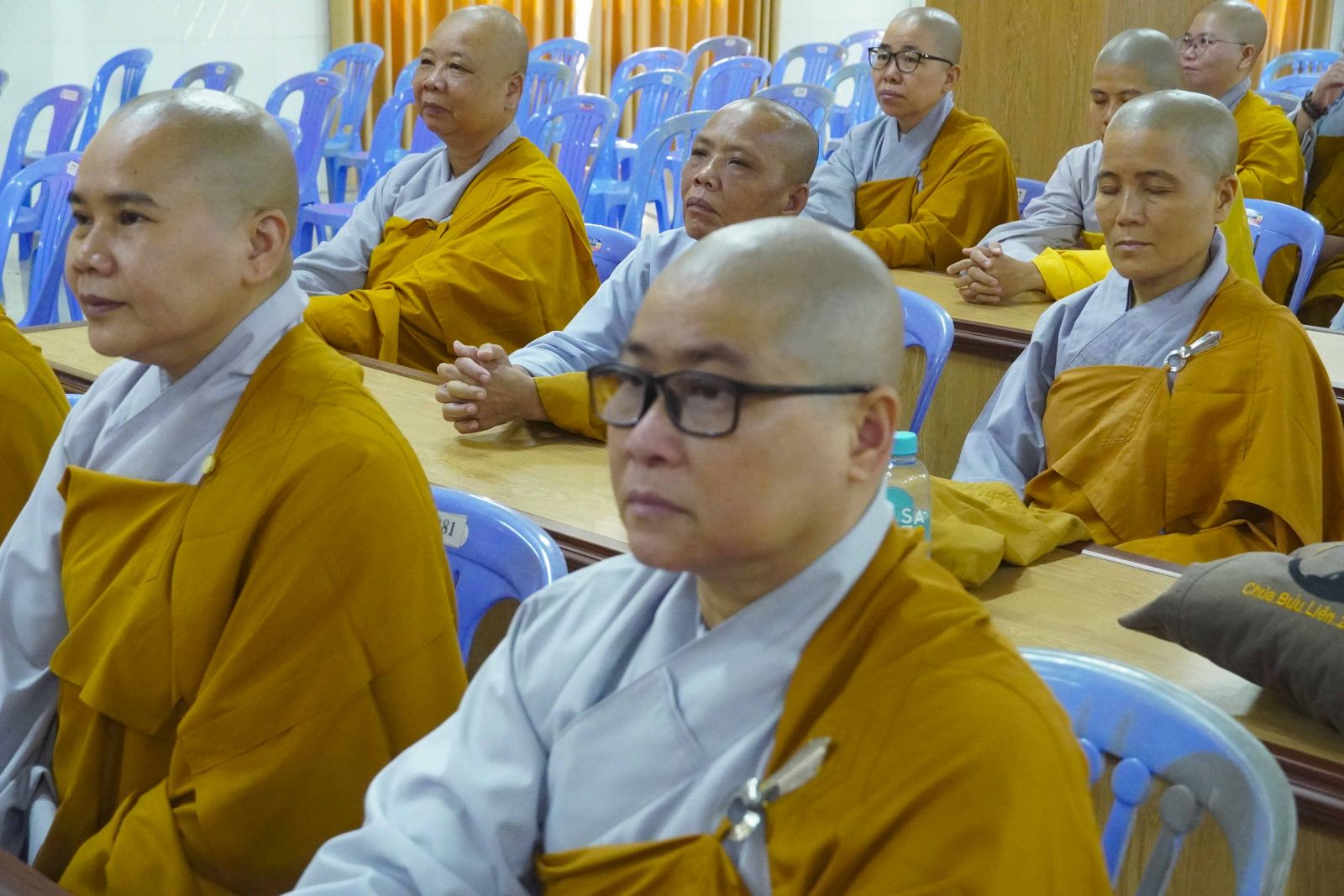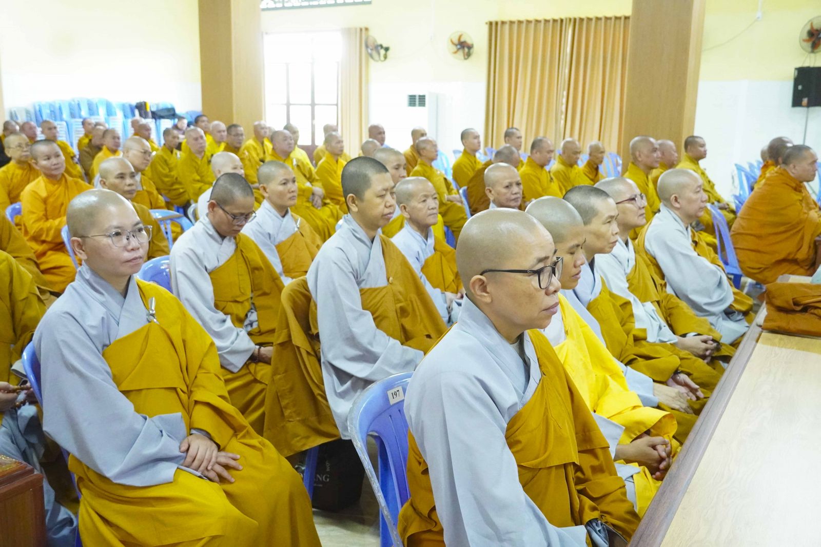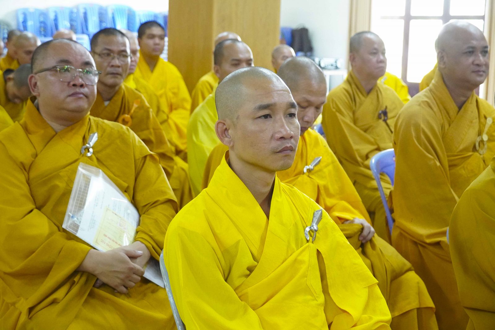 Dịp này, chư Tôn đức Ban Trị sự tỉnh Đồng Nai và Tăng Ni hành giả An cư đã được lắng nghe lời Khai thị của HT. Thích Thiện Nhơn – Phó Pháp chủ HĐCM, Chủ tịch HĐTS GHPGVN. Ngài dạy rằng: Khóa Huân tu An cư Kiết hạ có ý nghĩa giúp cho hành giả an định tu tập trong khoảng thời gian nhất định, đây là dịp để chúng ta trau dồi Giới đức. Cũng ví như một chiếc áo đặt vào tủ thơm, trong một khoảng thời gian nhất định, mùi hương sẽ thay đổi khác nhau. Áo để một ngày – hương thơm sẽ tỏa ra nhẹ nhàng, áo để nhiều ngày – hương thơm sẽ tỏa ra ngào ngạt, dù ở xa mùi hương đó vẫn quyện tỏa. Thì giới đức cũng vậy, chúng ta có tu tập qua thời gian lâu xa thì giới đức sẽ càng tăng trưởng. Dịp này, Hòa thượng cũng sách tấn Ban Trị sự tỉnh Đồng Nai và Tăng Ni hành giả An cư cố tu tập trau dồi Giới – Định – Tuệ là tấm gương sáng cho hàng hậu thế noi theo.
