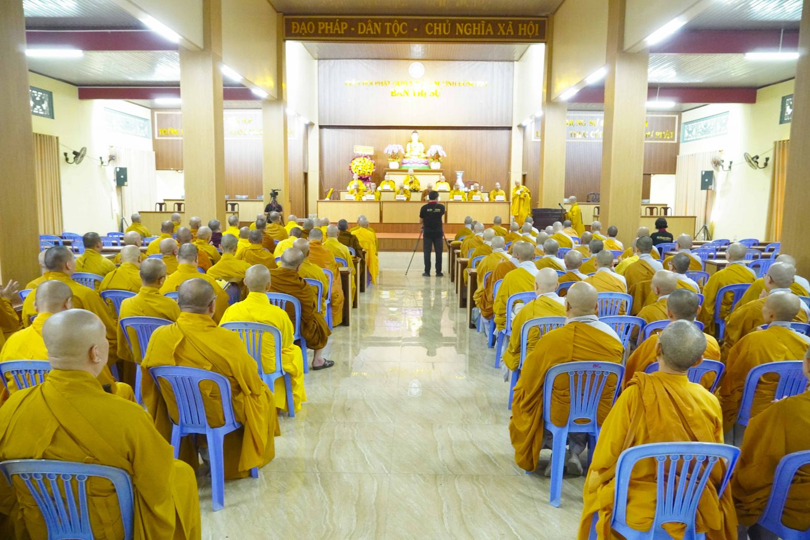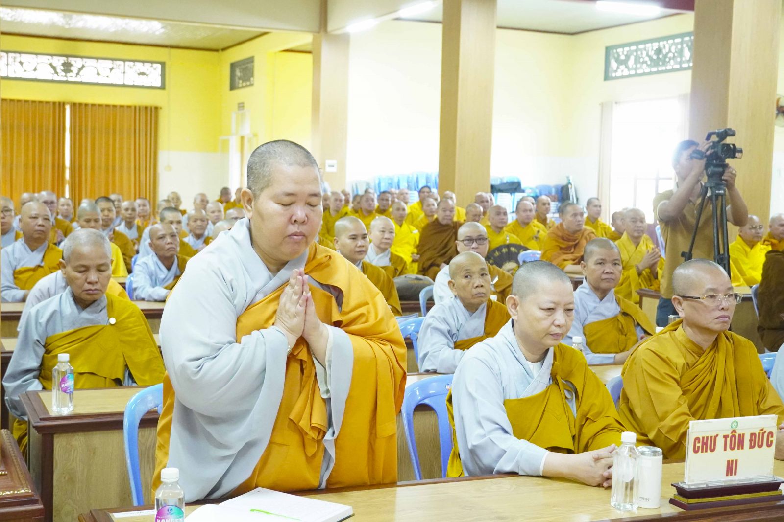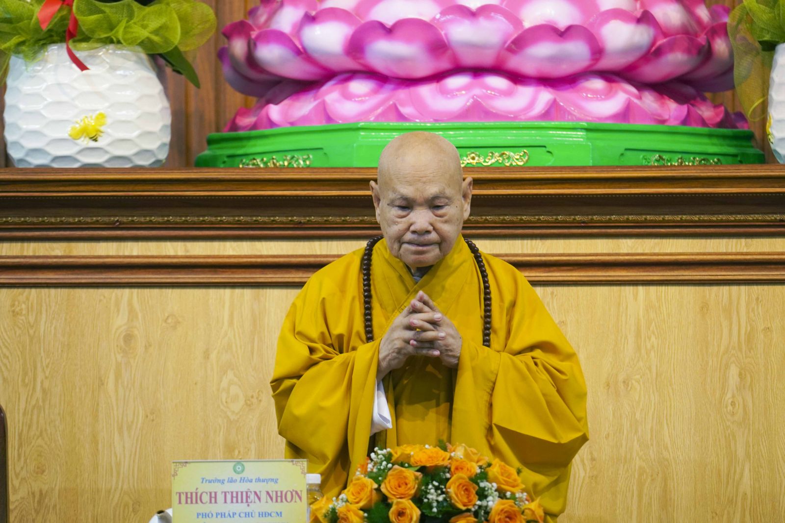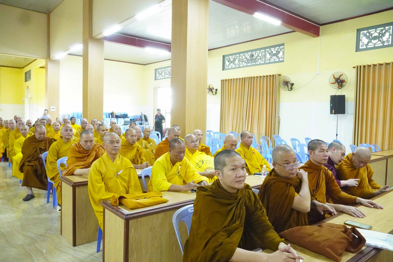 Dịp này, chư Tôn đức Ban Trị sự tỉnh Đồng Nai và Tăng Ni hành giả An cư đã được lắng nghe lời Khai thị của HT. Thích Thiện Nhơn – Phó Pháp chủ HĐCM, Chủ tịch HĐTS GHPGVN. Ngài dạy rằng: Khóa Huân tu An cư Kiết hạ có ý nghĩa giúp cho hành giả an định tu tập trong khoảng thời gian nhất định, đây là dịp để chúng ta trau dồi Giới đức. Cũng ví như một chiếc áo đặt vào tủ thơm, trong một khoảng thời gian nhất định, mùi hương sẽ thay đổi khác nhau. Áo để một ngày – hương thơm sẽ tỏa ra nhẹ nhàng, áo để nhiều ngày – hương thơm sẽ tỏa ra ngào ngạt, dù ở xa mùi hương đó vẫn quyện tỏa. Thì giới đức cũng vậy, chúng ta có tu tập qua thời gian lâu xa thì giới đức sẽ càng tăng trưởng. Dịp này, Hòa thượng cũng sách tấn Ban Trị sự tỉnh Đồng Nai và Tăng Ni hành giả An cư cố tu tập trau dồi Giới – Định – Tuệ là tấm gương sáng cho hàng hậu thế noi theo.