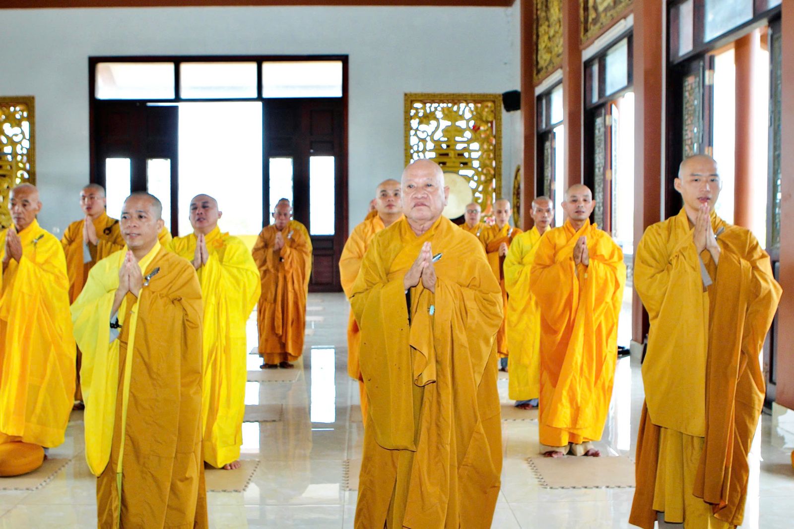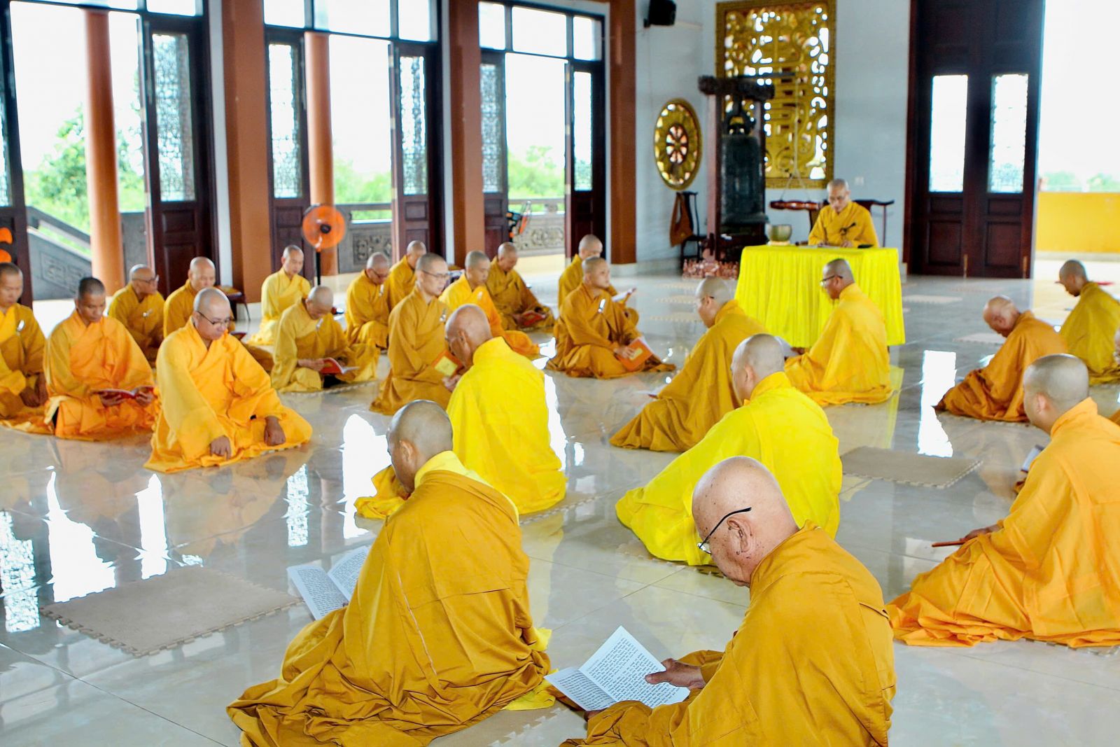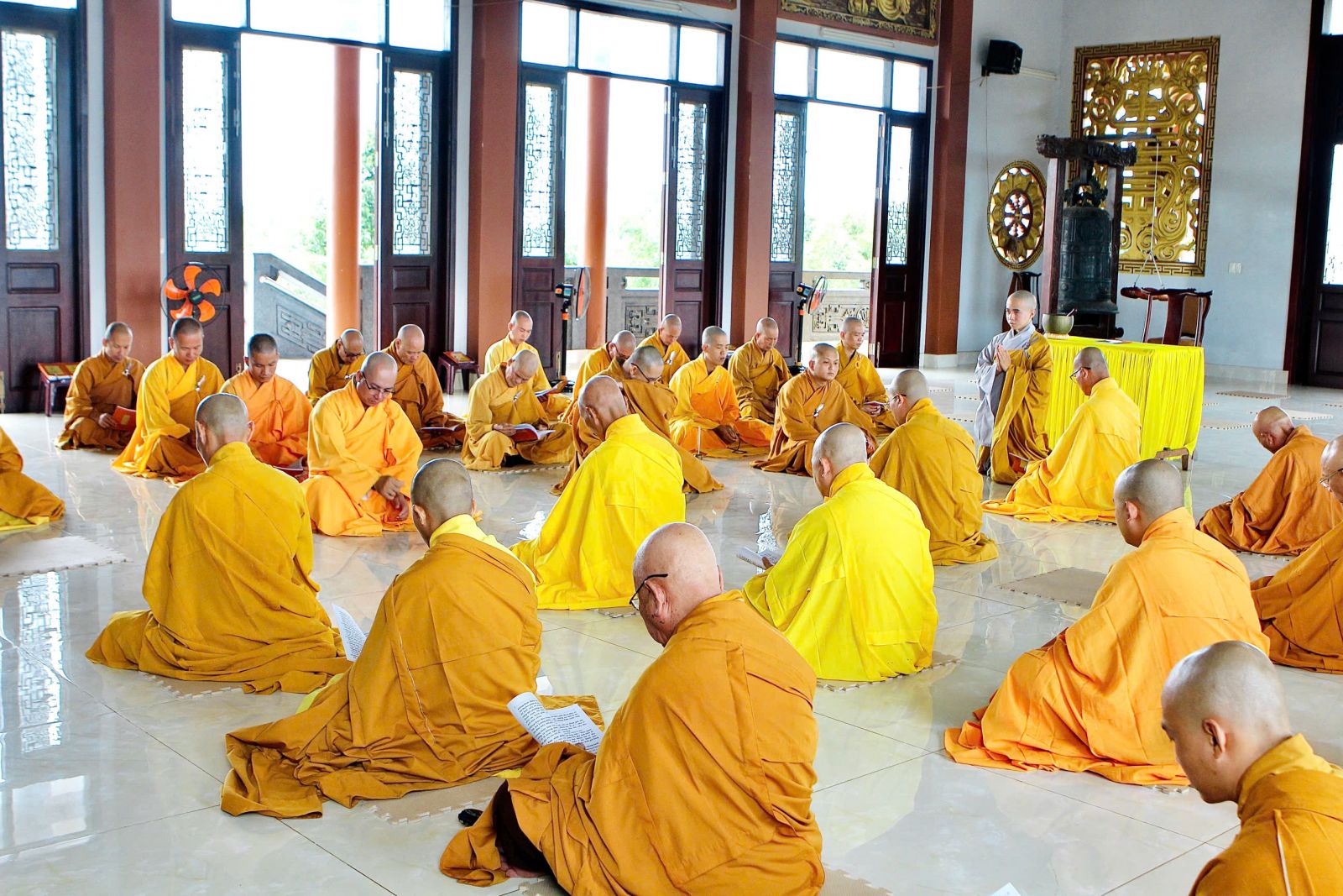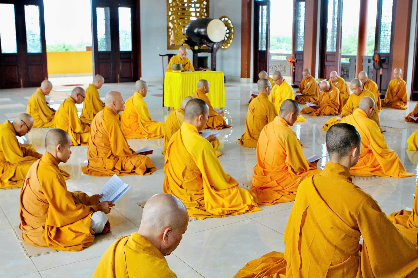 Sau buổi sinh hoạt Tăng sự, chư Tôn đức vân tập về đại hùng bảo điện đảnh lễ Tam bảo và tác pháp yết ma tụng giới.
