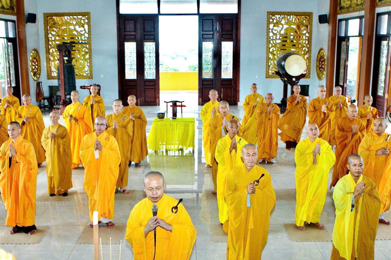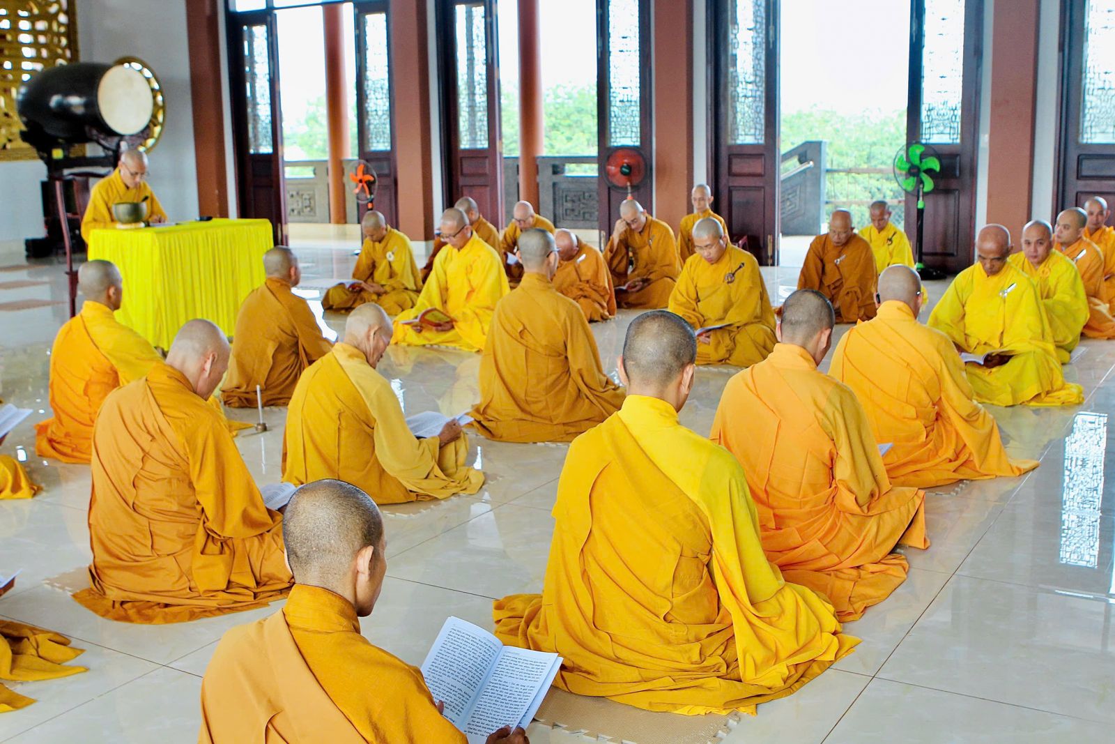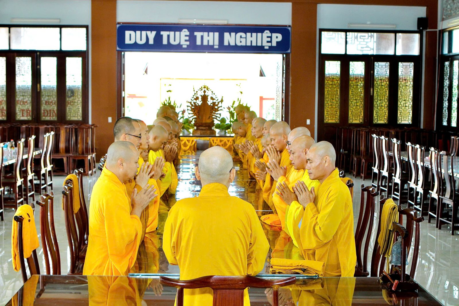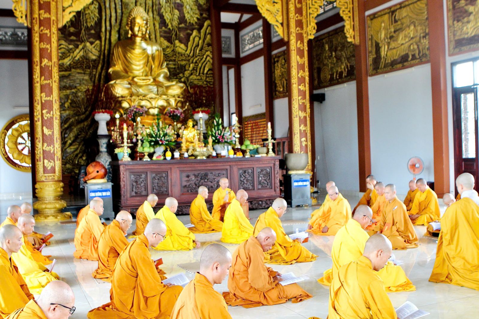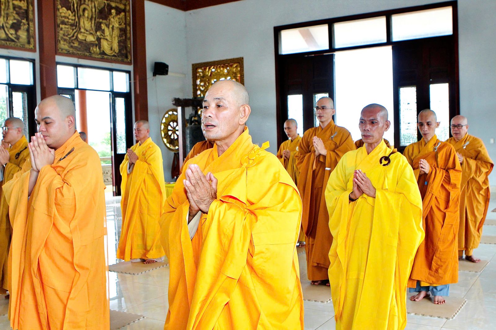 Sau buổi sinh hoạt Tăng sự, chư Tôn đức vân tập về đại hùng bảo điện đảnh lễ Tam bảo và tác pháp yết ma tụng giới.