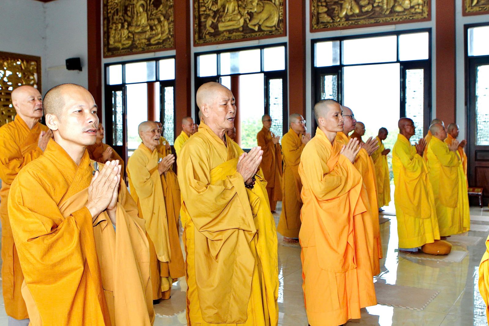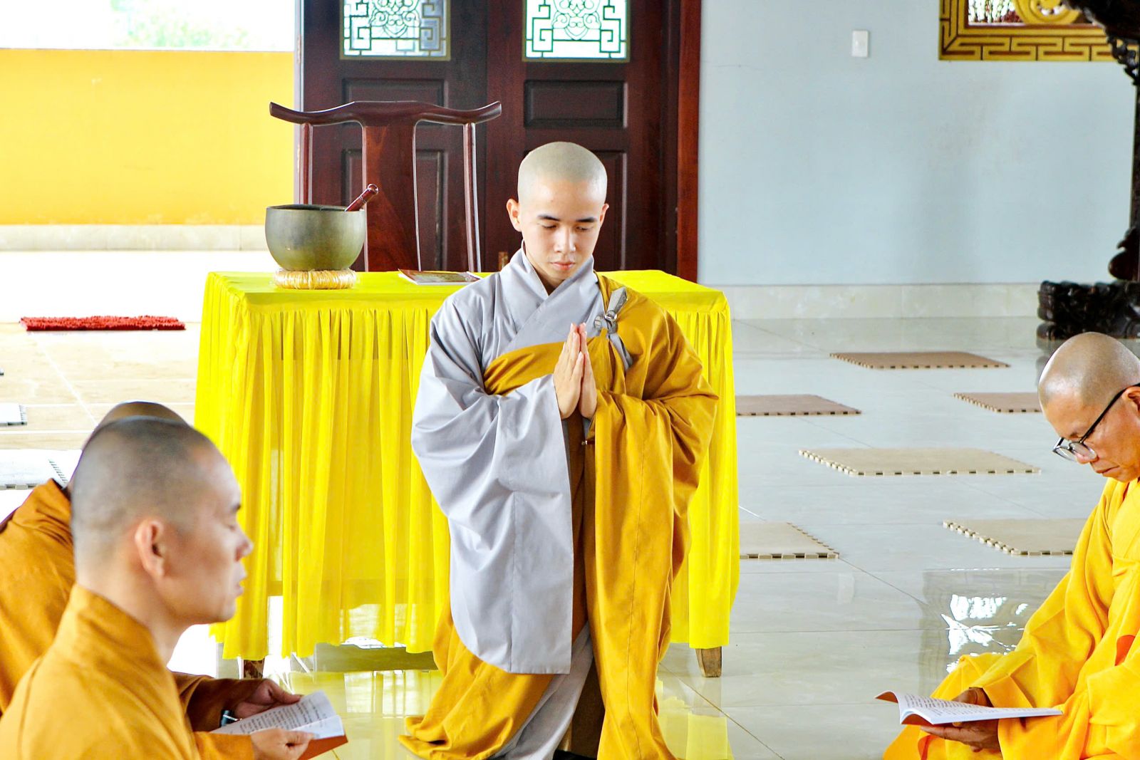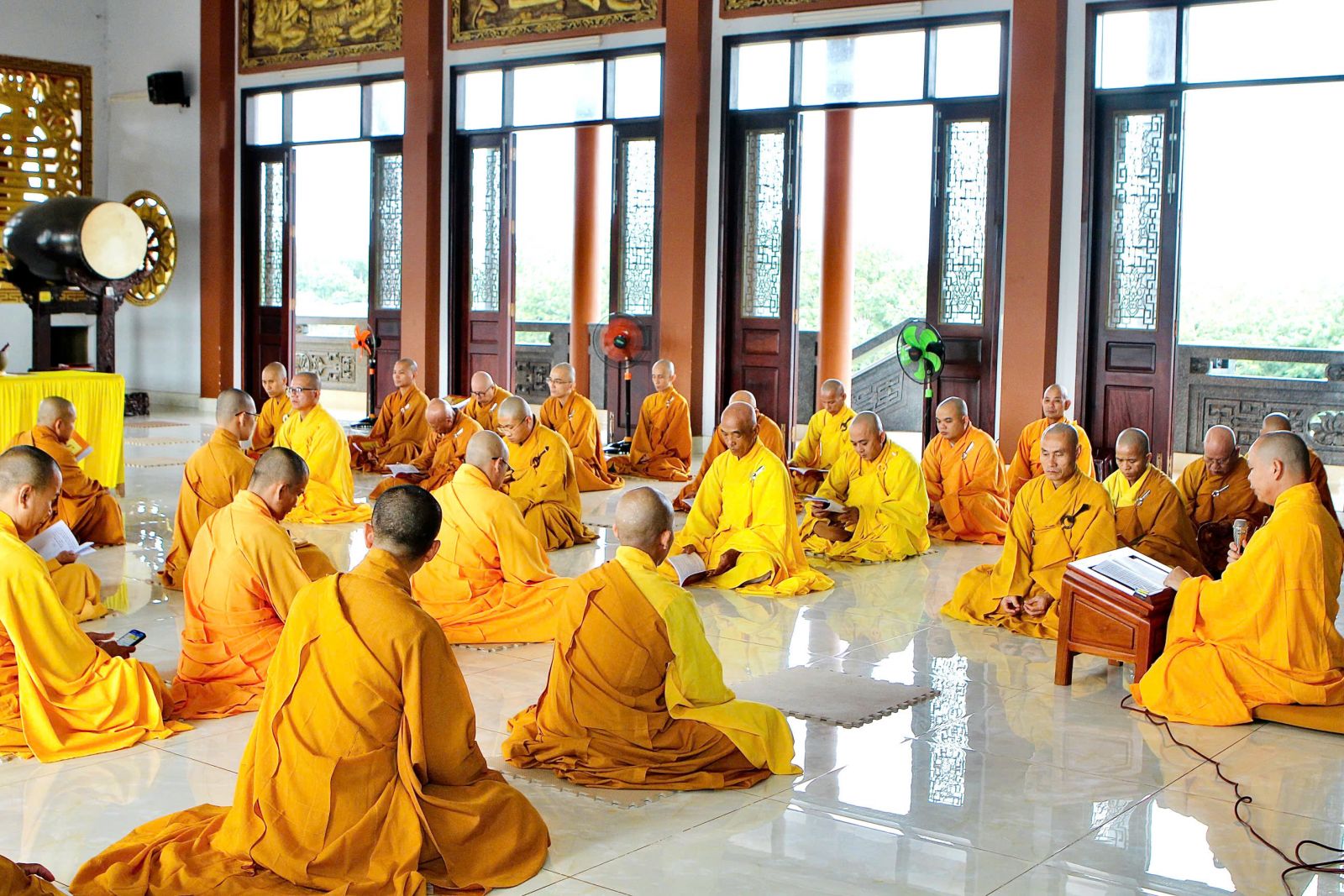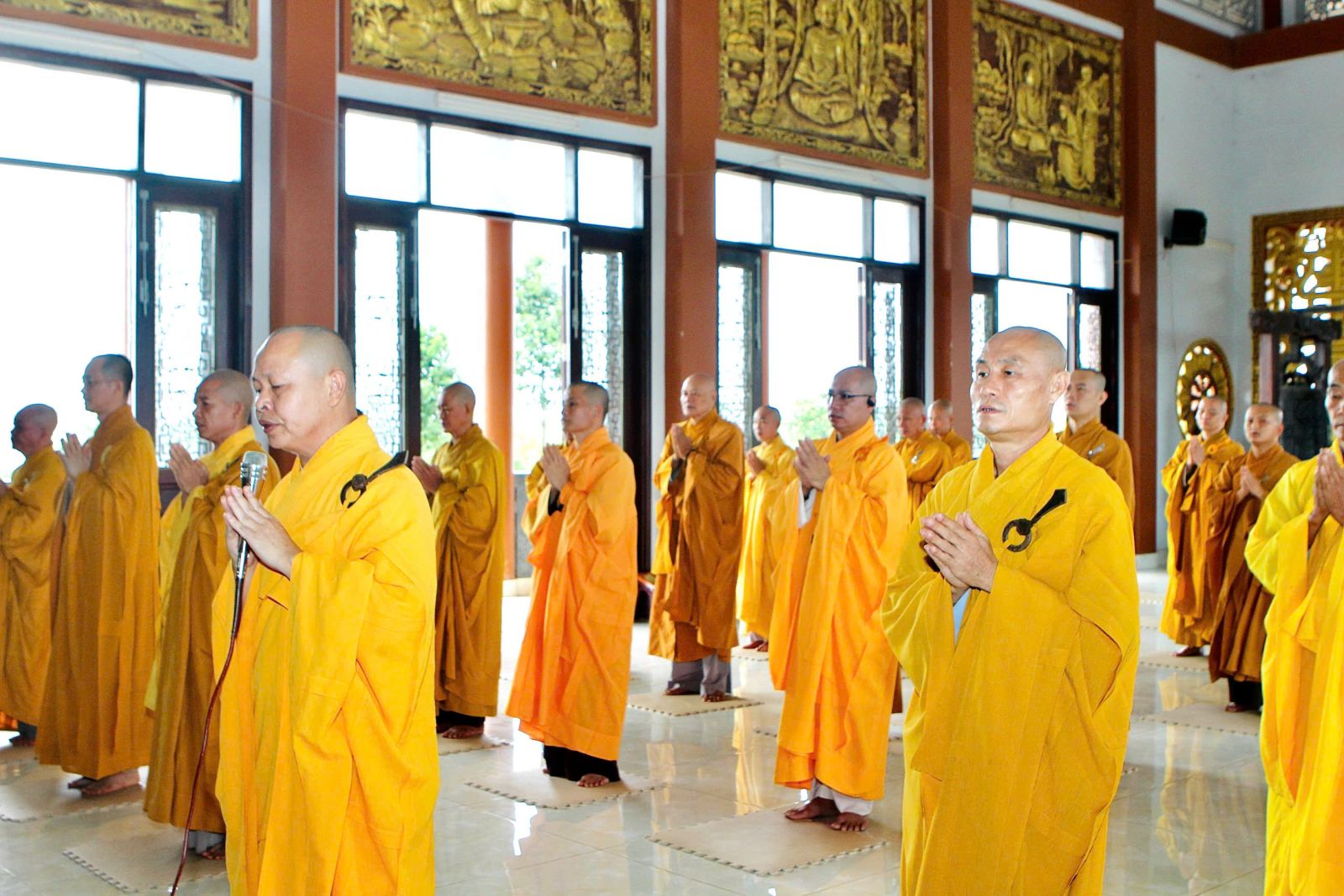 Sau buổi sinh hoạt Tăng sự, chư Tôn đức vân tập về đại hùng bảo điện đảnh lễ Tam bảo và tác pháp yết ma tụng giới.