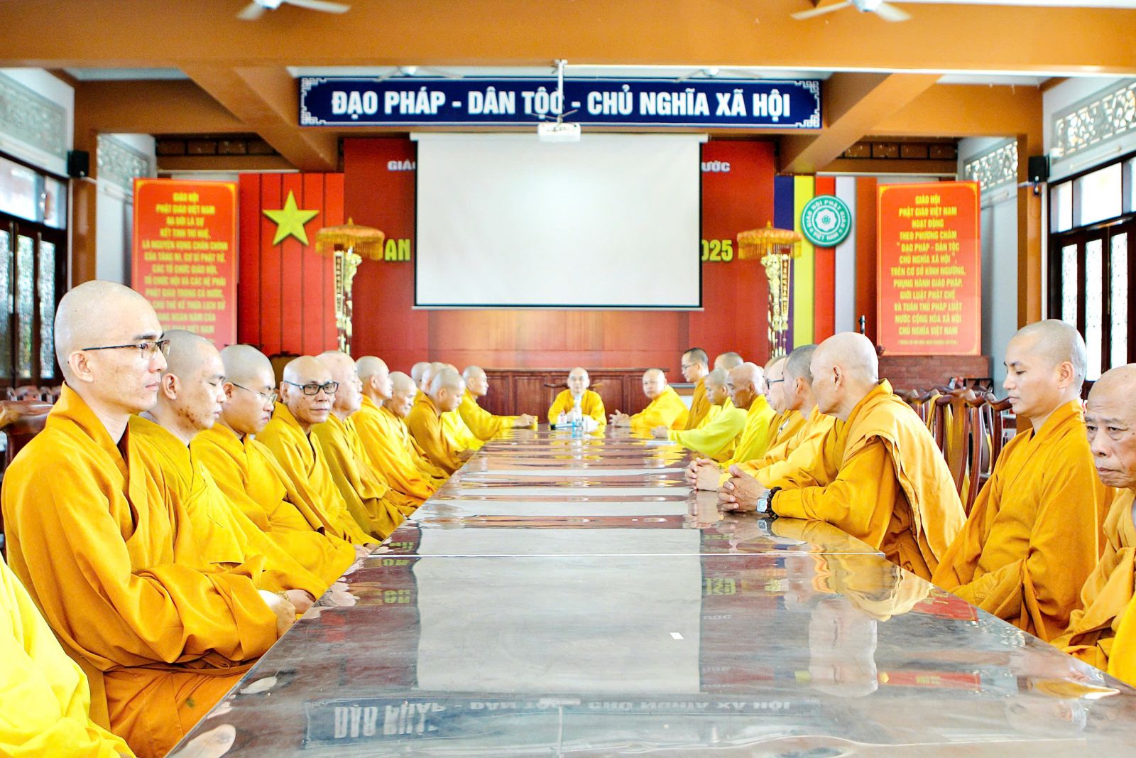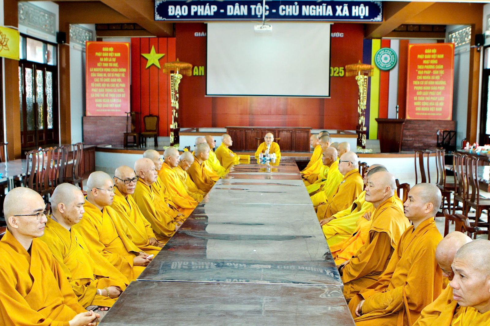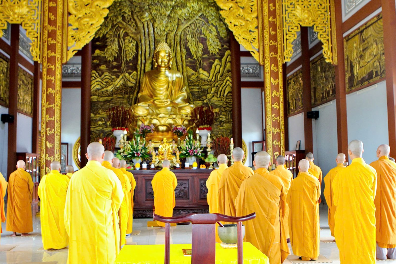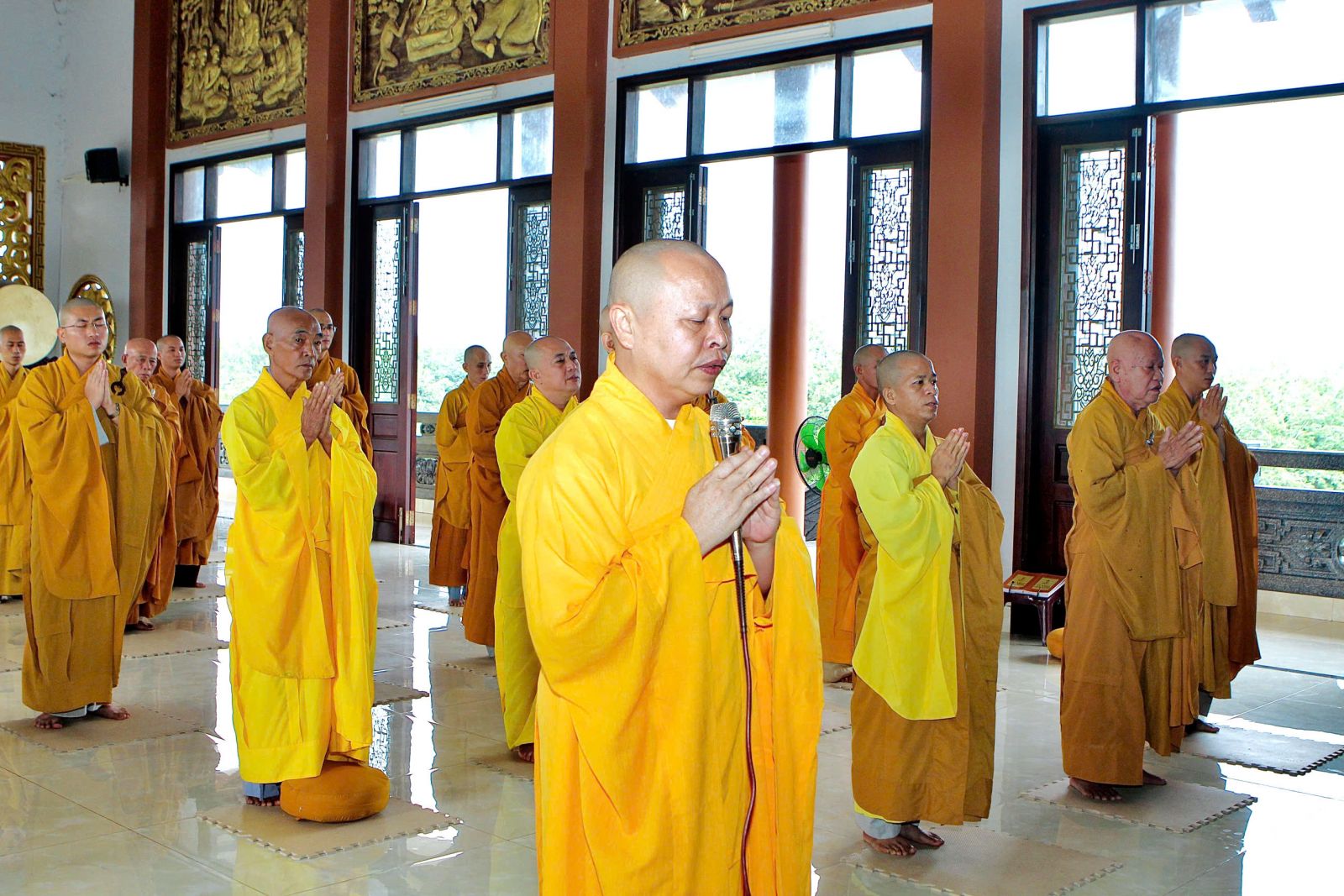 Sau buổi sinh hoạt Tăng sự, chư Tôn đức vân tập về đại hùng bảo điện đảnh lễ Tam bảo và tác pháp yết ma tụng giới.