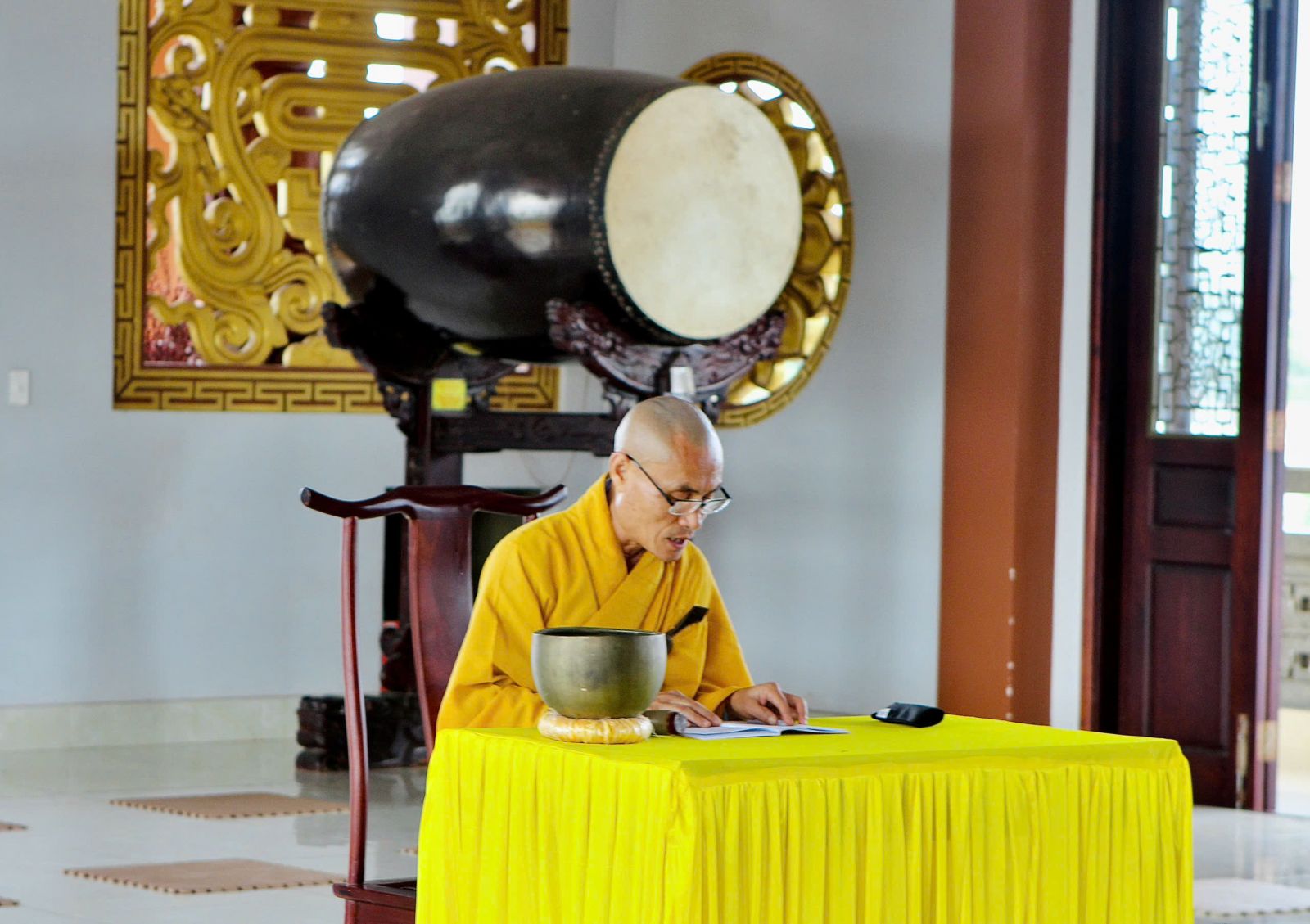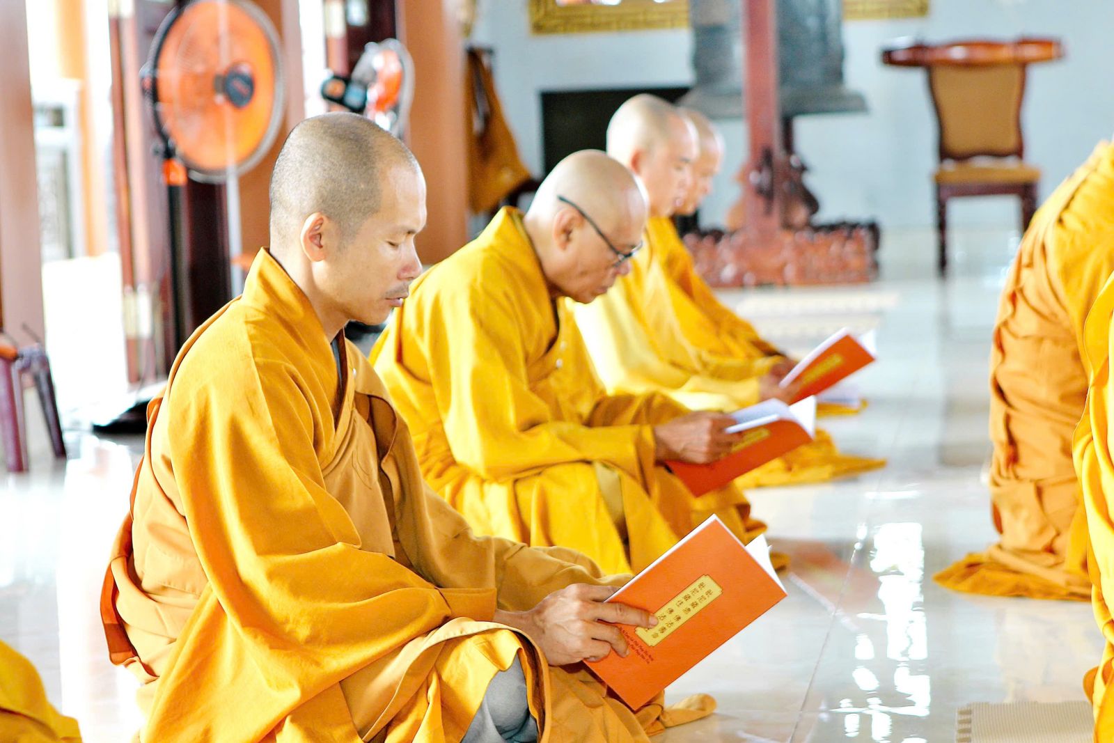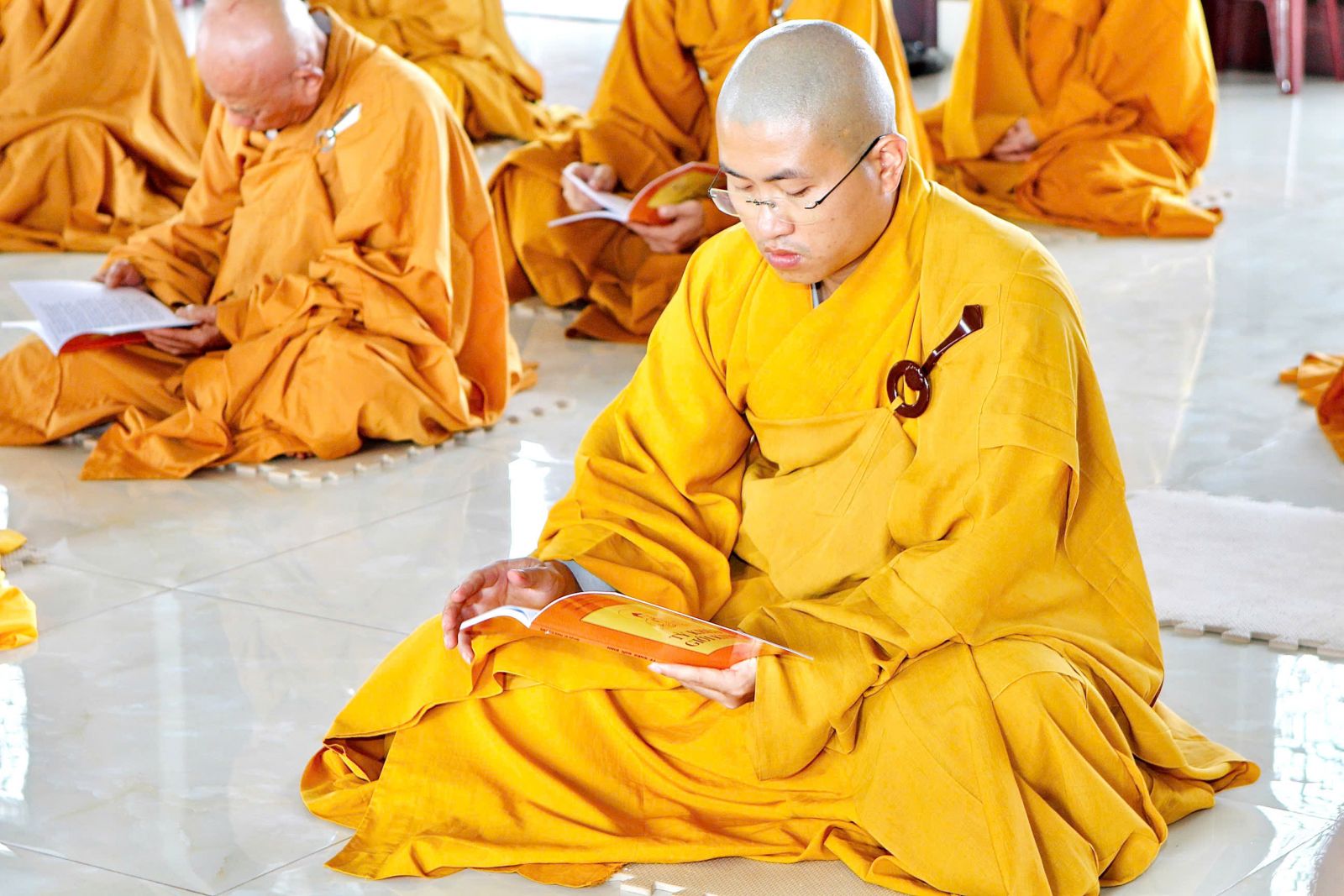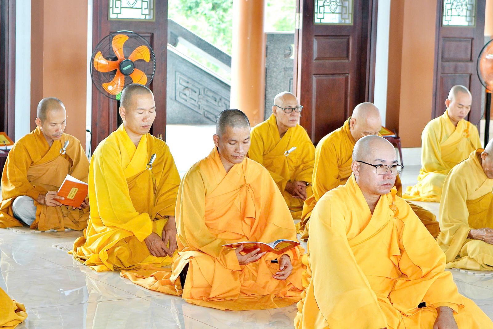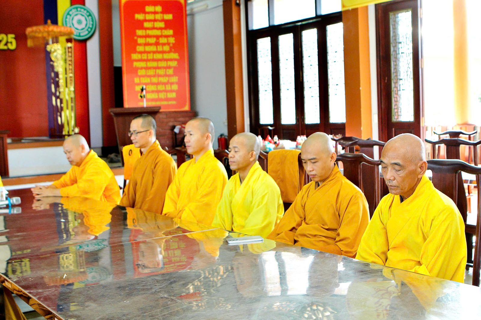Sau buổi sinh hoạt Tăng sự, chư Tôn đức vân tập về đại hùng bảo điện đảnh lễ Tam bảo và tác pháp yết ma tụng giới.