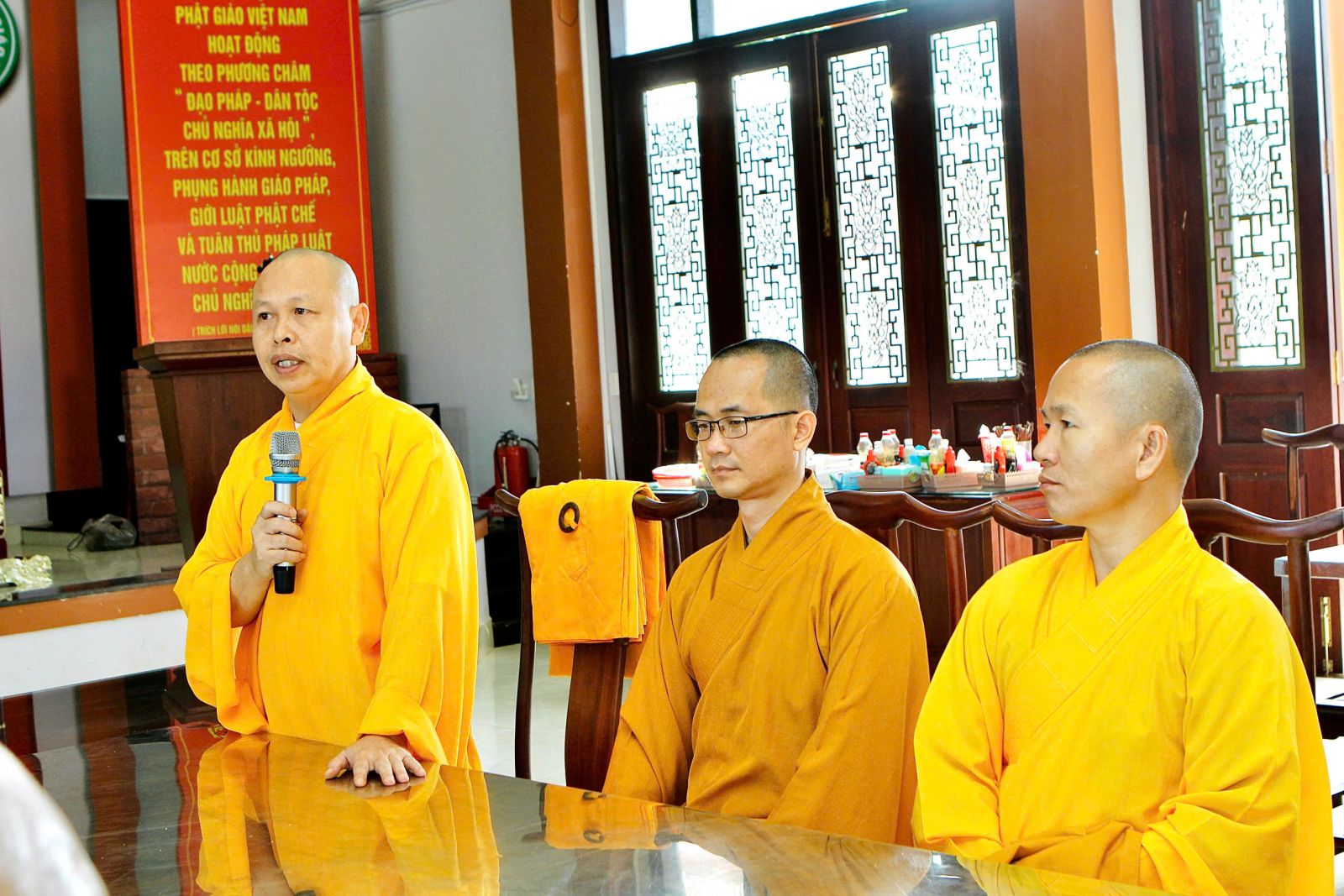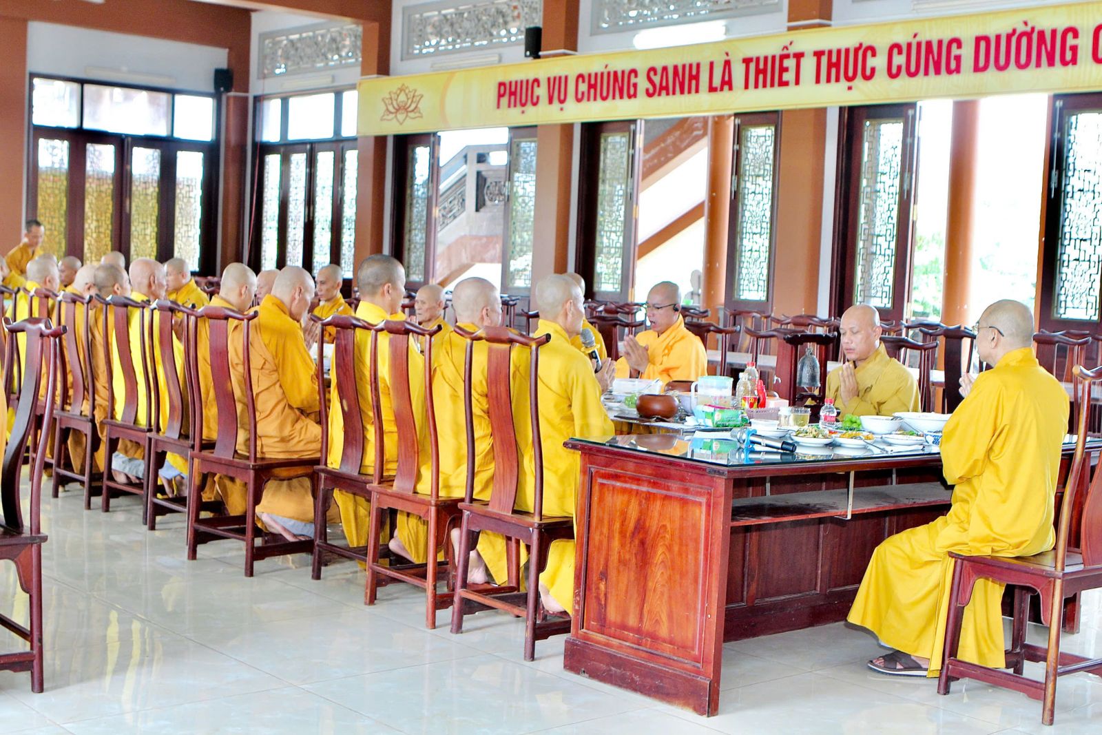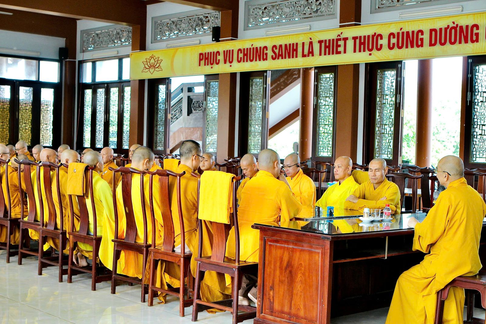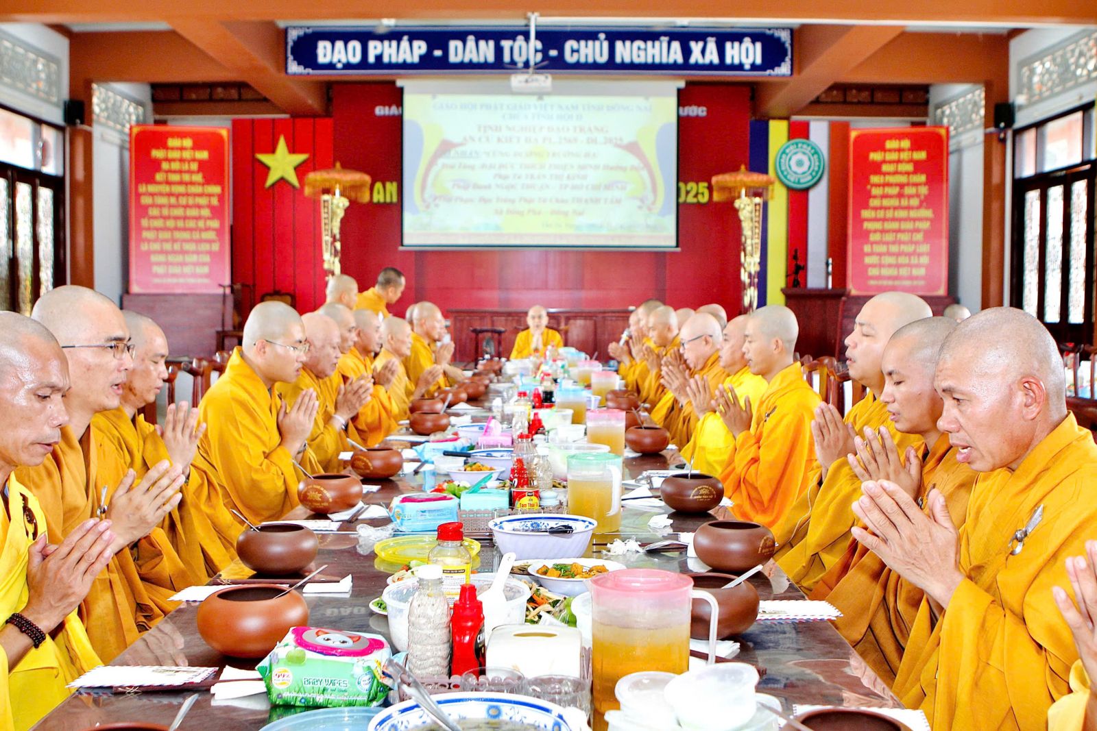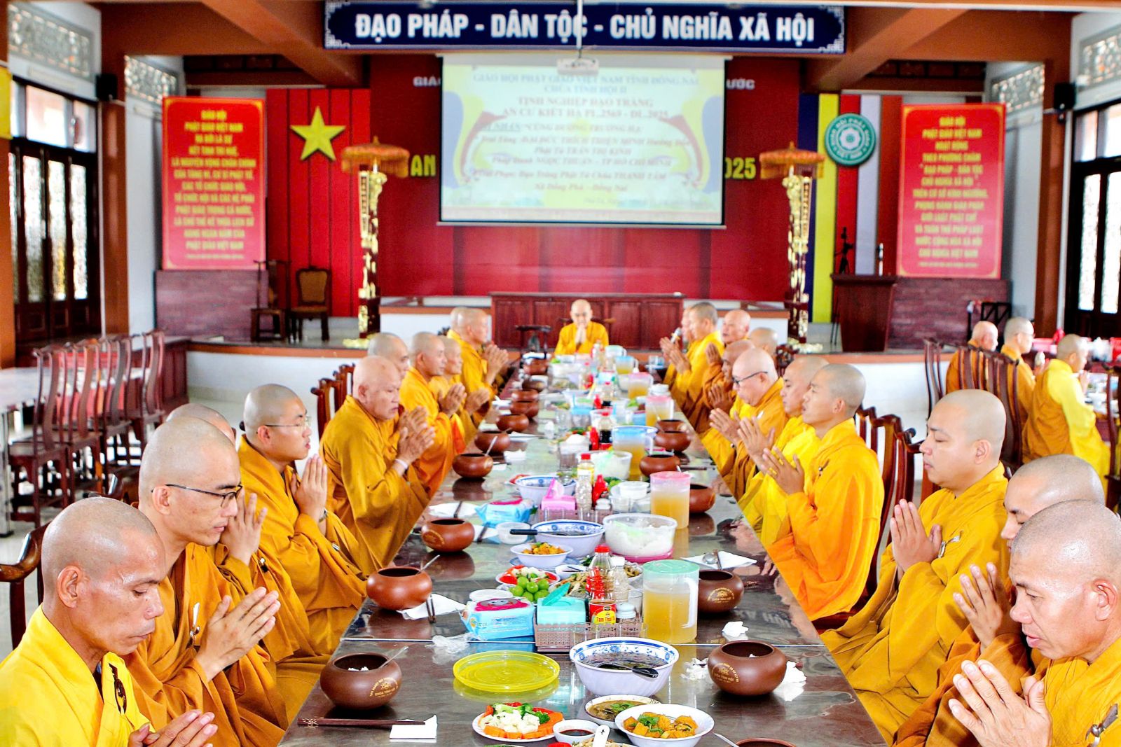 Trong kỳ Bố-tát này, đại chúng cung cử Đại Đức Thích Tâm Thanh, phó trưởng ban thường trực ban Phật giáo Quốc tế tỉnh ĐN trùng tuyên Tỳ-kheo giới bổn.
