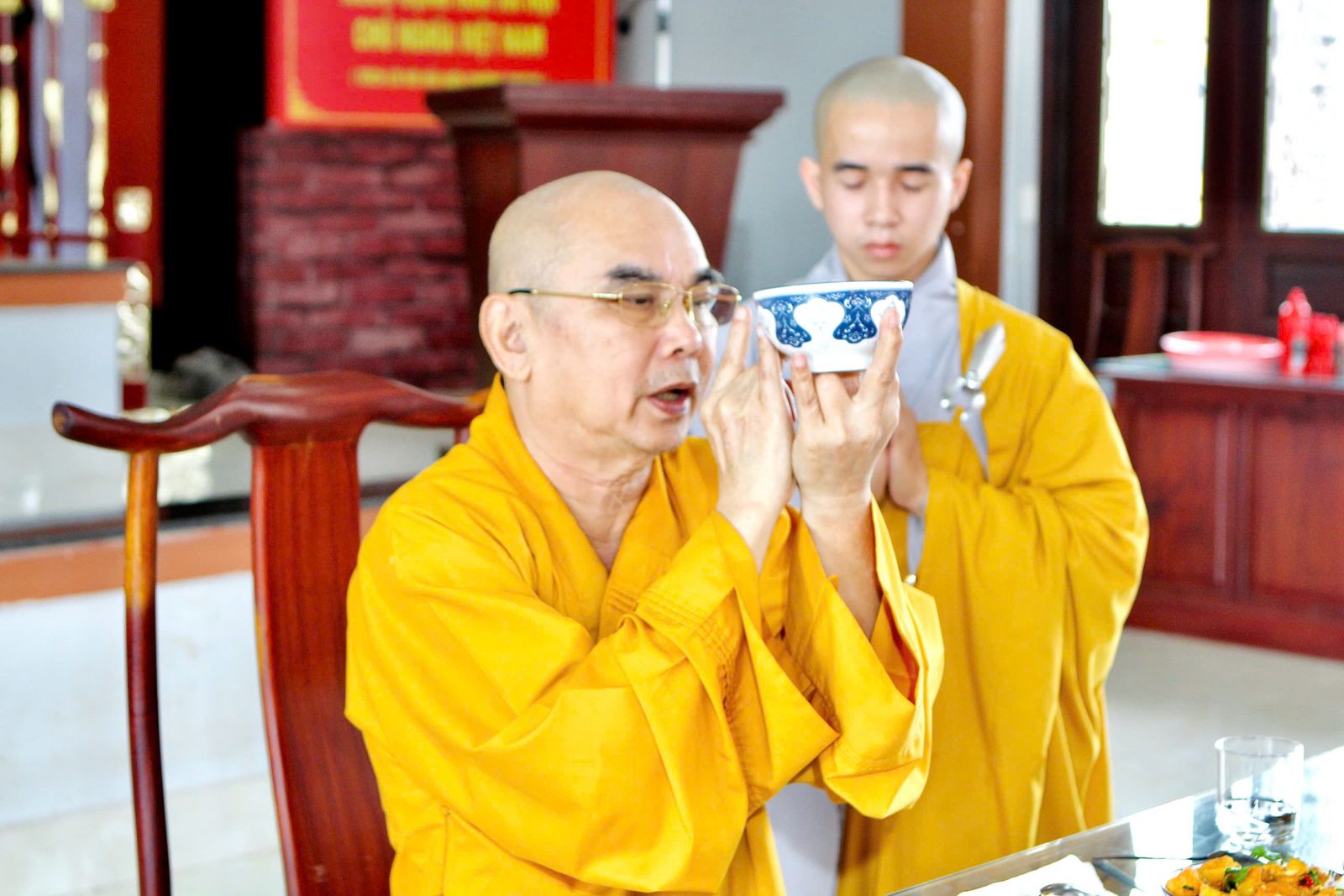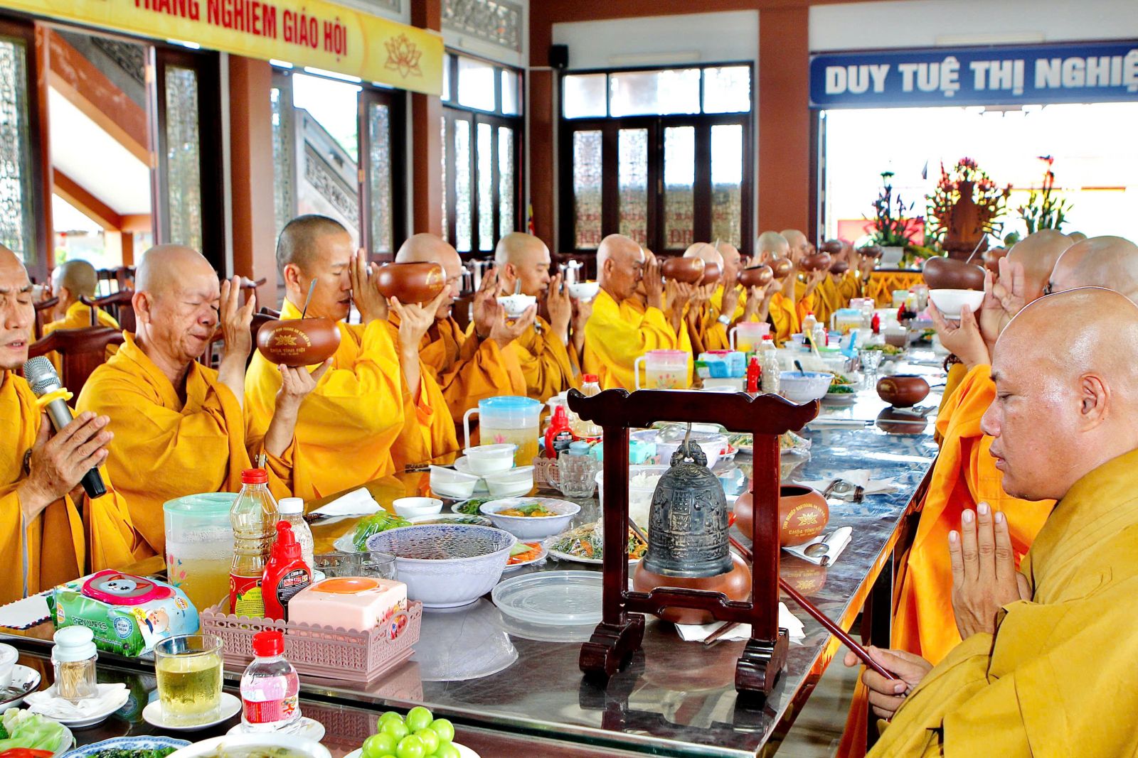 Kết thúc lễ bố tát, chư Tôn đức tác pháp quá đường trong sự thanh tịnh hỷ lạc.