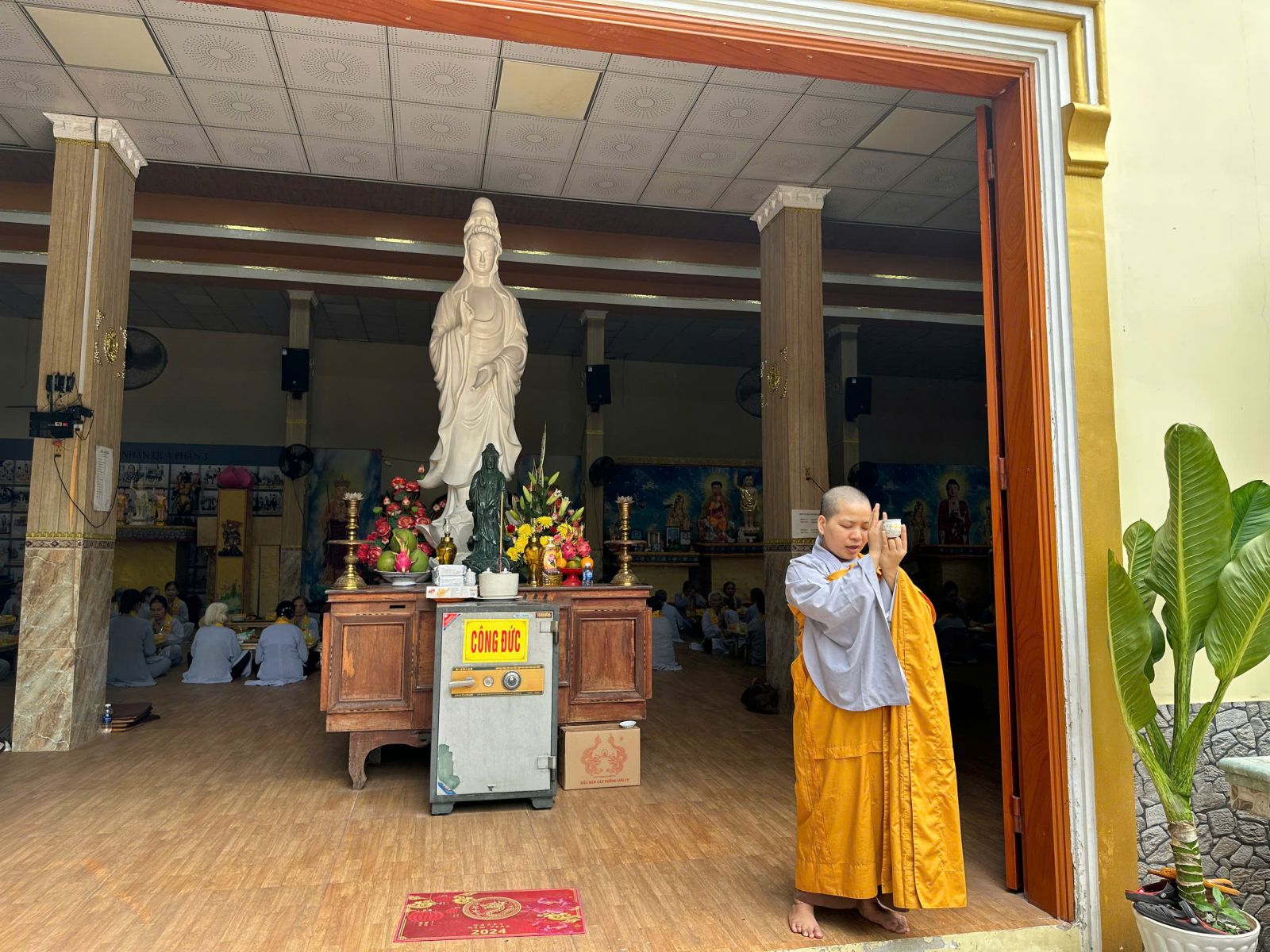 Đạo hữu thành tâm tác pháp cung thỉnh chư Tôn đức Tăng, Ni quang lâm tam bảo niêm hương bạch Phật.
