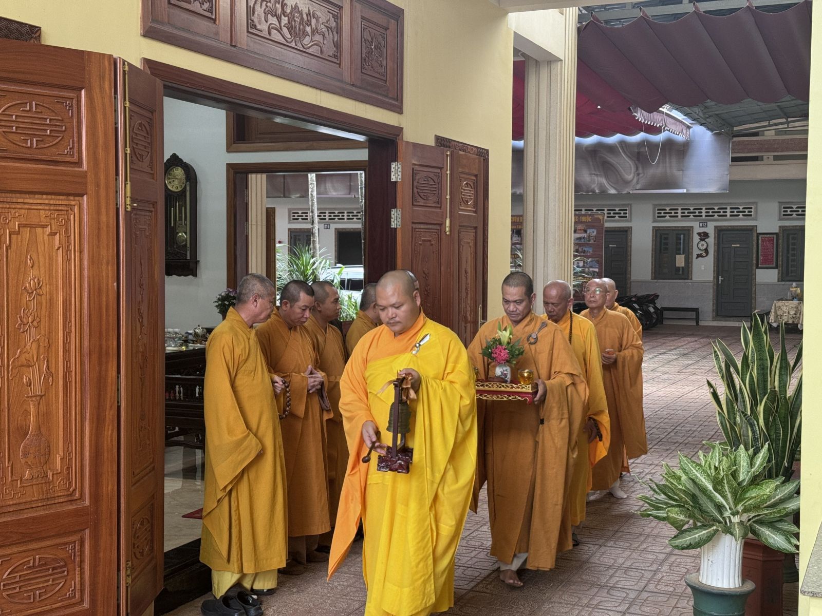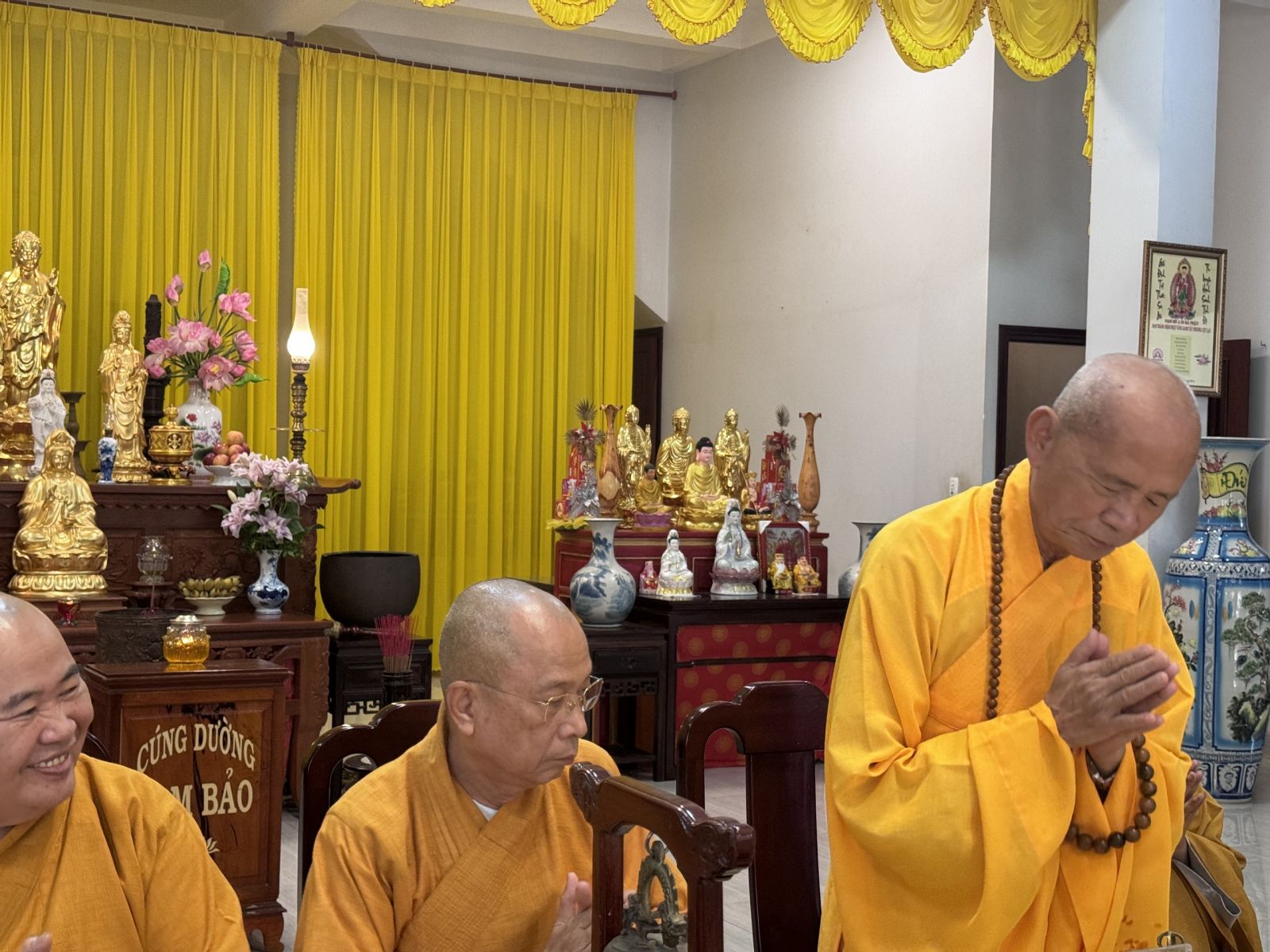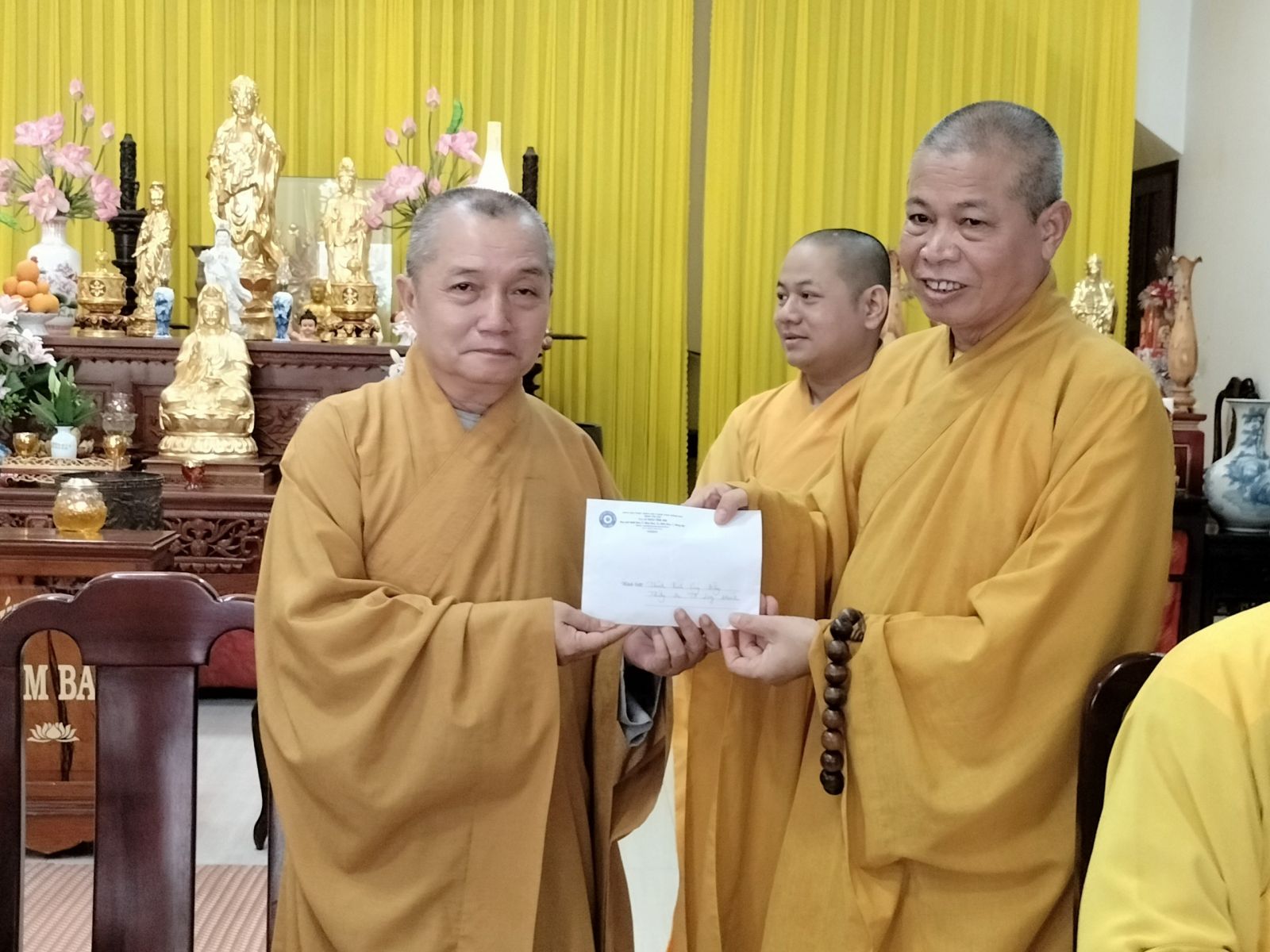 Đi cùng đoàn có HT. Thích Tâm Minh - Phó Ban Trị sự GHPGVN tỉnh; TT. Thích Minh Trì - Phó Ban Trị sự GHPGVN tỉnh; ĐĐ. Thích Thiện Trí - Phó Thư ký, Chánh Văn phòng Ban Trị sự GHPGVN tỉnh; ĐĐ. Thích Huệ Thới - Phó Văn phòng Ban Trị sự GHPGVN tỉnh; cùng chư Tôn đức đi cùng đoàn.