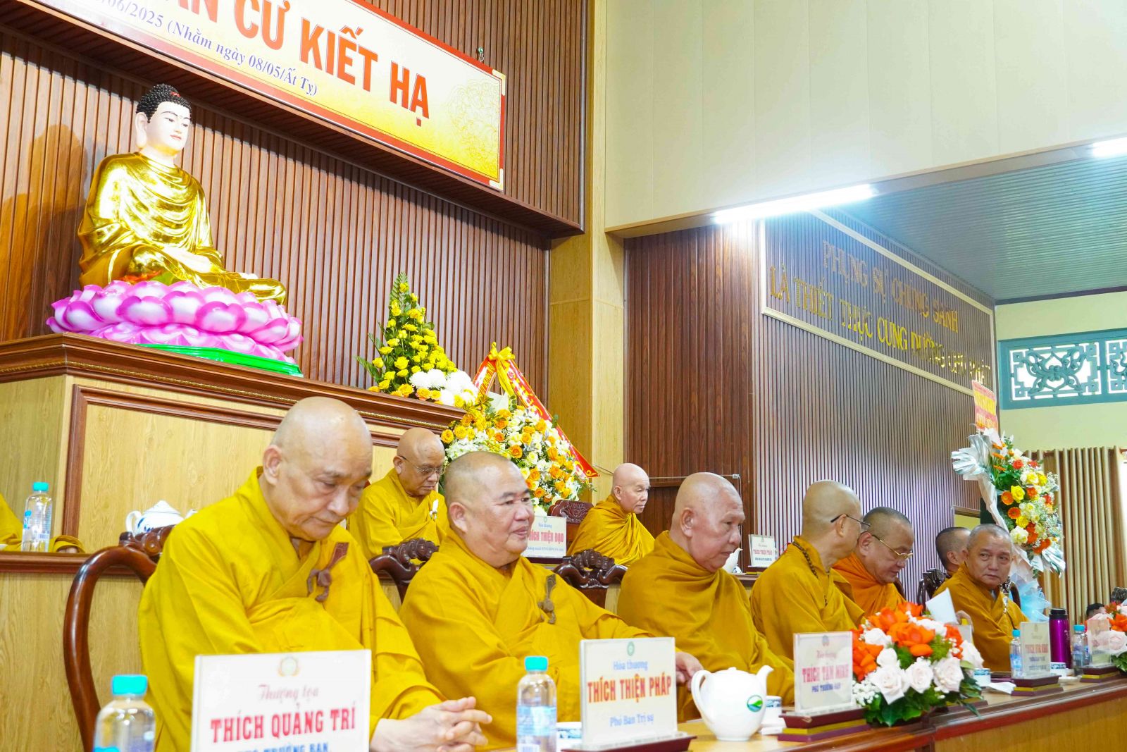 Tại buổi lễ, TT. Thích Quảng Trí đã trang nghiêm Cung an Chức sự hạ trường cung thỉnh Trưởng lão HT. Thích Nhật Quang – Thiền chủ Tăng kiêm Giám luật; Trưởng lão HT. Thích Thiện Đạo, HT. Thích Minh Ngạn, TT. Thích Huệ Khai, TT. Thích Huệ Sanh – Phó Thiền chủ Tăng; Trưởng hạ Nam Tông: HT. Thích Bửu Chánh; Trường hạ Ni: NT. Thích nữ Huệ Hương; cùng chư Tôn đức Hóa chủ, Giáo thọ, ban Giảng huấn trong ban Chức sự Hạ trường.