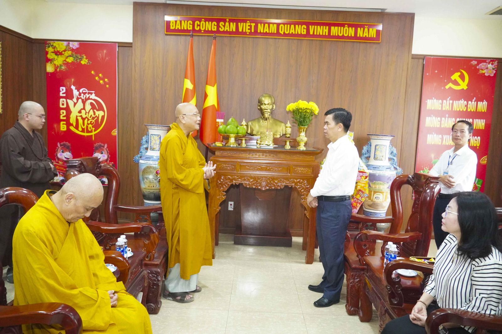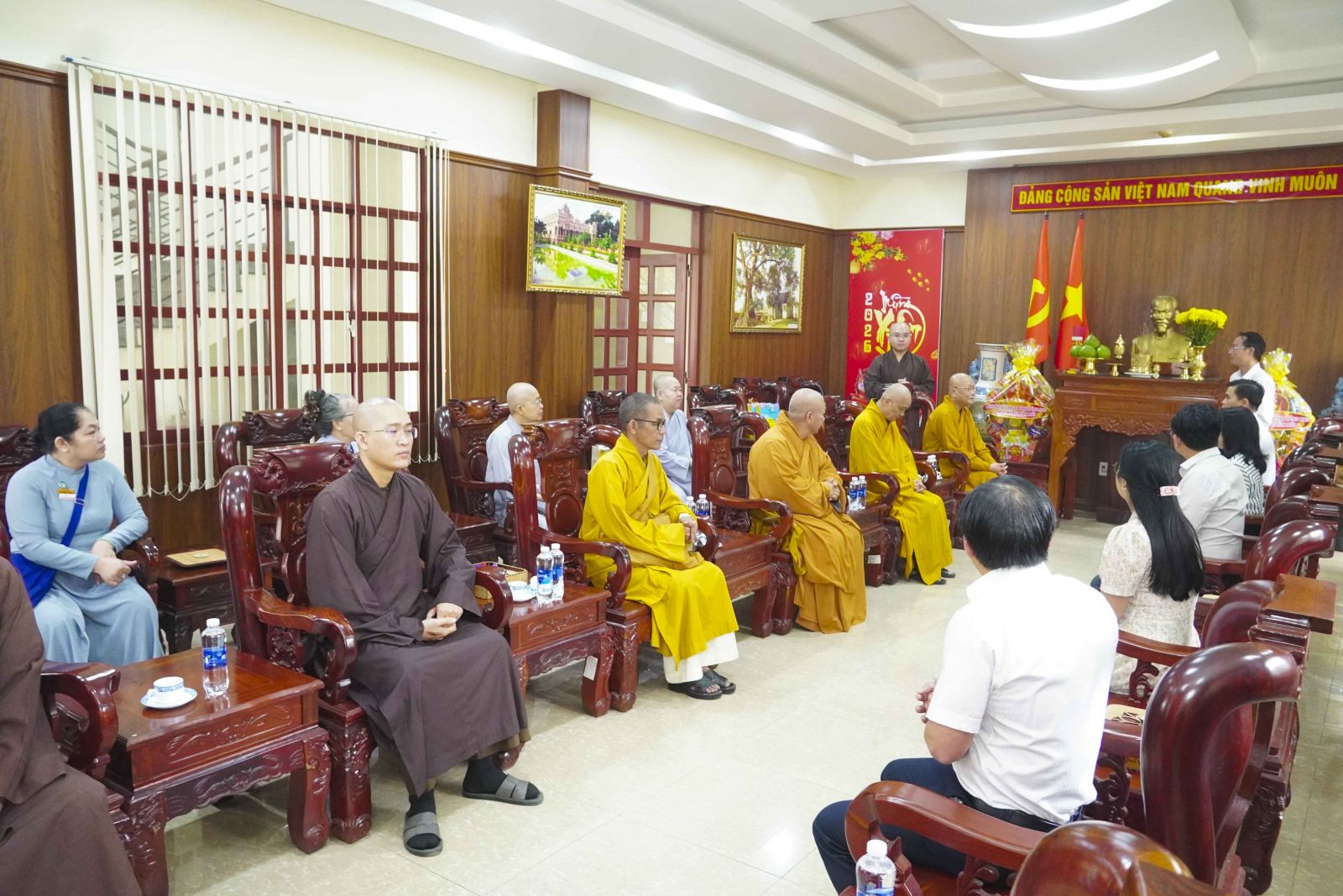 Ban Trị sự Phật giáo tỉnh có TT. Thích Huệ Khai – Ủy viên Thường trực HĐTS, Trưởng Ban Trị sự GHPGVN tỉnh; HT. Thích Bửu Chánh – Ủy viên Thư ký HĐTS, Phó Trưởng ban Thường trực Ban Trị sự GHPGVN tỉnh; HT. Thích Minh Ngạn – Phó Ban Trị sự, Trưởng ban Kiểm soát GHPGVN tỉnh; TT. Pháp Quyền – Ủy viên HĐTS, Phó ban kiêm Chánh Thư ký Ban Trị sự GHPGVN tỉnh; TT. Thích Huệ Sanh – Ủy viên HĐTS, Phó Ban Trị sự, Trưởng ban Hoằng pháp GHPGVN tỉnh; cùng chư Tôn đức Phó Ban Trị sự, Thường trực Ban Trị sự, Văn phòng Ban Trị sự và đại diện các ban ngành trực thuộc.