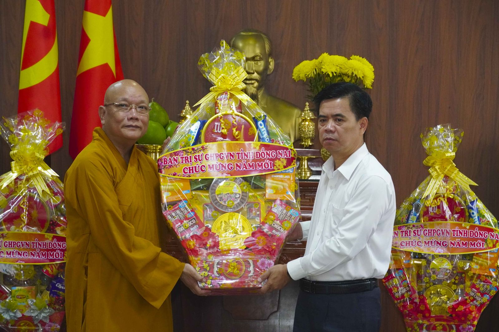 Dịp này, Ban Trị sự Phật giáo tỉnh cũng tổ chức đến Khánh tuế chư Tôn Giáo phẩm Chứng minh Ban Trị sự Phật giáo tỉnh, nhân dịp tết đến xuân về, bày tỏ lòng tri ân sâu sắc đến các ngài. Và cầu nguyện hồng ân Tam Bảo gia hộ cho các ngài Pháp thể khương an, Cửu trụ ta bà để cho Tăng Ni Phật giáo tỉnh Đồng Nai được nương vào tu tập.