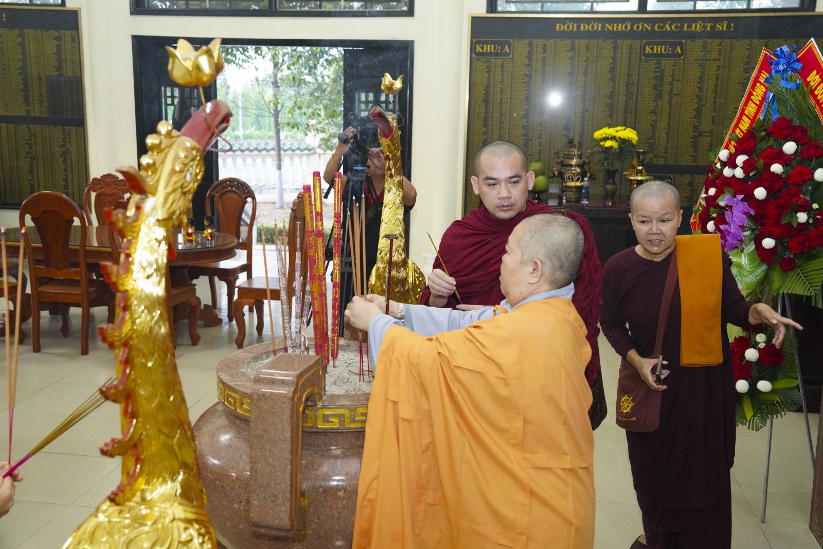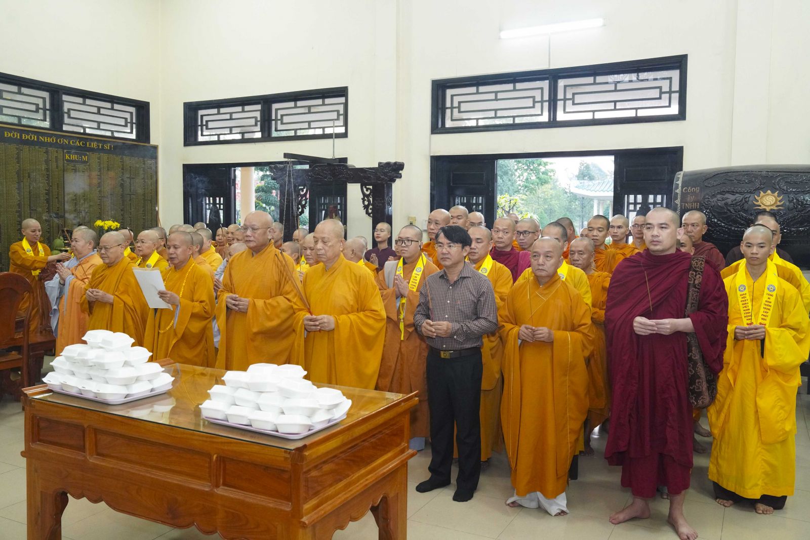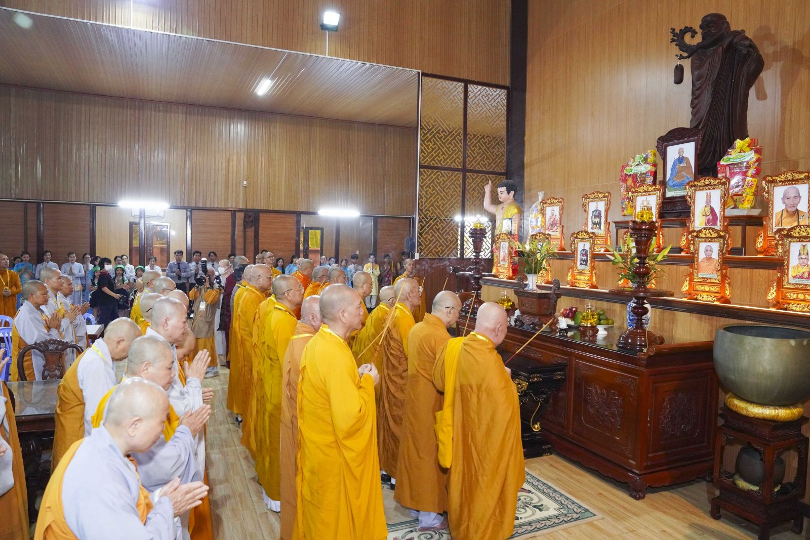 Tiếp đó, Ban Trị sự GHPGVN tỉnh Đồng Nai cũng đã trang nghiêm tổ chức lễ dâng hương tưởng niệm chư vị Tổ sư, chư bậc tiền bối hữu công, chư vị tiền nhiệm Ban Trị sự đã viên tịch tại Tổ đường Chùa Tỉnh Hội. Trong không gian linh thiêng, chư Tôn đức đã thành kính niêm hương bạch Phật, tưởng niệm công hạnh và đạo nghiệp của chư vị tiền nhân – những bậc đã dày công khai sơn tạo tự, hoằng dương Phật pháp, đặt nền móng vững chắc cho sự phát triển của Phật giáo tỉnh nhà qua các thời kỳ.