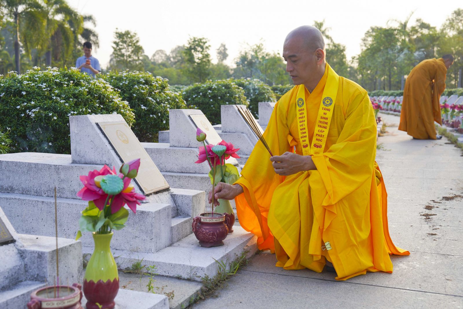 Đại diện các cấp chính quyền địa phương có ông Nguyễn Văn Khang – Phó Giám đốc Sở Dân Tộc và Tôn giáo tỉnh Đồng Nai cùng Đoàn đã thành kính dâng hoa, dâng hương tại Đài tưởng niệm Nghĩa trang Liệt sĩ tỉnh, dành phút mặc niệm tưởng nhớ công đức to lớn của các anh hùng liệt sĩ – những người đã hy sinh xương máu vì sự nghiệp đấu tranh giải phóng dân tộc, thống nhất đất nước.