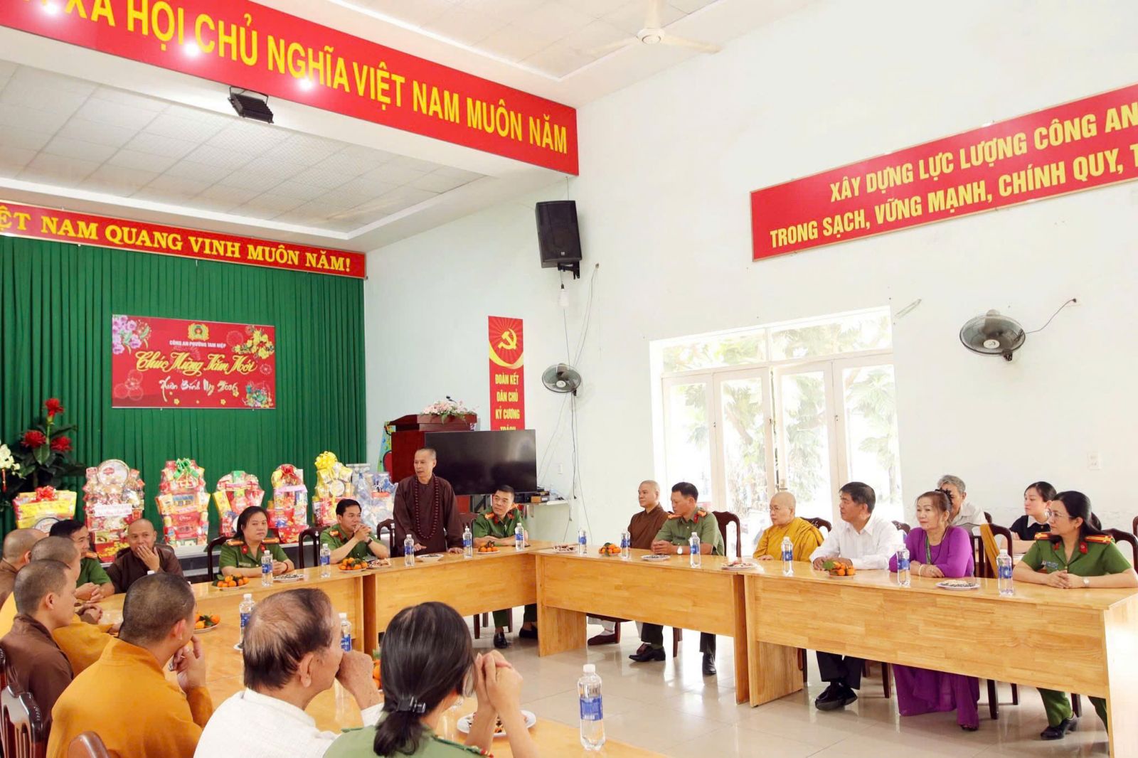 Tại các điểm đến, chư Tôn đức đã gửi lời thăm hỏi ân cần, chúc mừng năm mới và cầu chúc quý lãnh đạo cùng toàn thể cán bộ, chiến sĩ dồi dào sức khỏe, gia đình hạnh phúc, an khang thịnh vượng, tiếp tục hoàn thành tốt nhiệm vụ được giao. Đồng thời, chư Tôn đức bày tỏ sự trân trọng đối với sự quan tâm, tạo điều kiện thuận lợi của chính quyền địa phương đối với các hoạt động Phật sự trong thời gian qua, góp phần xây dựng khối đại đoàn kết toàn dân tộc ngày càng bền chặt.