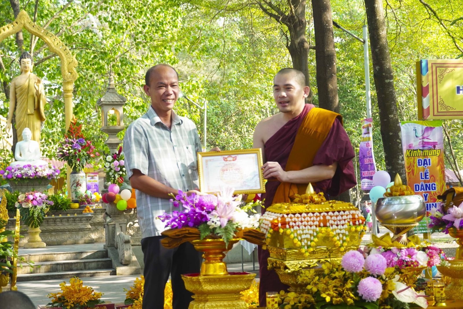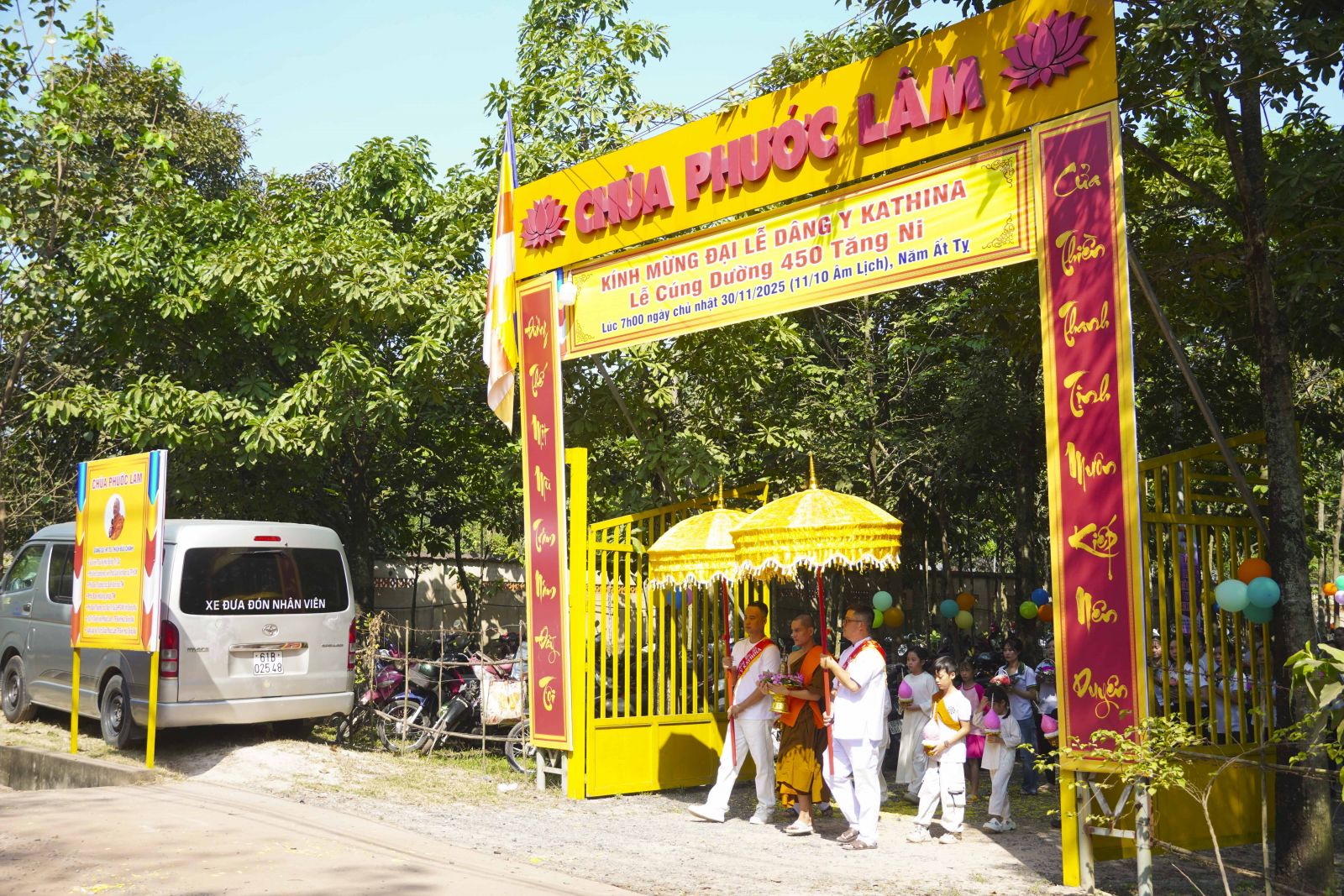 Đại lễ Dâng y Kathina do đại thí chủ chính thức Dương Thị Kiều Phương cùng các nhân viên công ty Thái Bình Shoes; cùng các đại thí chủ, các đạo tràng Phật tử, các gia đình mạnh thường quân đã phát tâm cúng dường Đại lễ Dâng y Kathina tại chùa Phước Lâm.