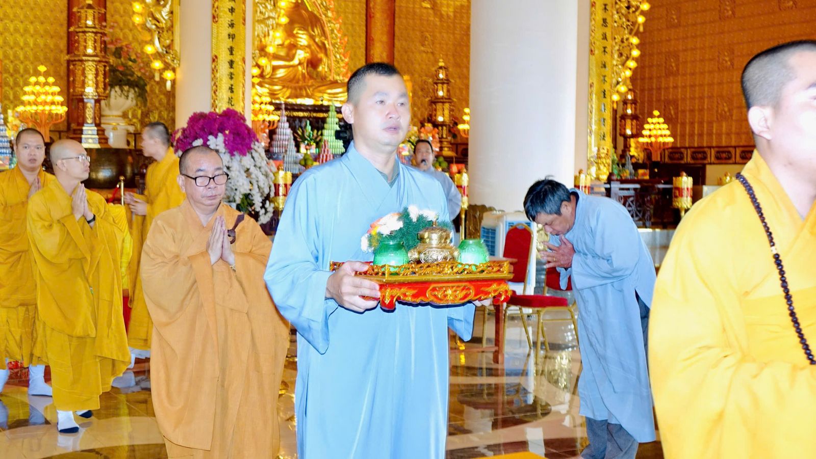 Tại buổi lễ, Thượng tọa Thích Nguyên Hiếu trụ trì cùng chư Tăng đã niêm hương bạch Phật, truyền và khai thị giới pháp giúp các Phật tử nắm vững và hành trì cho đúng để vun bồi cội phước đức.