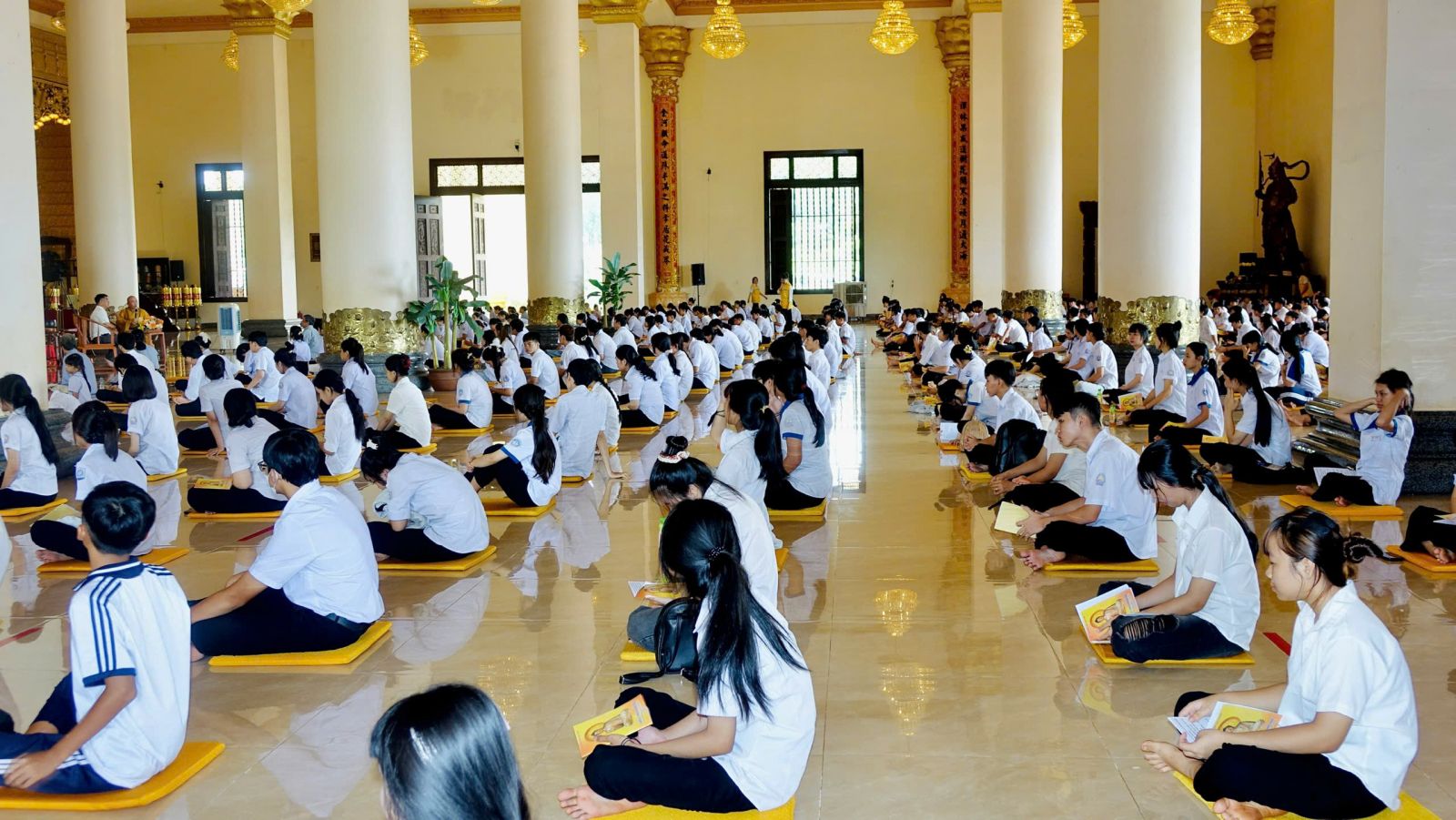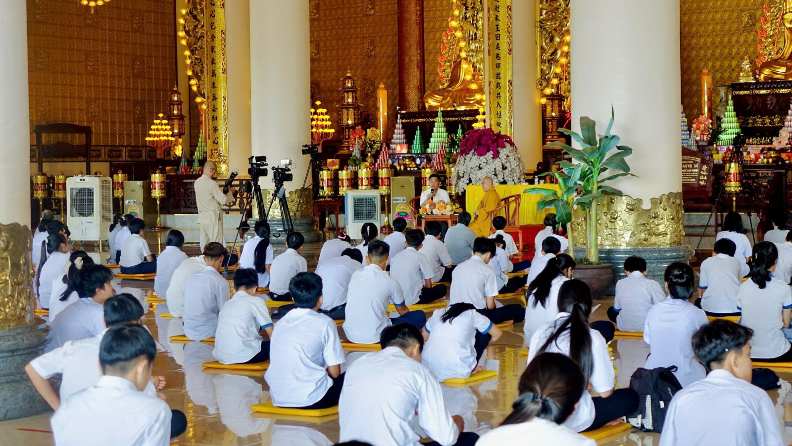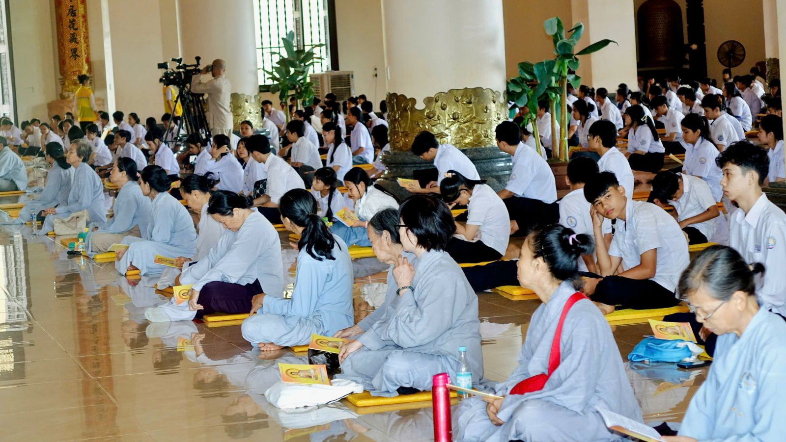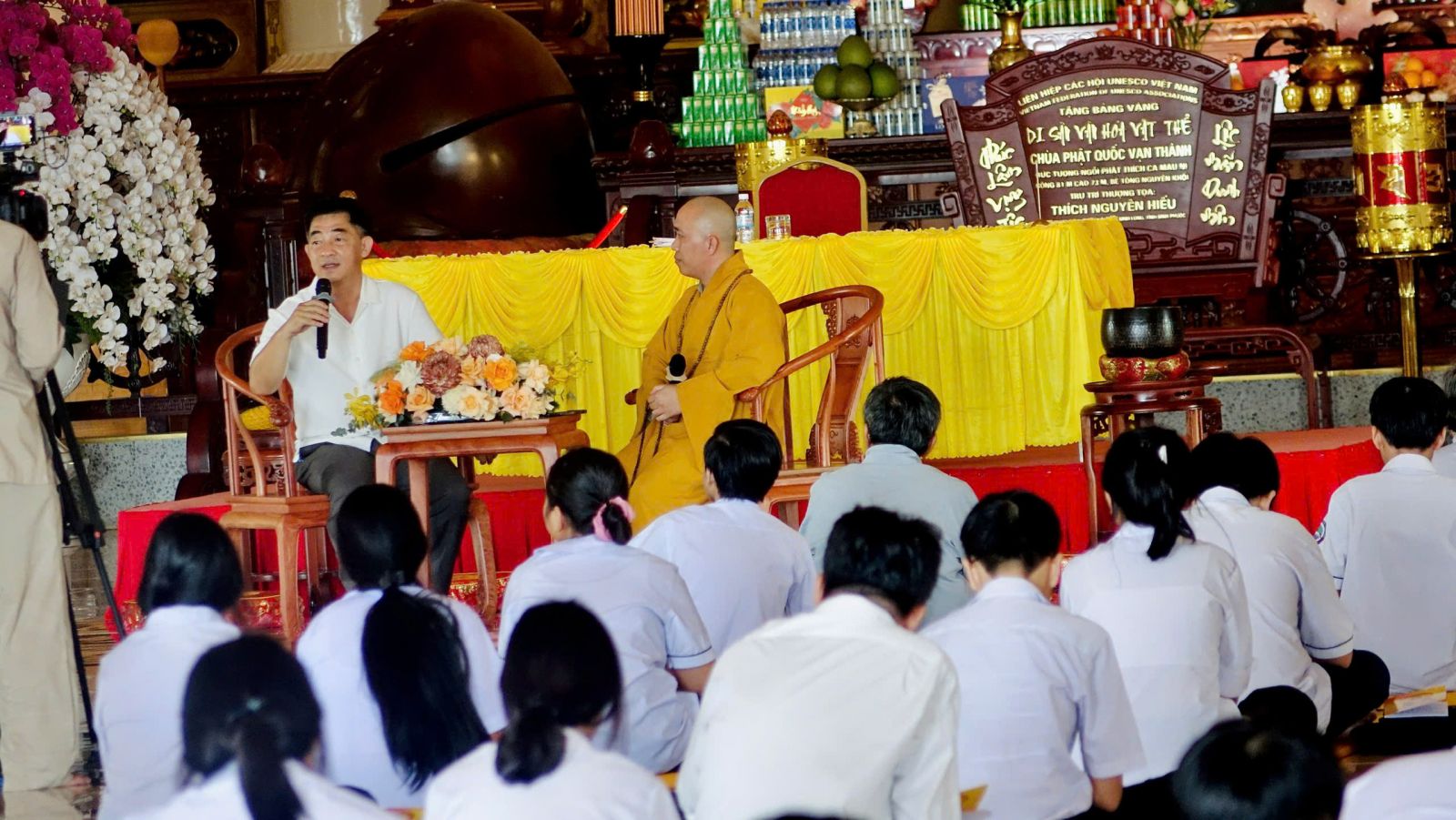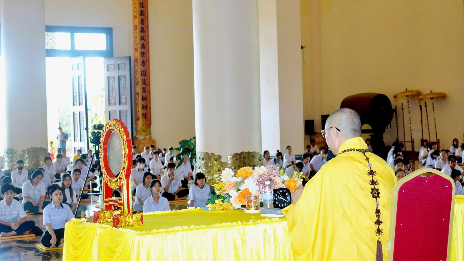 Sau khi thọ nhận giới pháp, đại chúng đồng tham dự nghe Pháp thoại Phật giáo và Đời sống do Thượng Toạ Thích Thiện Thuận, trụ trì chùa Viện Chuyên Tu tại huyện Tân Thành, tỉnh Bà Rịa – Vũng Tàu ( cũ ) nay là TPHCM và Viện trưởng Học viện Hướng nghiệp Huệ Quang trưởng ban hoằng pháp tỉnh VT-BR ( cũ ) chia sẻ pháp thoại cho 500 các em thanh thiếu niên và Phật tử.