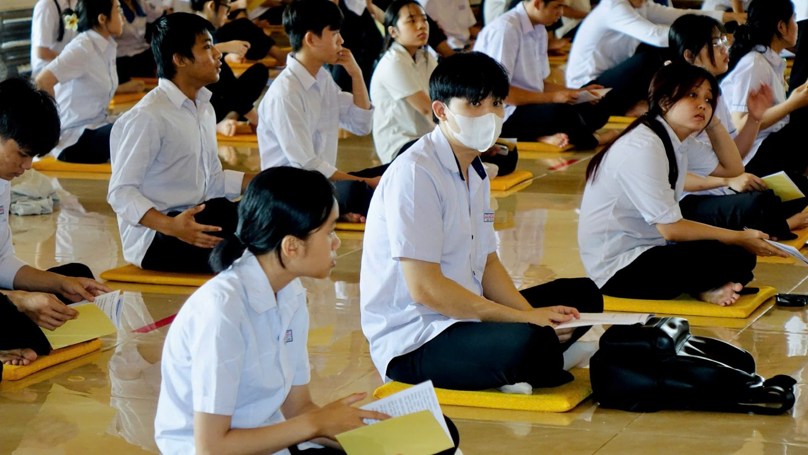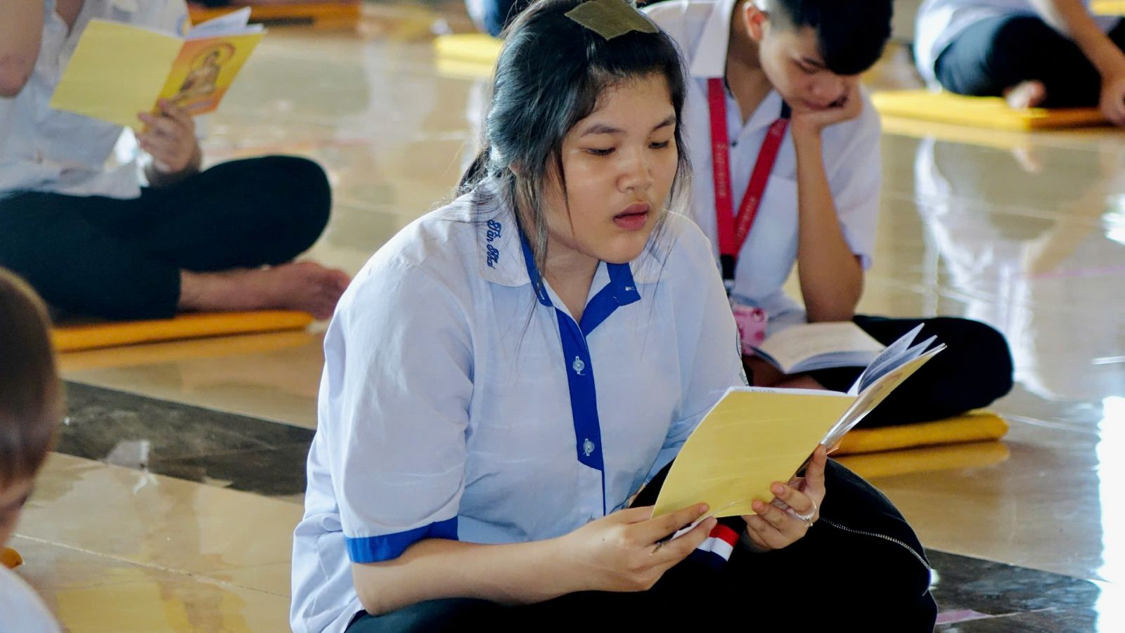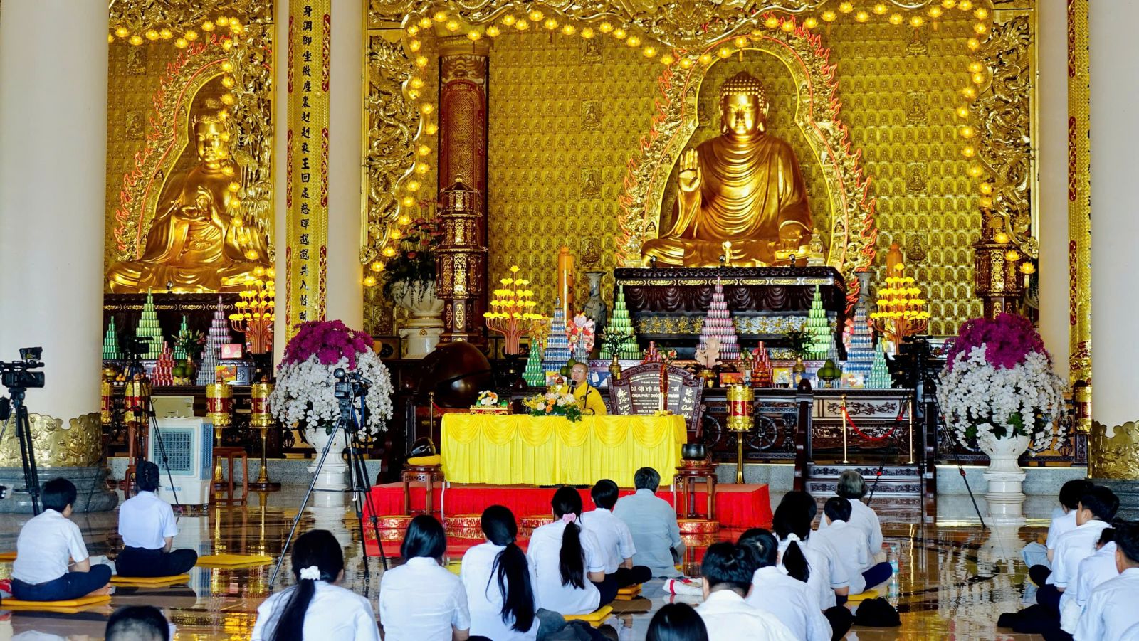 Buổi kết thúc trao đổi vấn đáp chia sẻ đại chúng trang nghiêm tụng kinh cúng ngọ trưa.