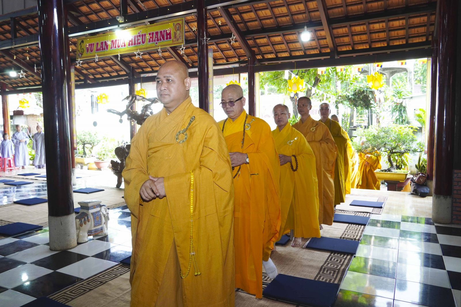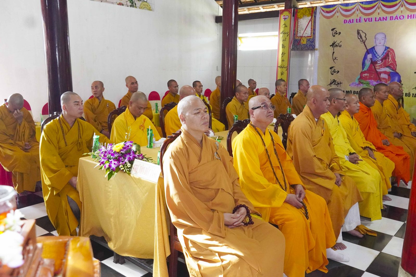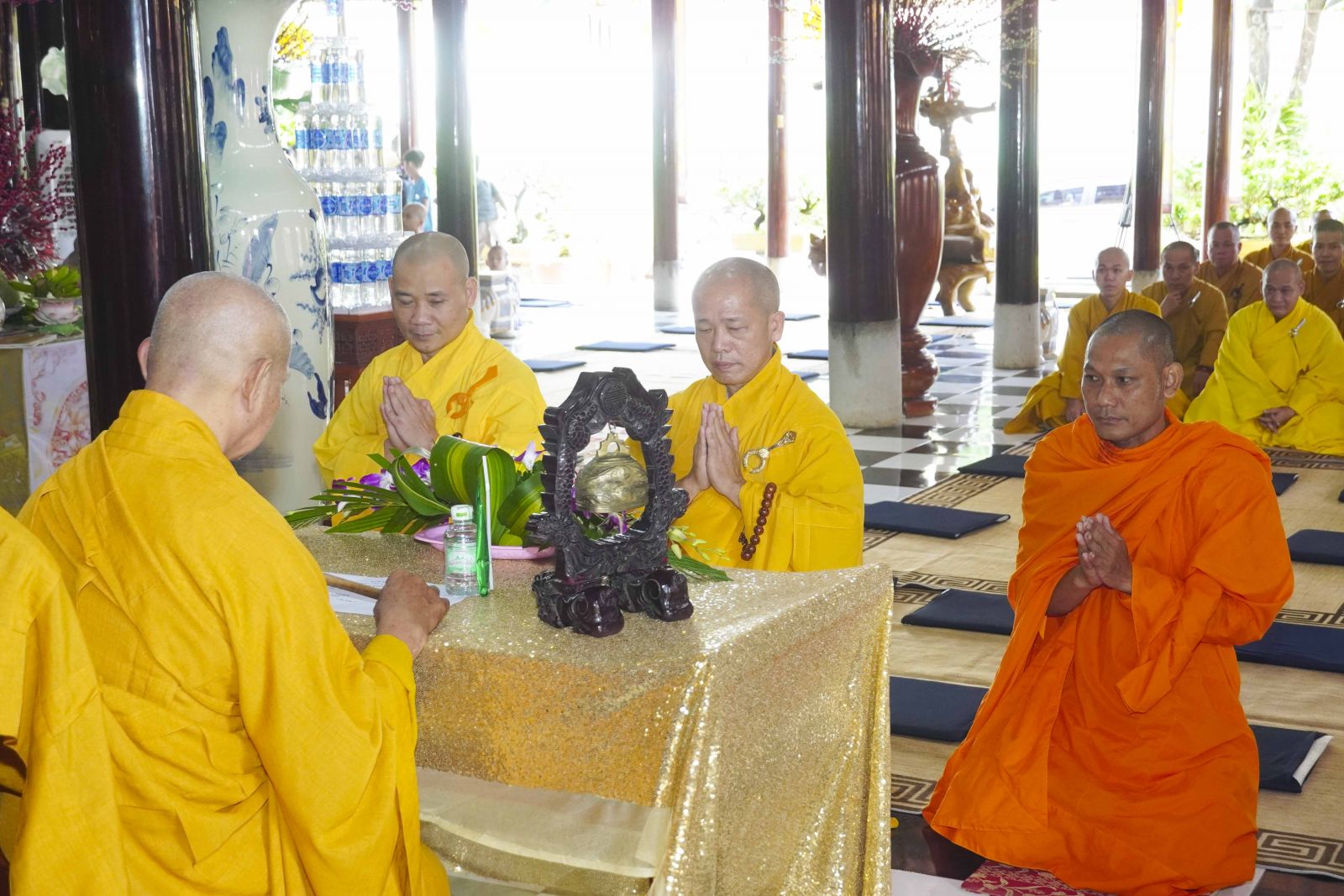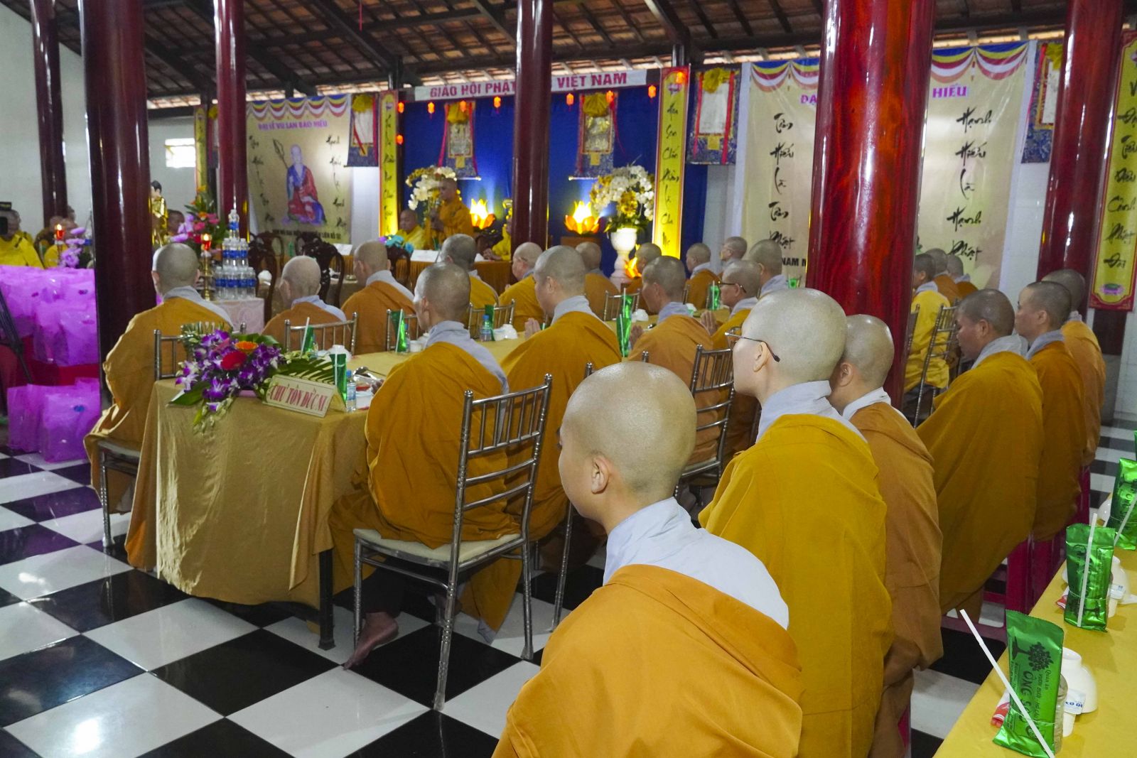 Buổi lễ trang nghiêm cung thỉnh chư Tôn đức quang lâm tổ đường. Tiếp đó, HT. Thích Huệ Quang có đôi lời chúc mừng đến Tăng Ni hành giả An cư, sau ba tháng tu học, Tăng Ni lại tăng trưởng thêm Hạ lạp, tăng trưởng thêm đạo lực.