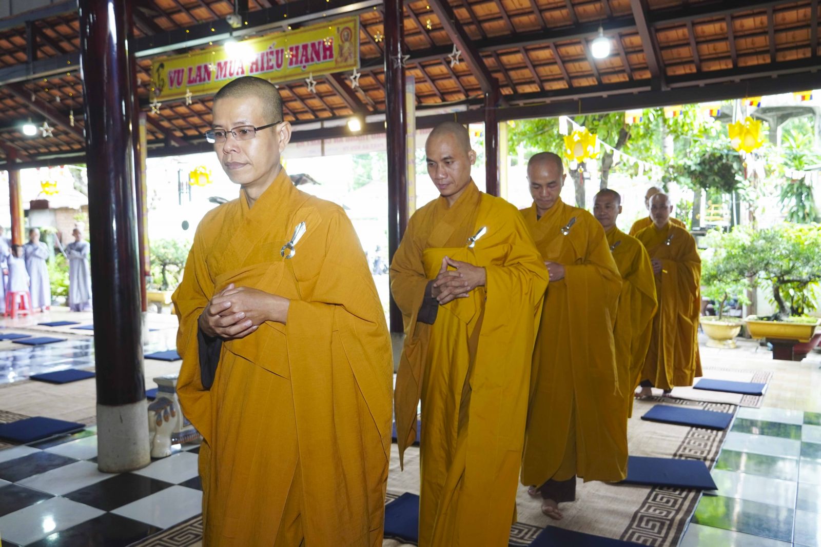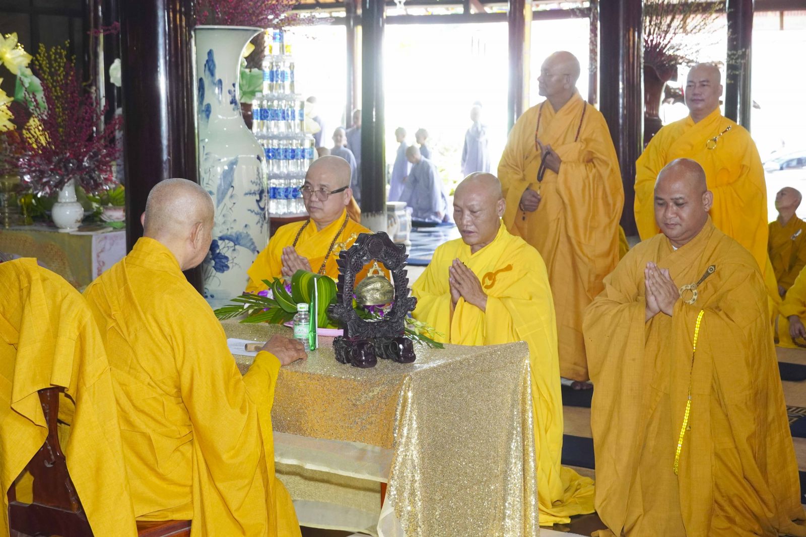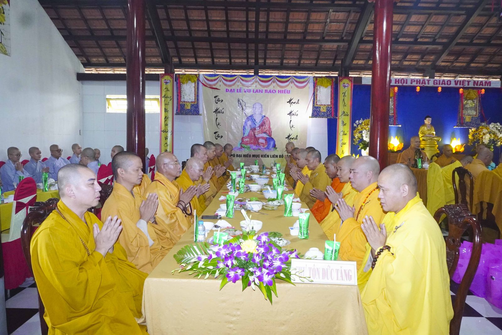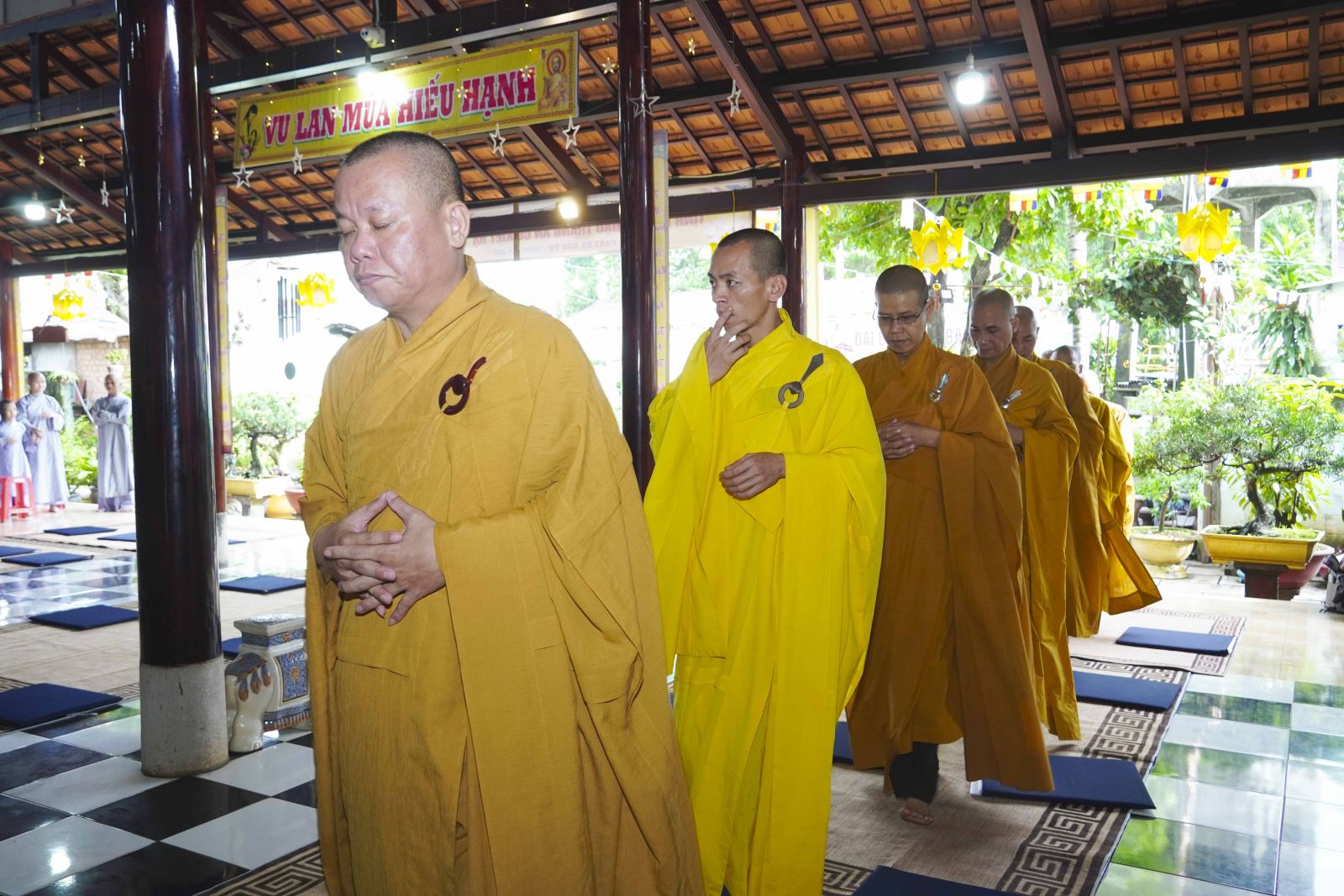 Buổi lễ trang nghiêm cung thỉnh chư Tôn đức quang lâm tổ đường. Tiếp đó, HT. Thích Huệ Quang có đôi lời chúc mừng đến Tăng Ni hành giả An cư, sau ba tháng tu học, Tăng Ni lại tăng trưởng thêm Hạ lạp, tăng trưởng thêm đạo lực.