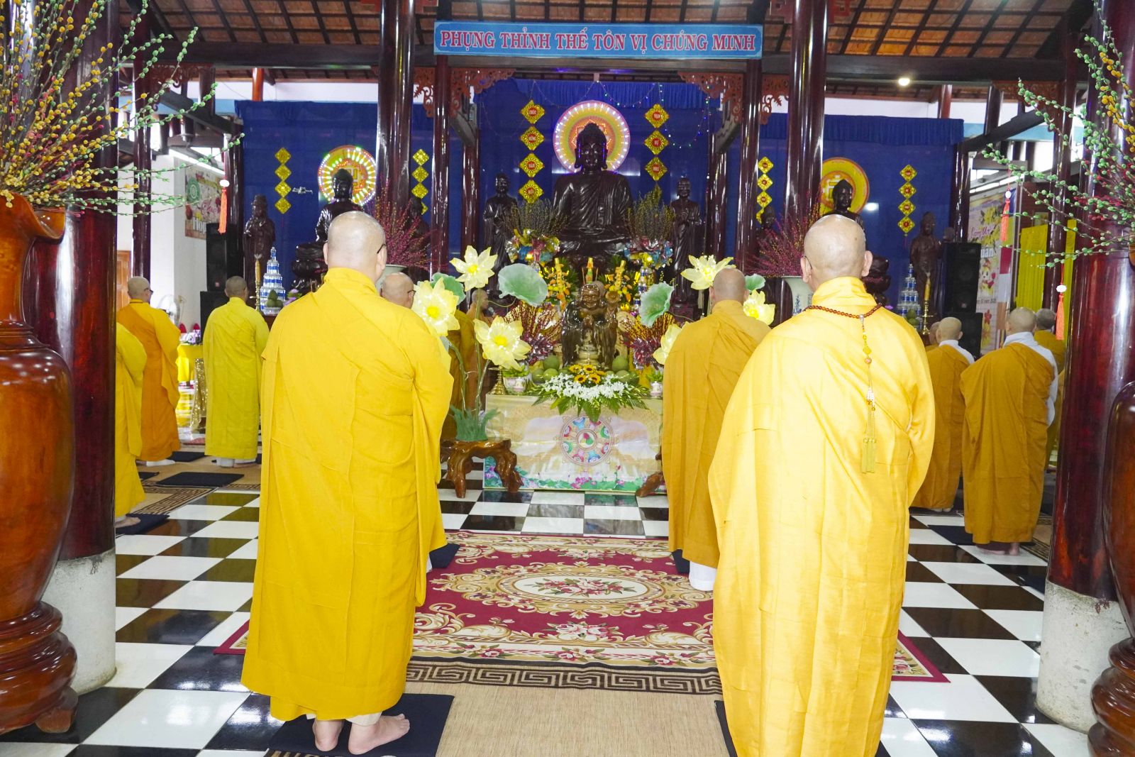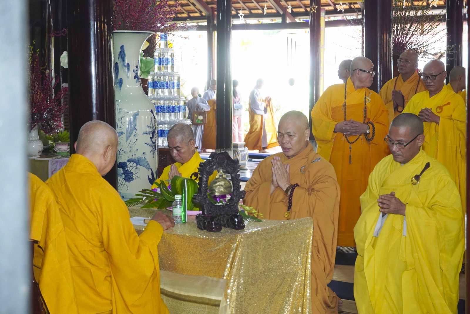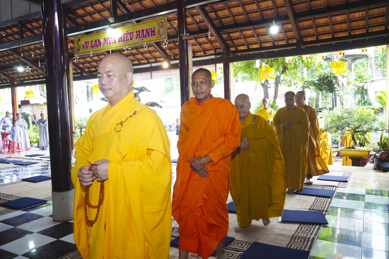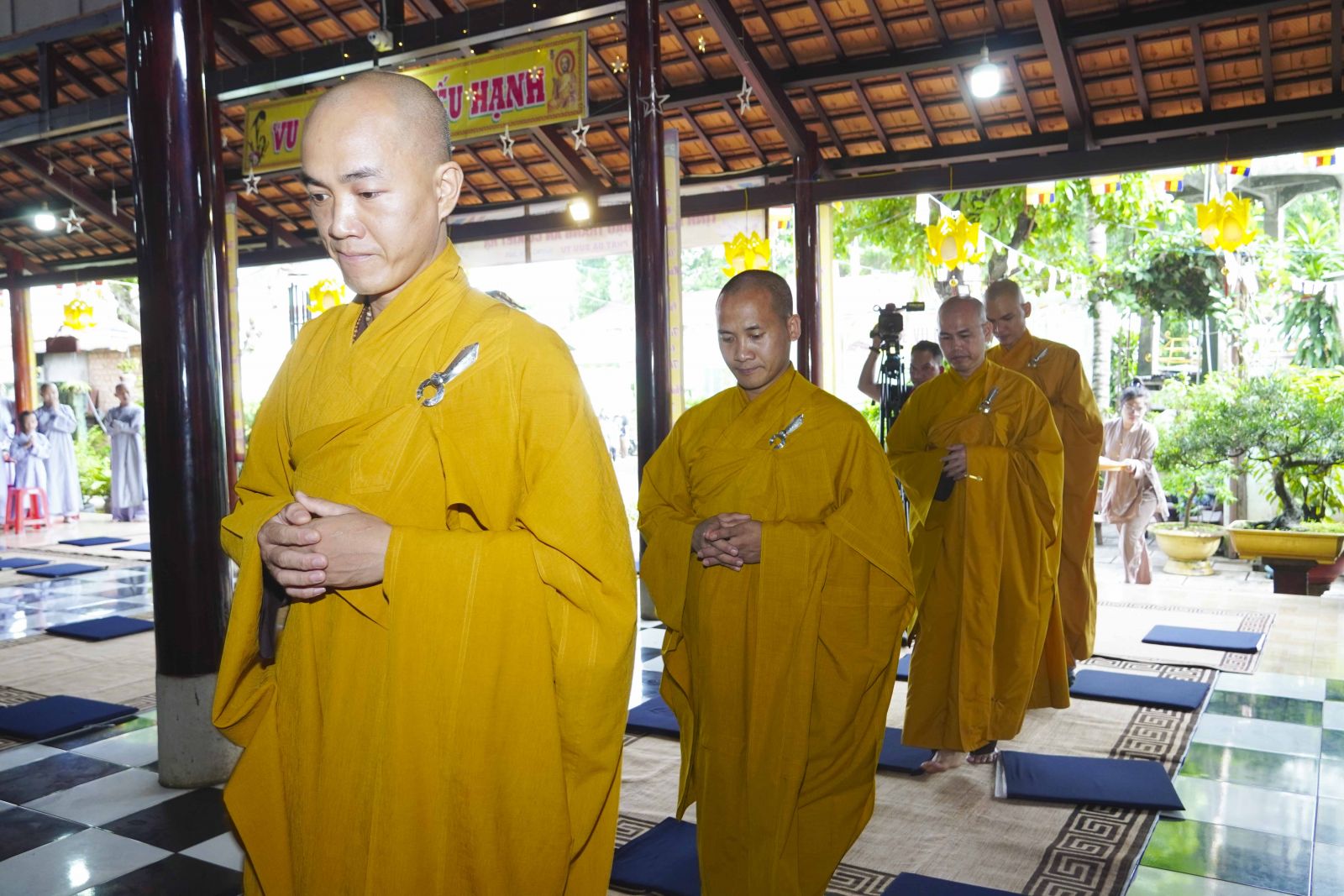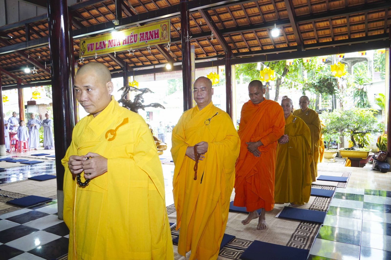 Buổi lễ trang nghiêm cung thỉnh chư Tôn đức quang lâm tổ đường. Tiếp đó, HT. Thích Huệ Quang có đôi lời chúc mừng đến Tăng Ni hành giả An cư, sau ba tháng tu học, Tăng Ni lại tăng trưởng thêm Hạ lạp, tăng trưởng thêm đạo lực.